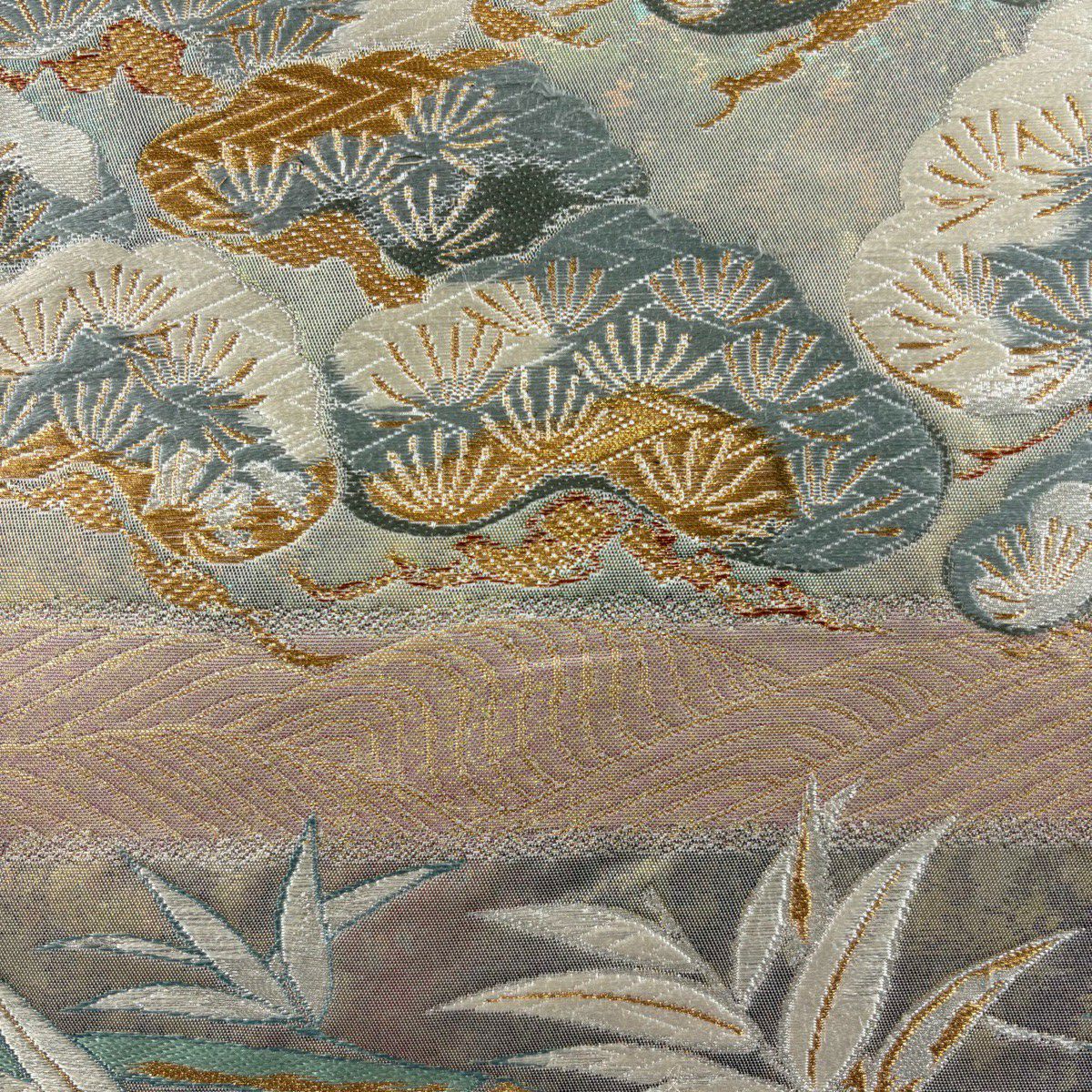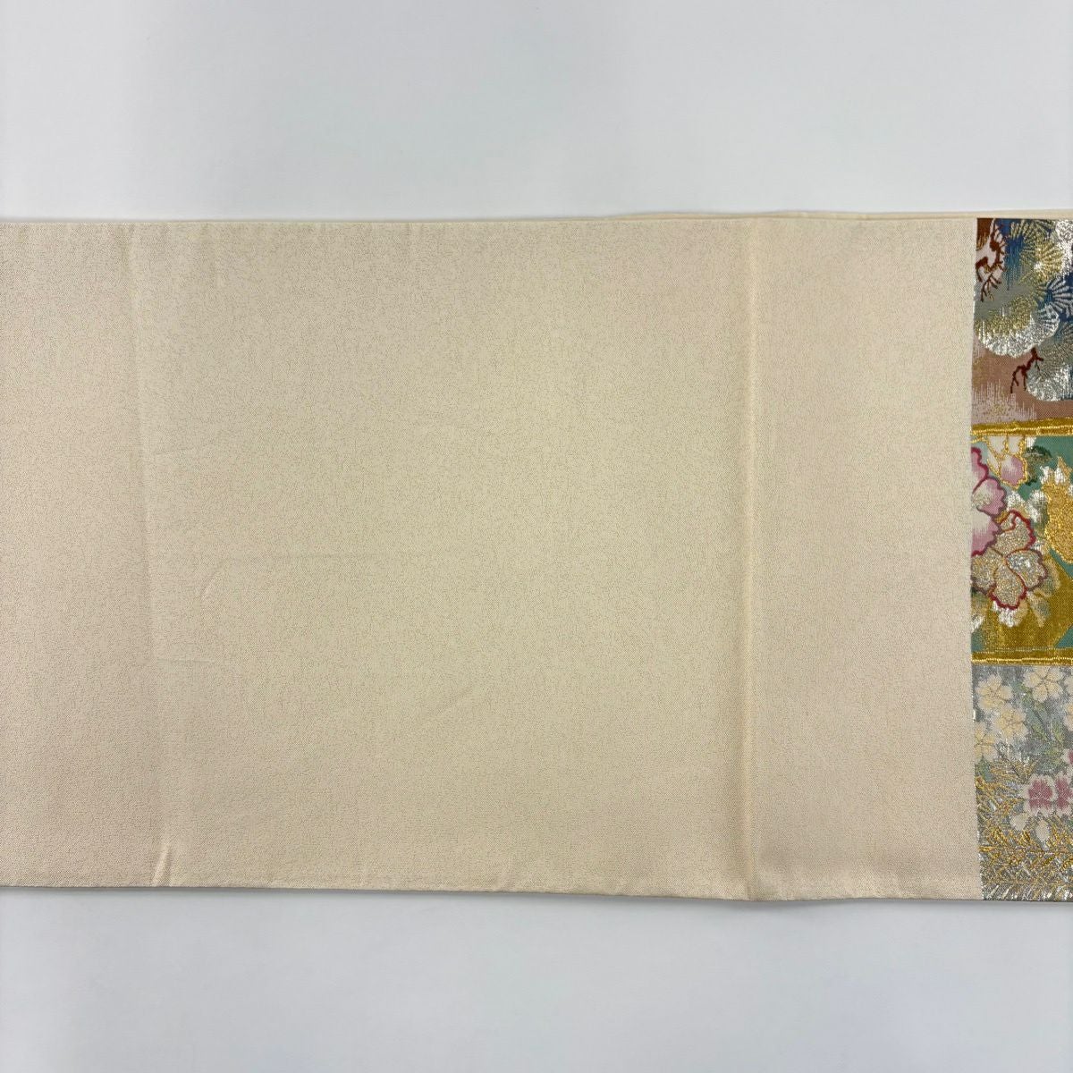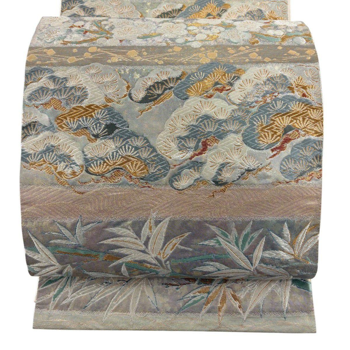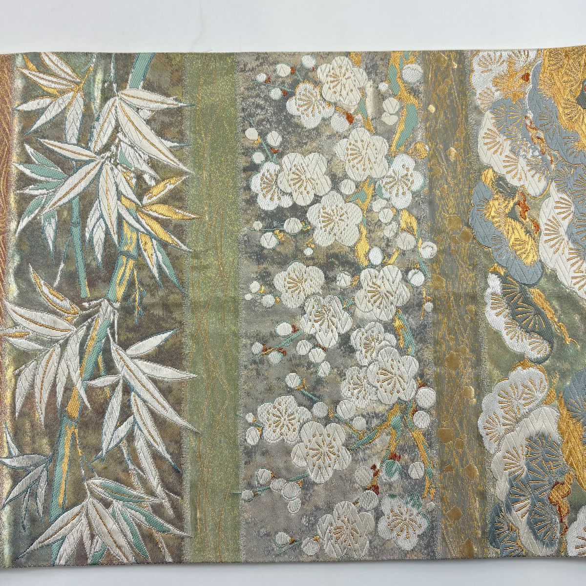 袋帯 秀品 松竹梅 波 箔 金銀糸 ベージュ 六通 正絹