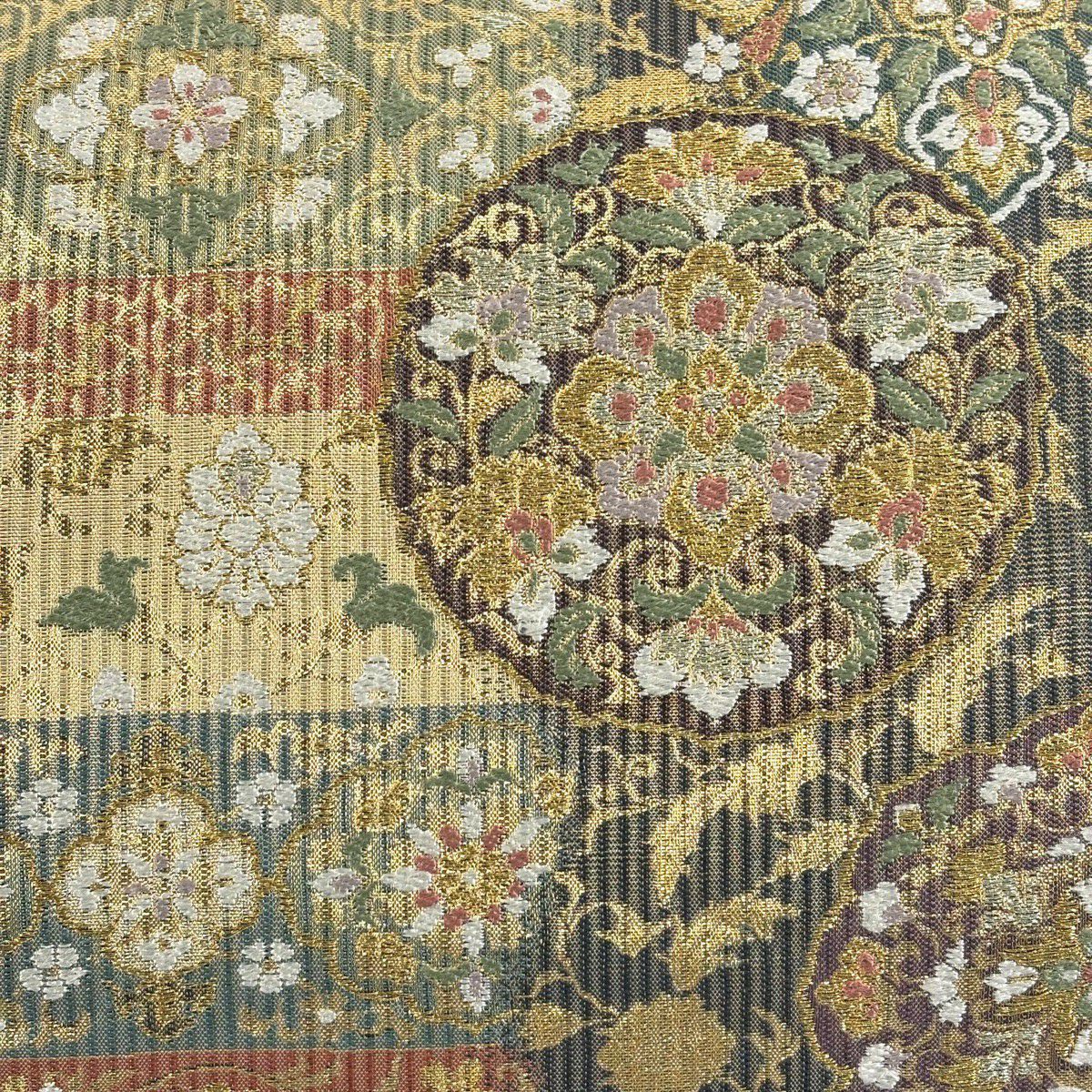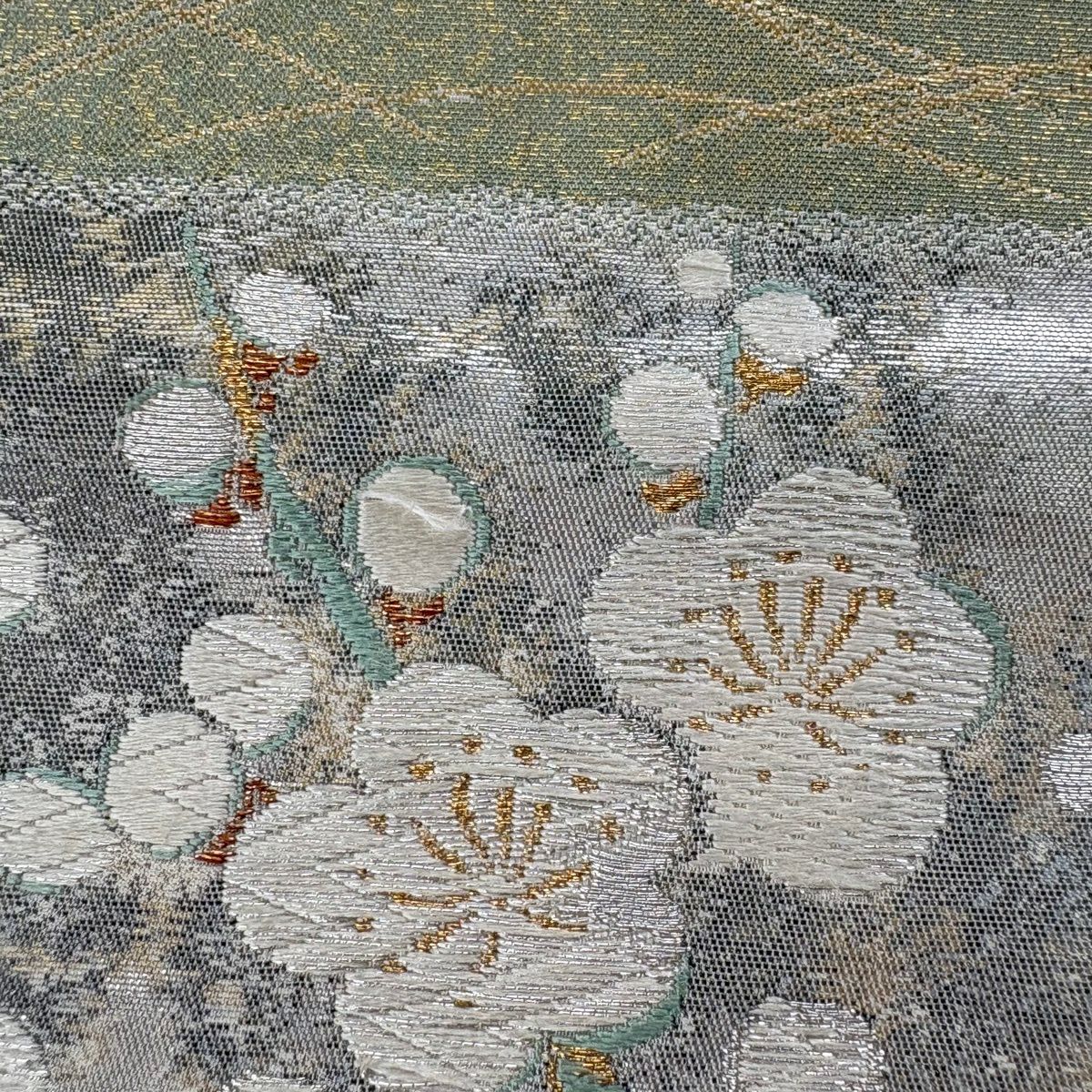 【美品】 袋帯 秀品 花鳥 華文 箔 唐織 薄緑 六通 正絹