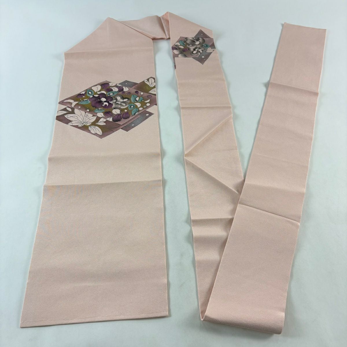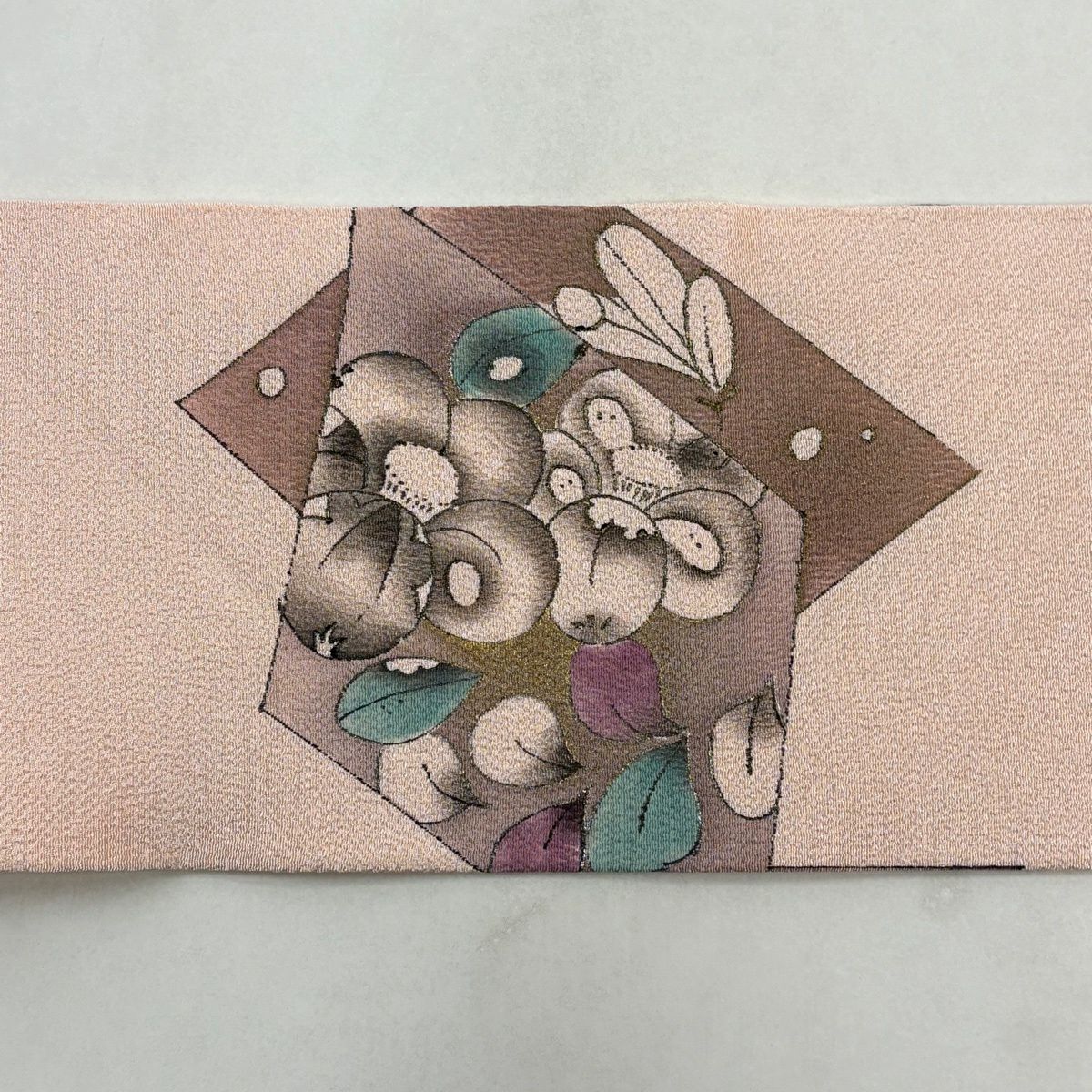 【美品】 名古屋帯 秀品 草花 金銀彩 縮緬 ピンク 正絹