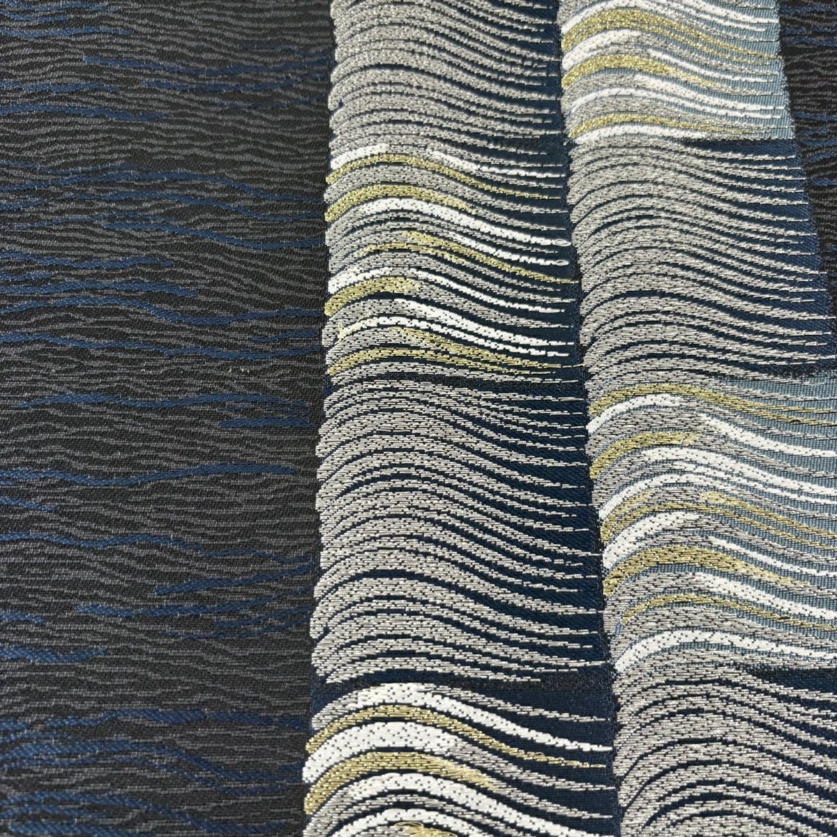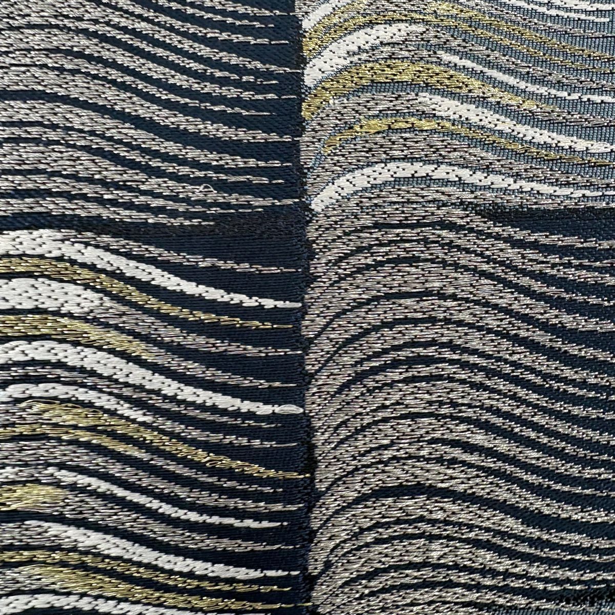 【美品】 袋帯 秀品 波 幾何学模様 金銀糸 青 六通 正絹