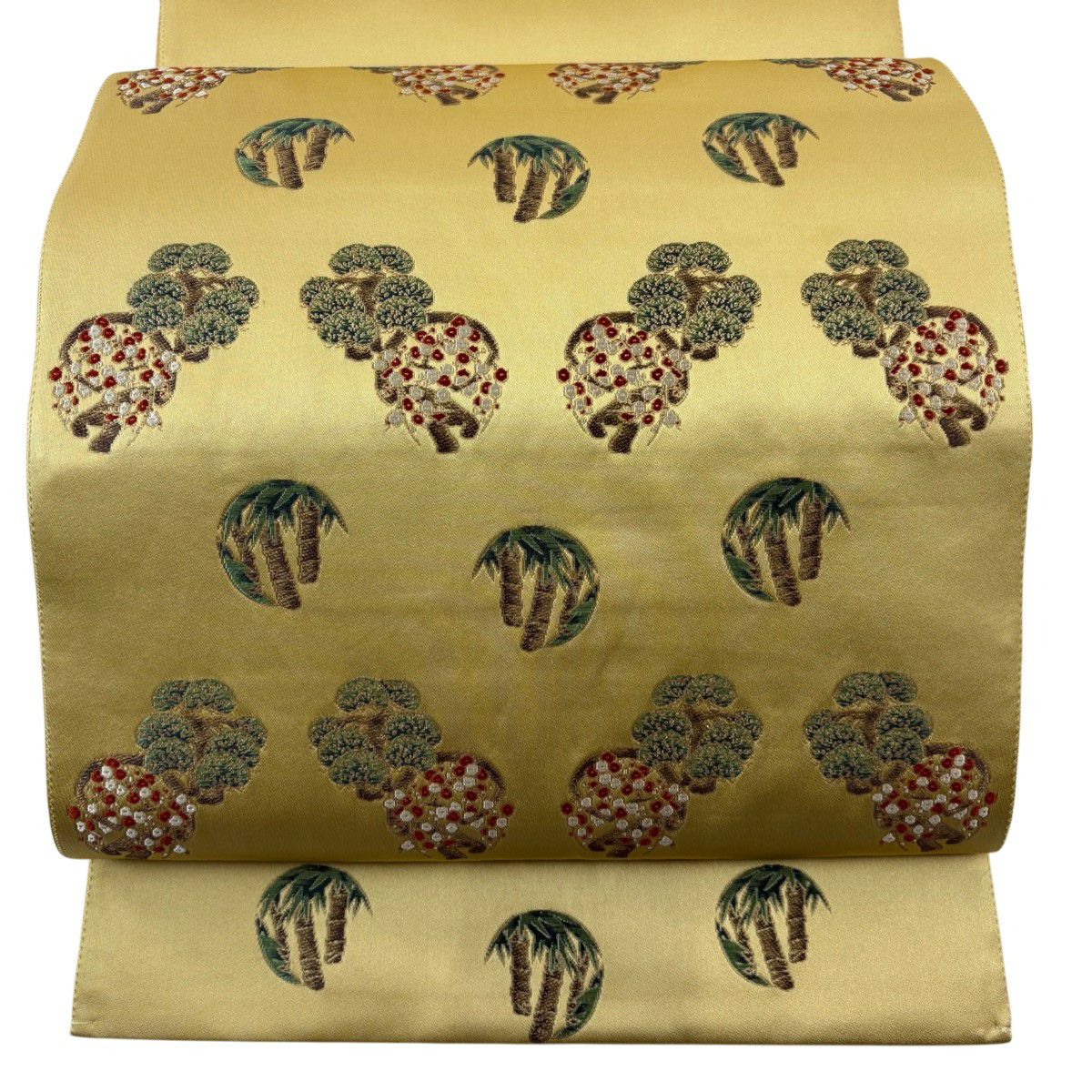 【美品】 袋帯 秀品 松竹梅 金糸 からし色 お太鼓柄 正絹