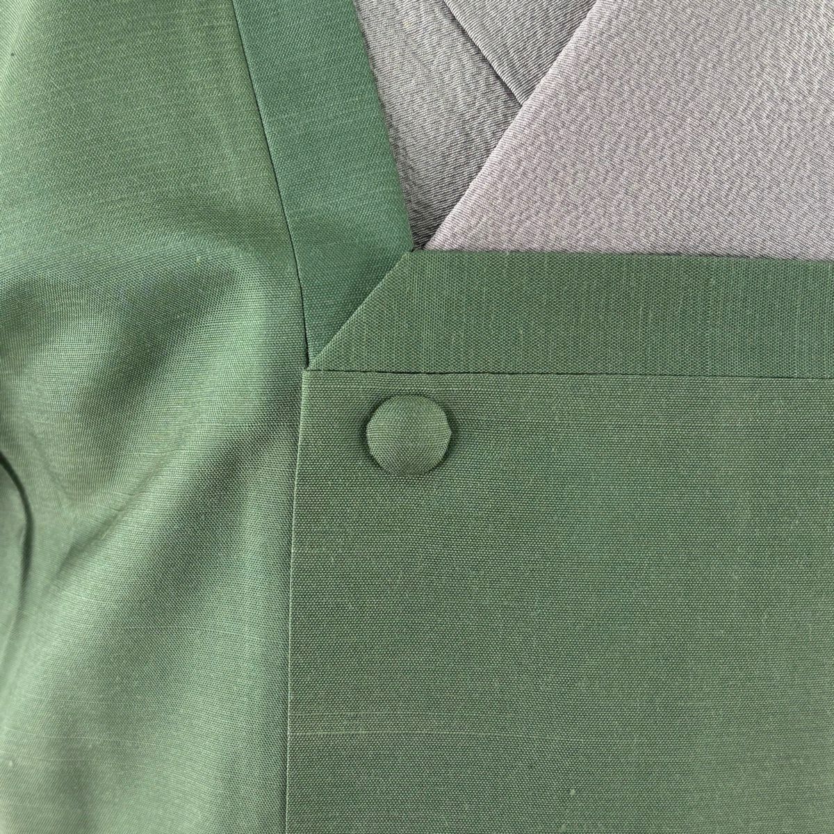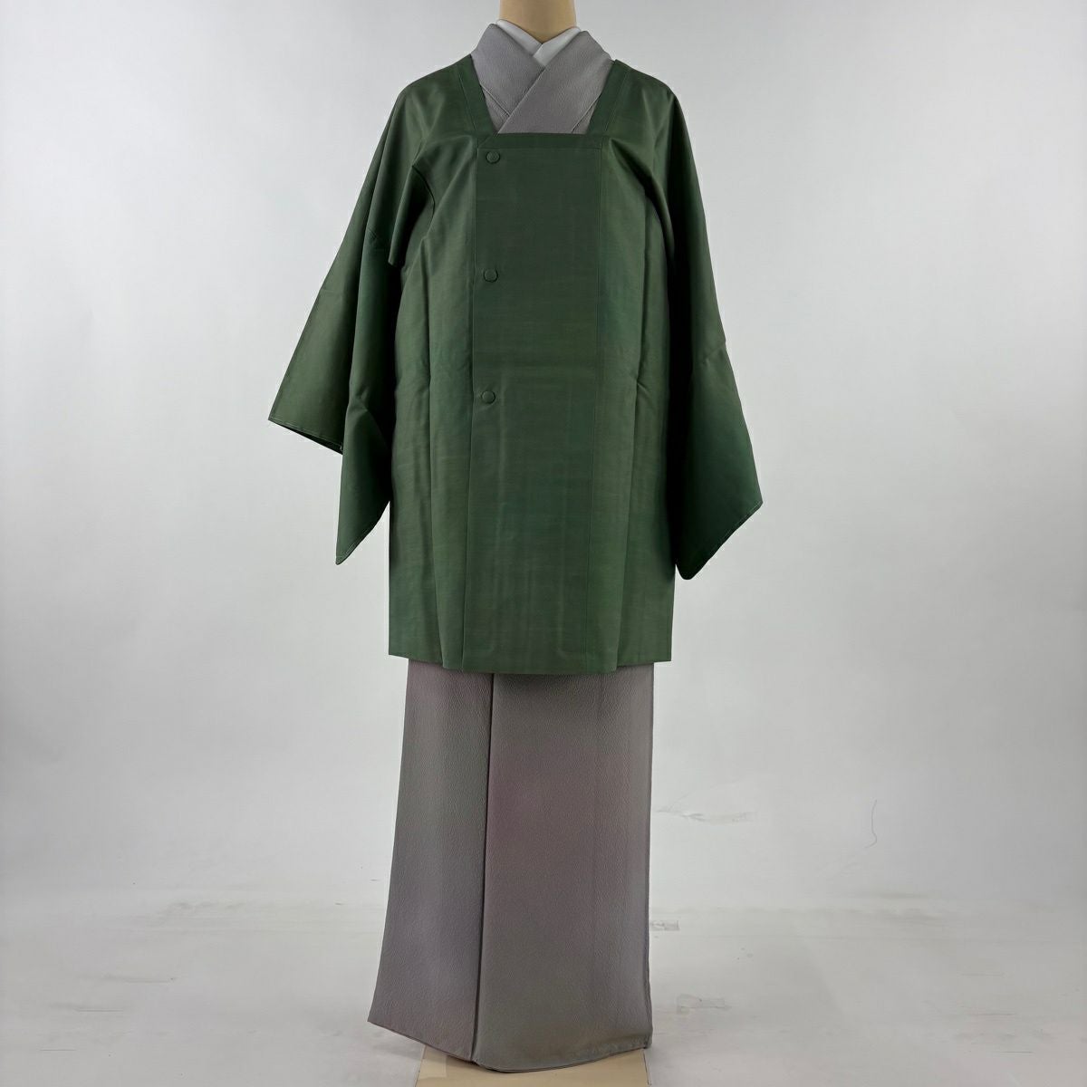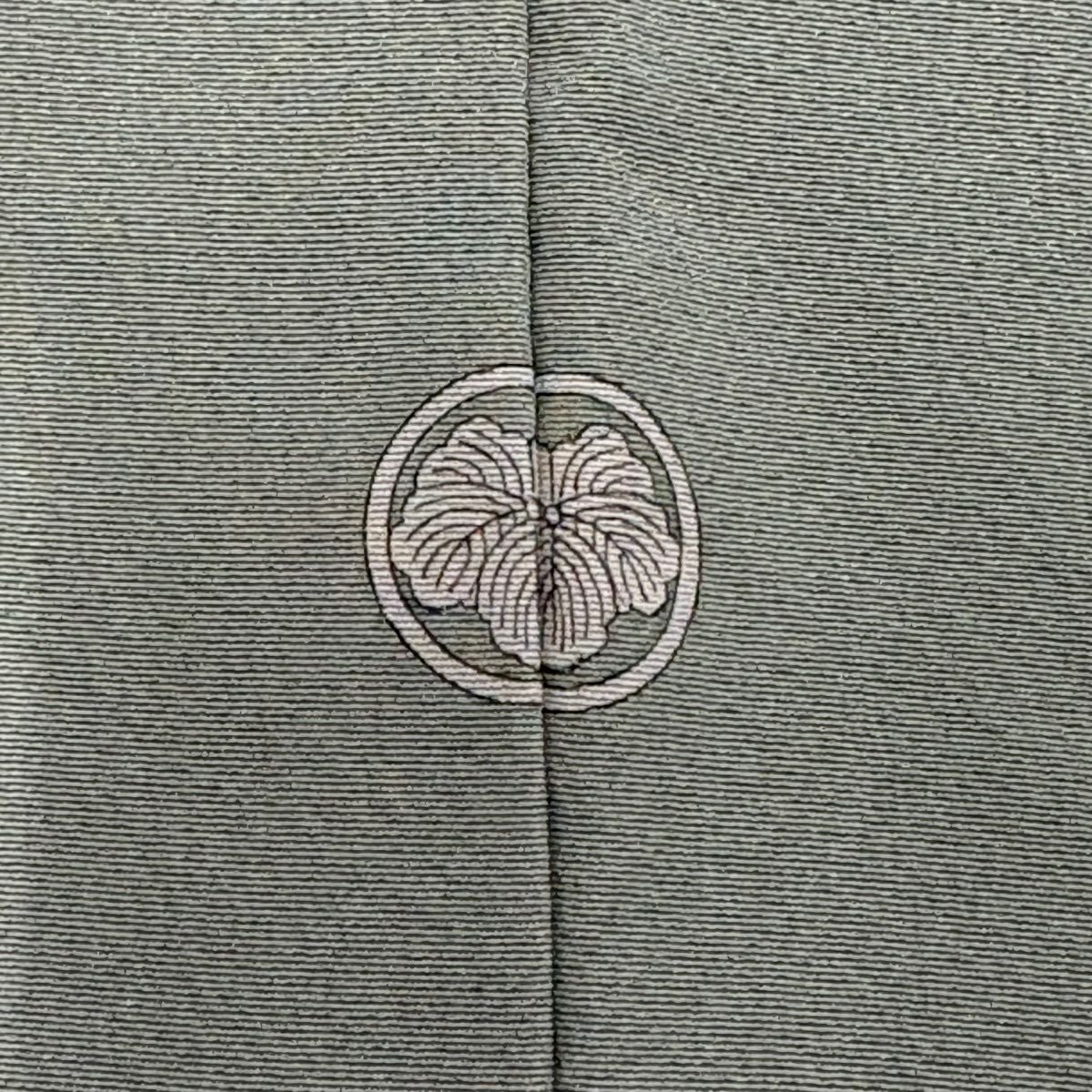 50%OFF 【美品】 小紋 身丈154cm 裄丈63cm S 袷 染谷梅治 落款あり 幾何学模様 緑 正絹 秀品 K50