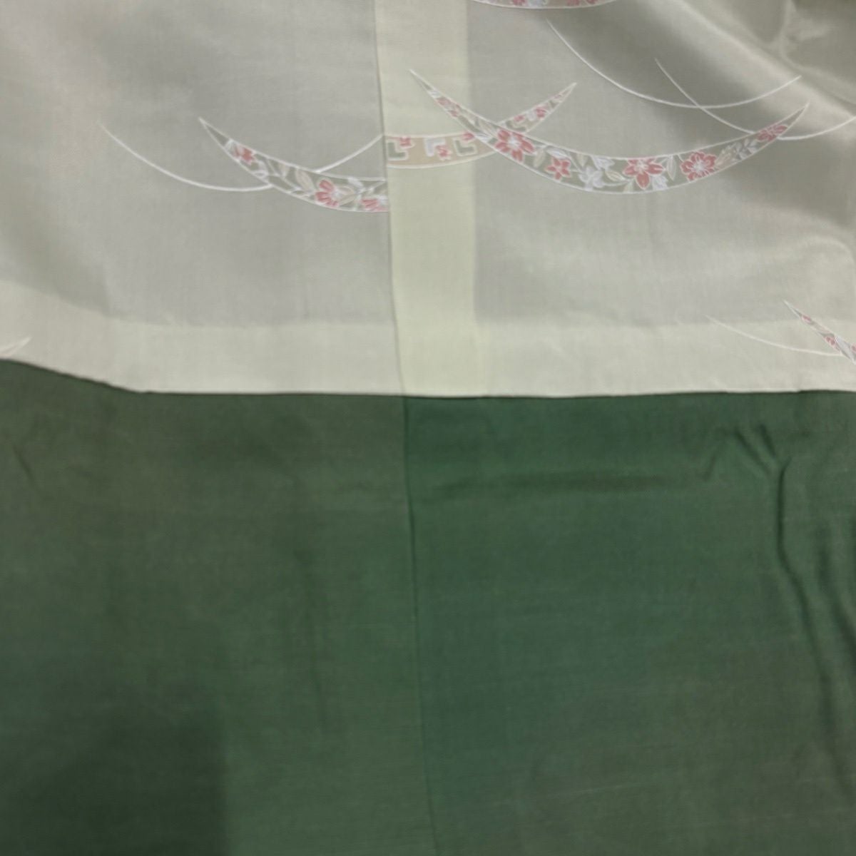 50%OFF 【美品】 付下げ 身丈159.5cm 裄丈66.5cm M 袷 紬地 流水 シルエット 深緑 正絹 秀品 K50