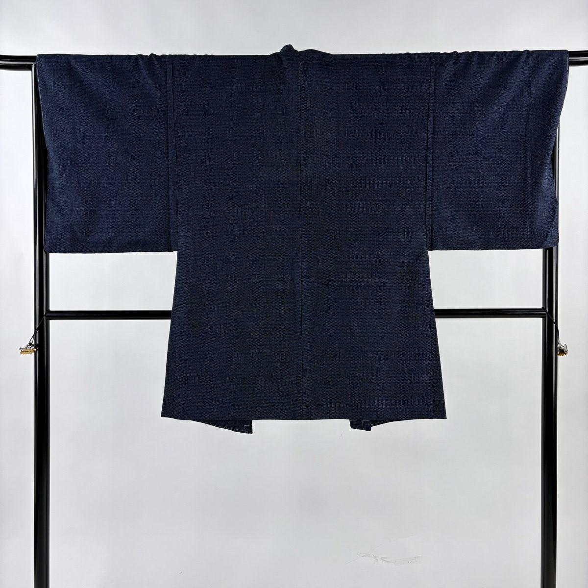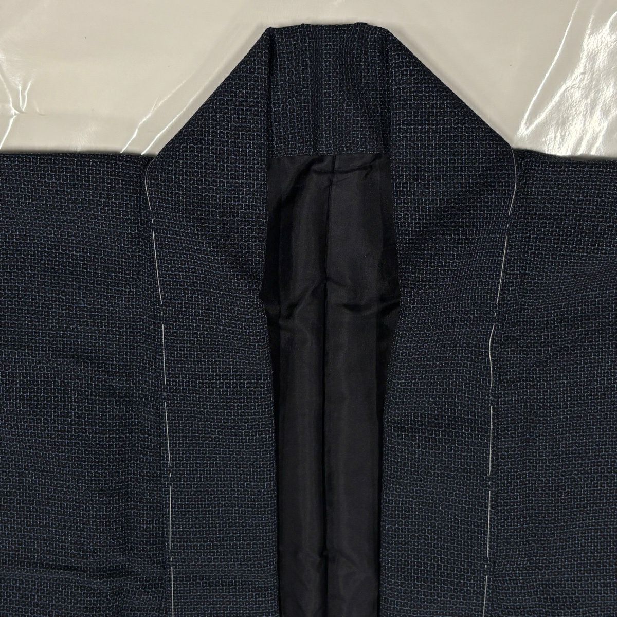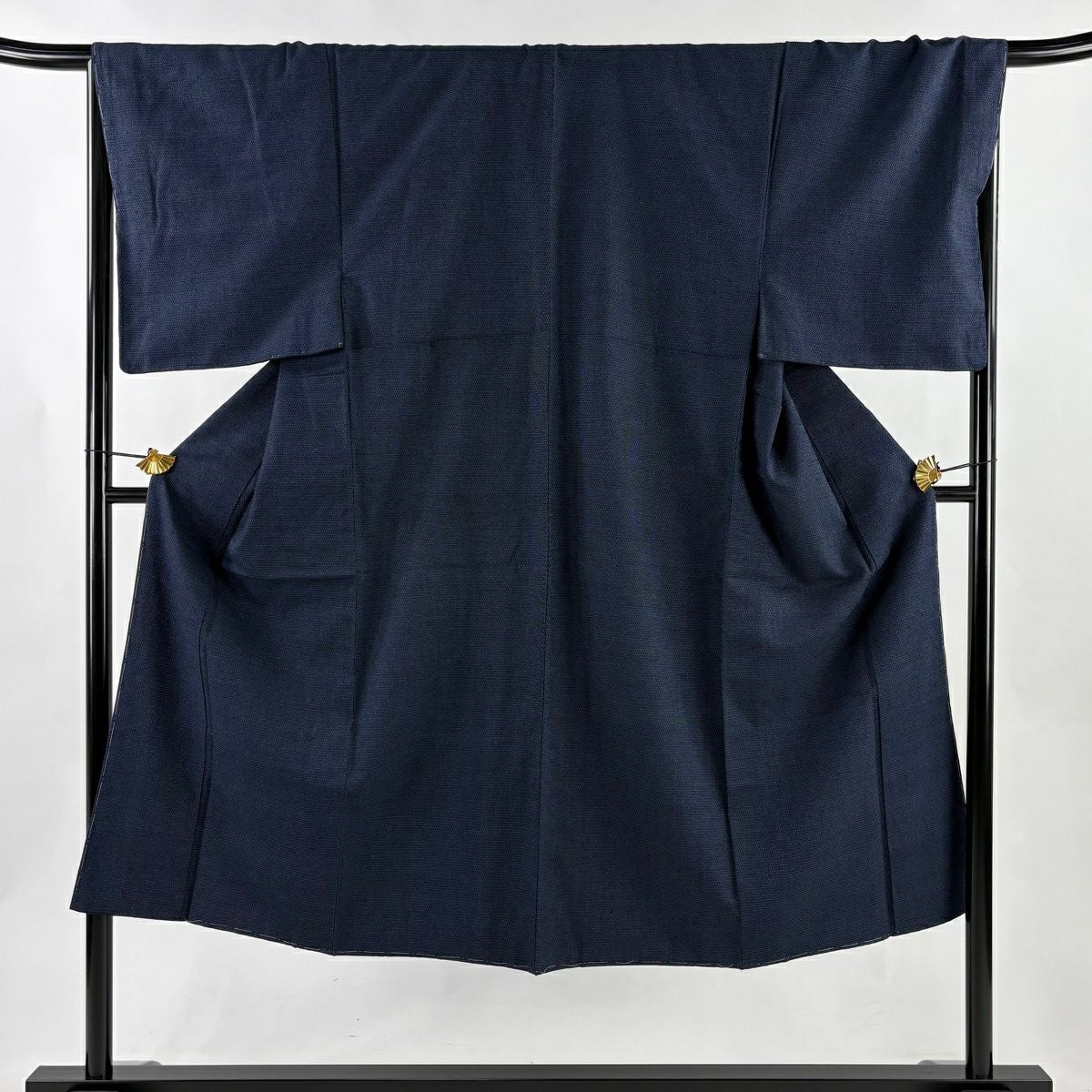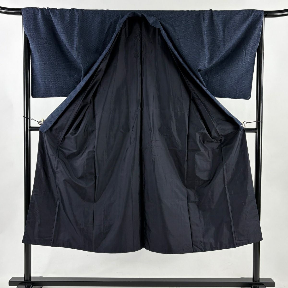 50%OFF 【美品】 紬 身丈163.5cm 裄丈65.5cm M 袷 証紙あり 亀甲絣 よろけ縞 紺色 正絹 秀品 K50