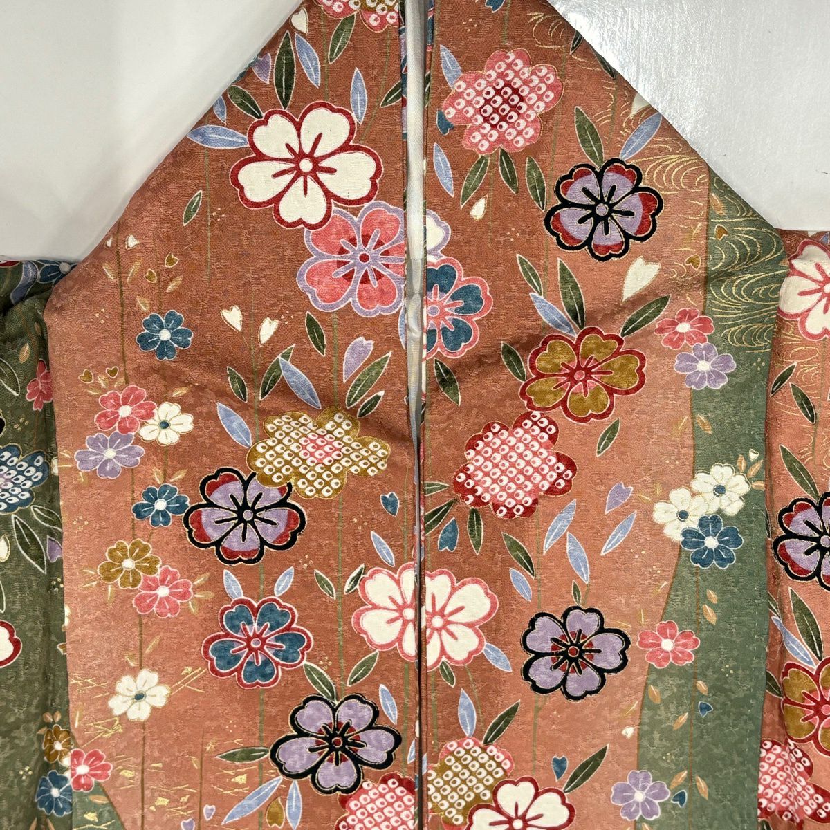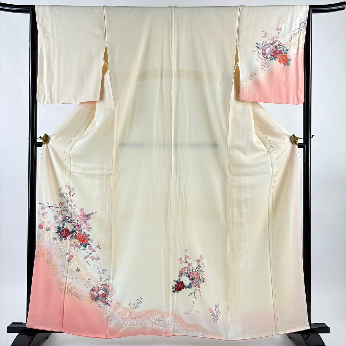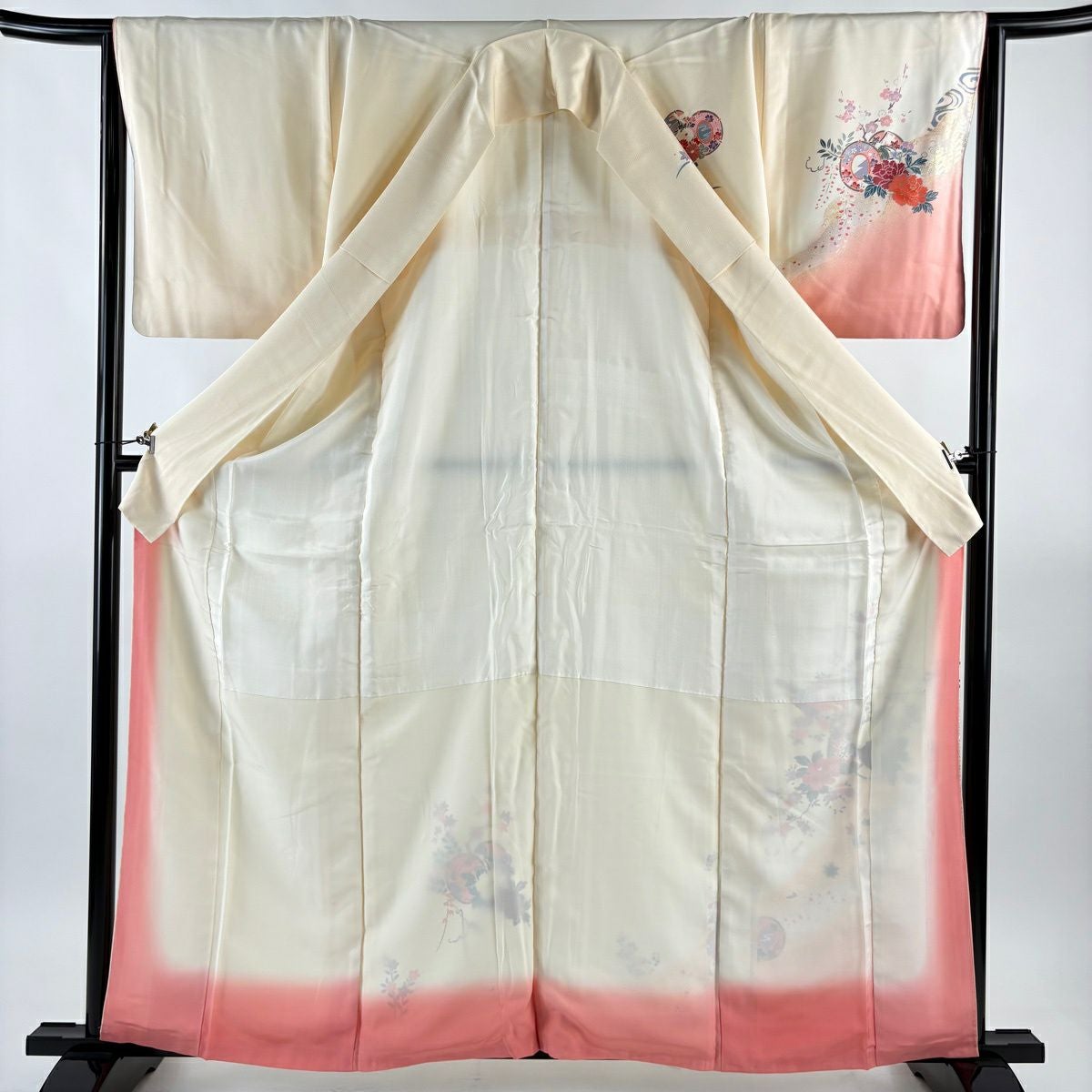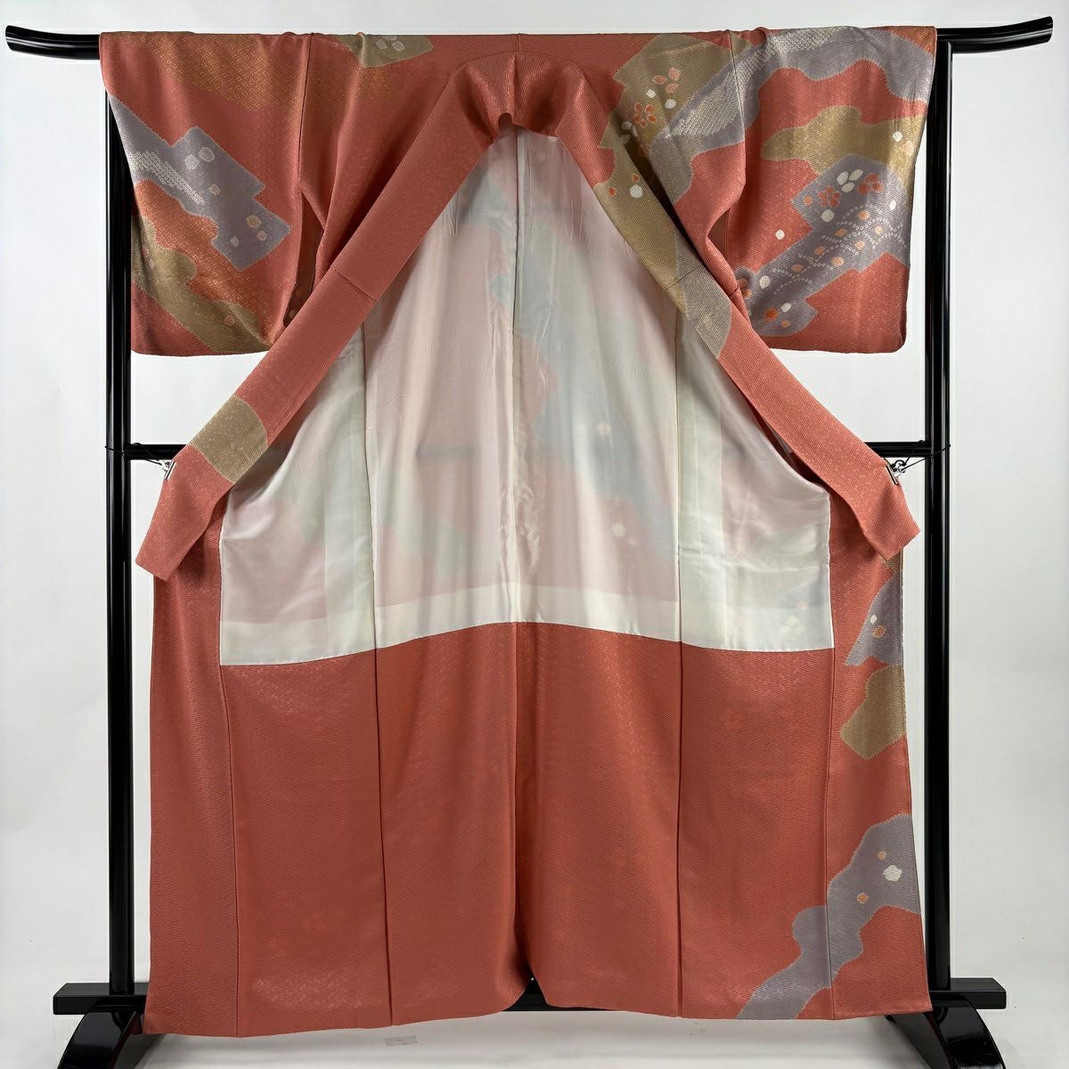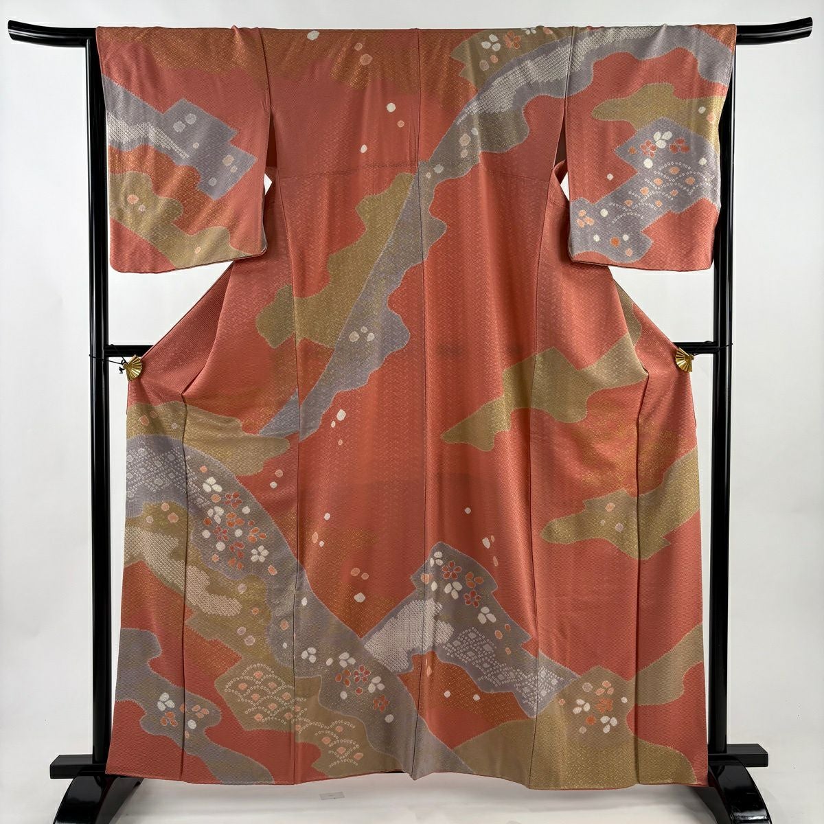 50%OFF 訪問着 身丈167.5cm 裄丈67cm M 袷 貝桶 草花 金糸 金彩 サーモンピンク 正絹 秀品 K50