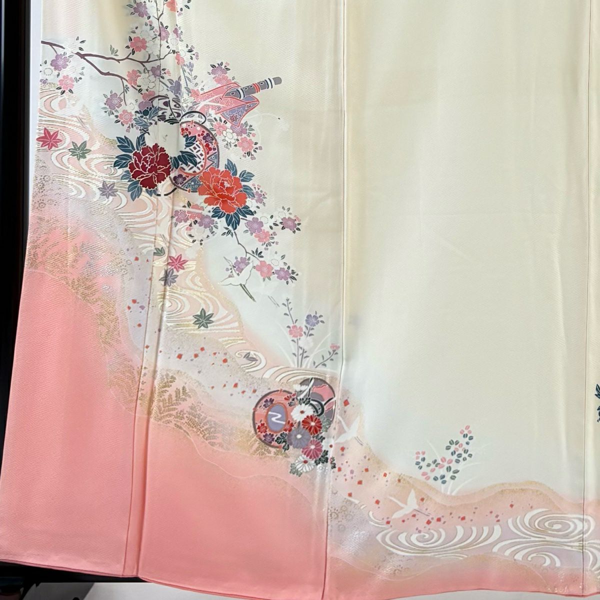 50%OFF 訪問着 身丈172.5cm 裄丈66cm M 袷 落款あり 枝花 草花 ぼかし ピンク 正絹 秀品 K50