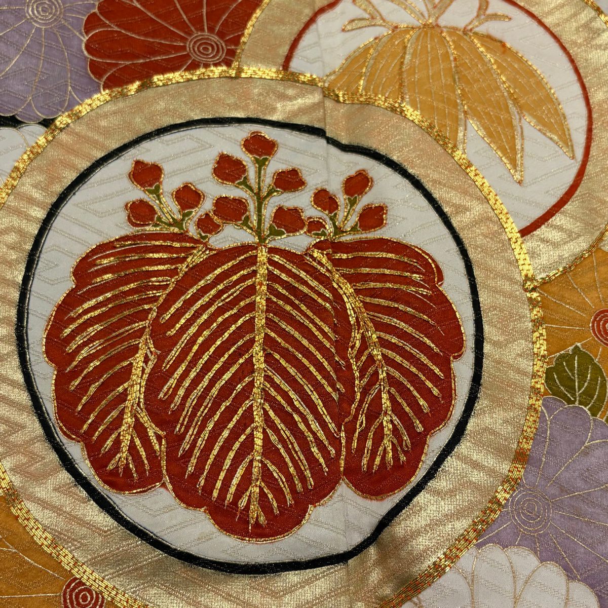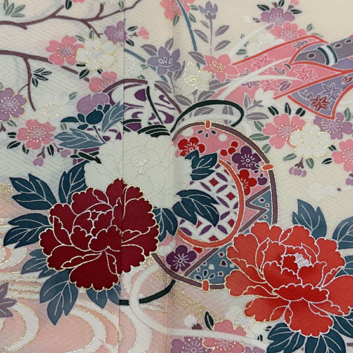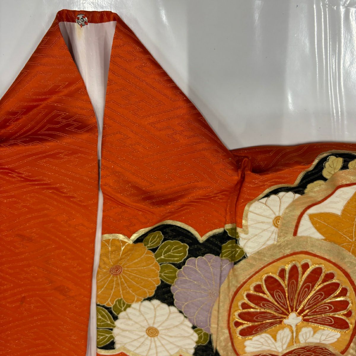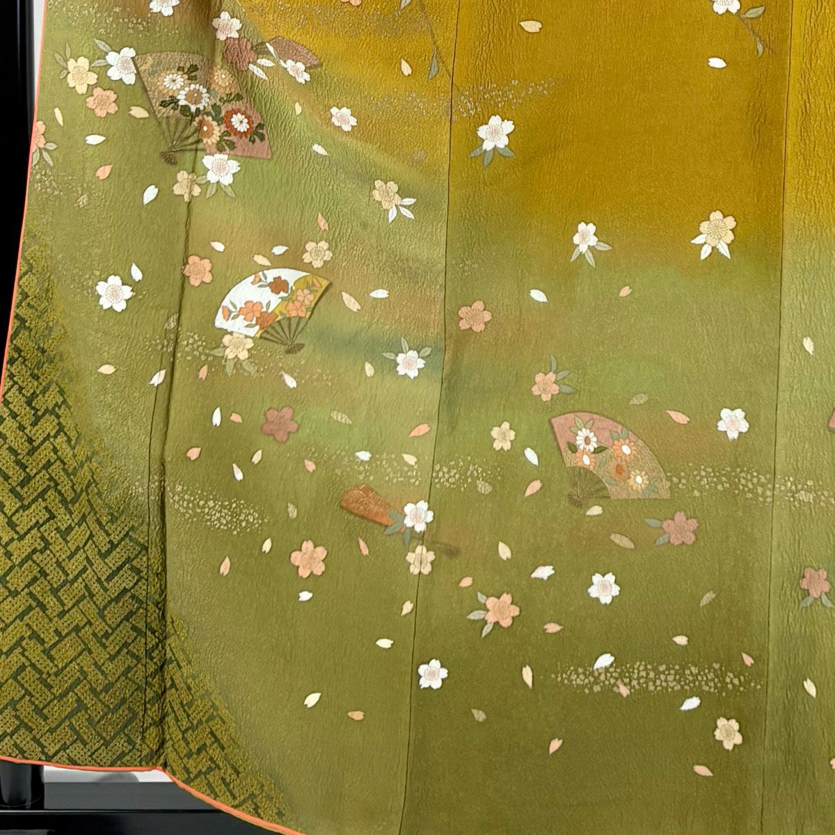 50%OFF 振袖 身丈170cm 裄丈74.5cm 未仕立て 仮絵羽 牡丹 幾何学模様 金彩 山吹色 正絹 秀品 K50