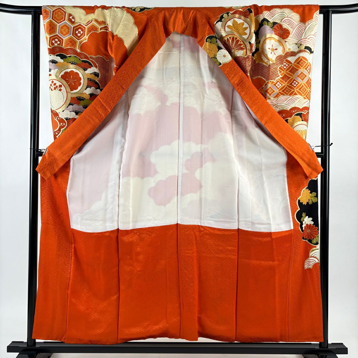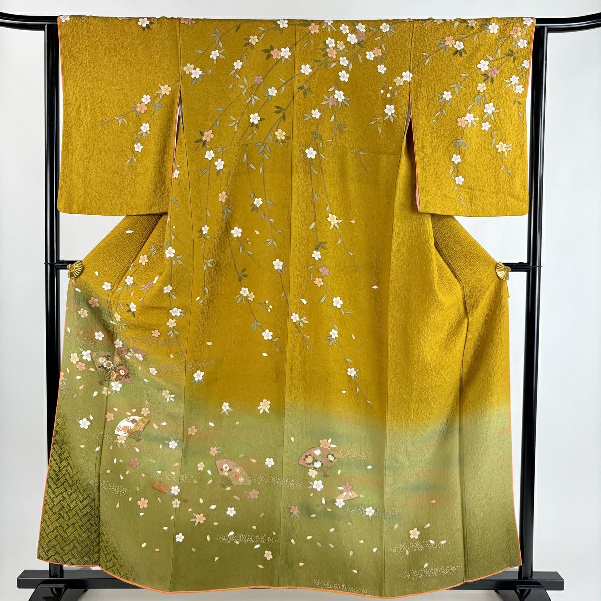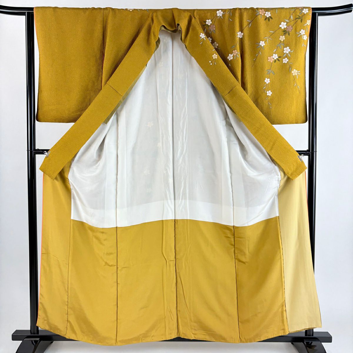 50%OFF 【美品】 振袖 身丈167.5cm 裄丈67cm M 袷 御所車 草花 金糸 金彩 山吹色 正絹 秀品 K50