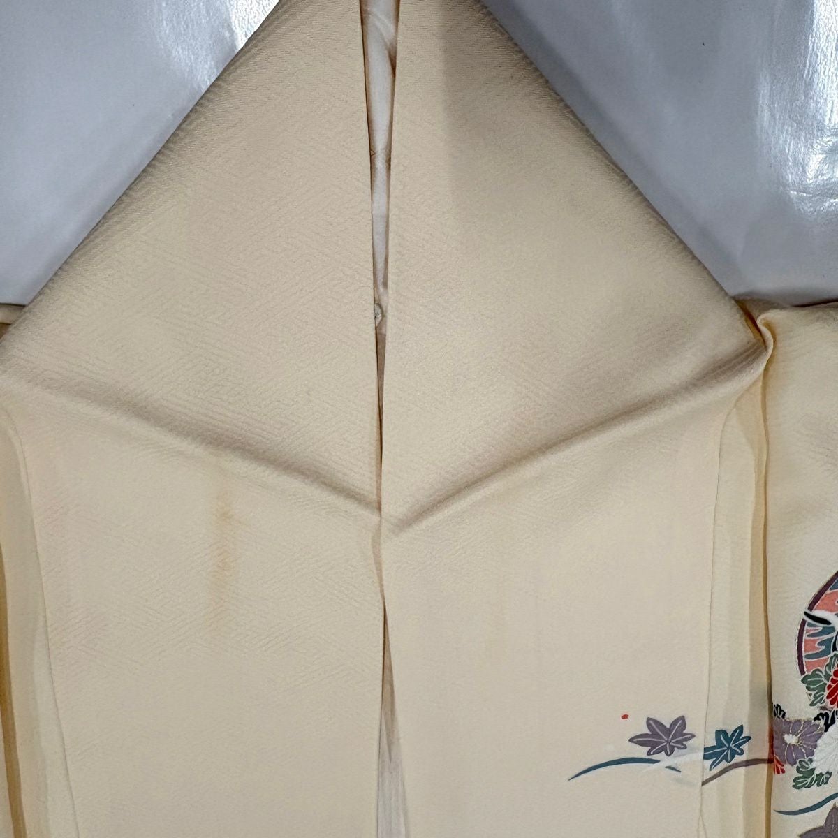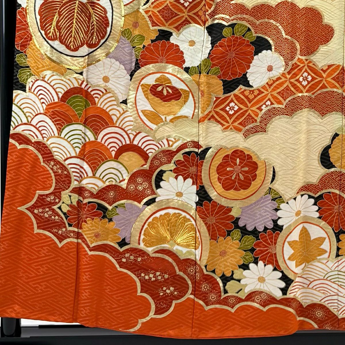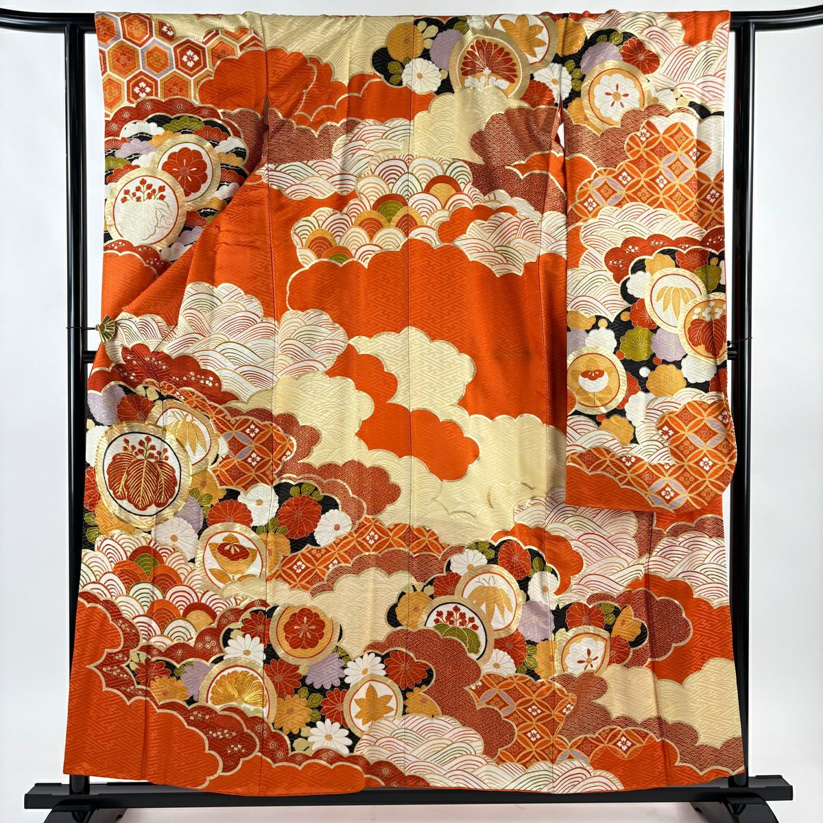 50%OFF 【美品】 振袖 身丈167.5cm 裄丈67cm M 袷 御所車 草花 金糸 金彩 山吹色 正絹 秀品 K50