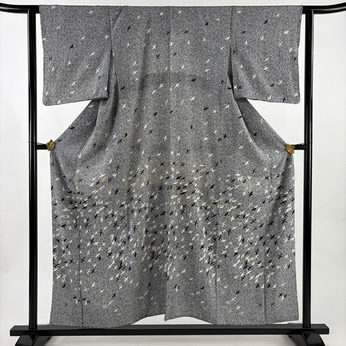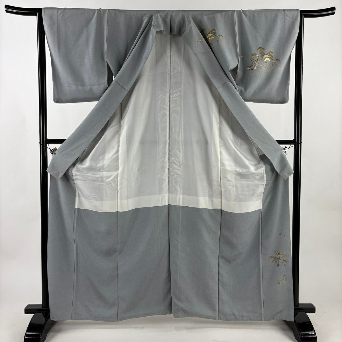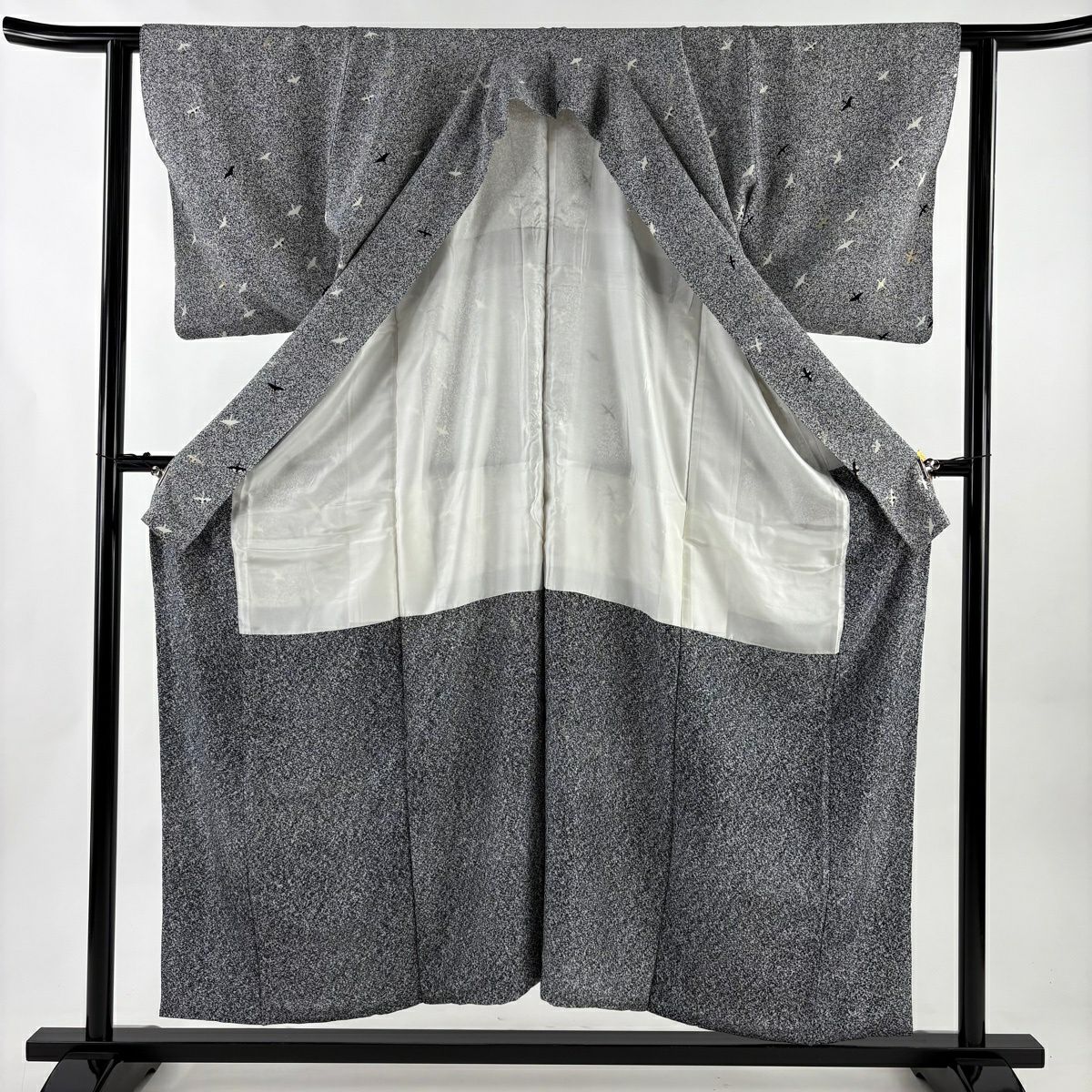 50%OFF 【美品】 付下げ 身丈159.5cm 裄丈68.5cm L 袷 草花 芝 金銀彩 ラメ 黒灰 正絹 秀品 K50