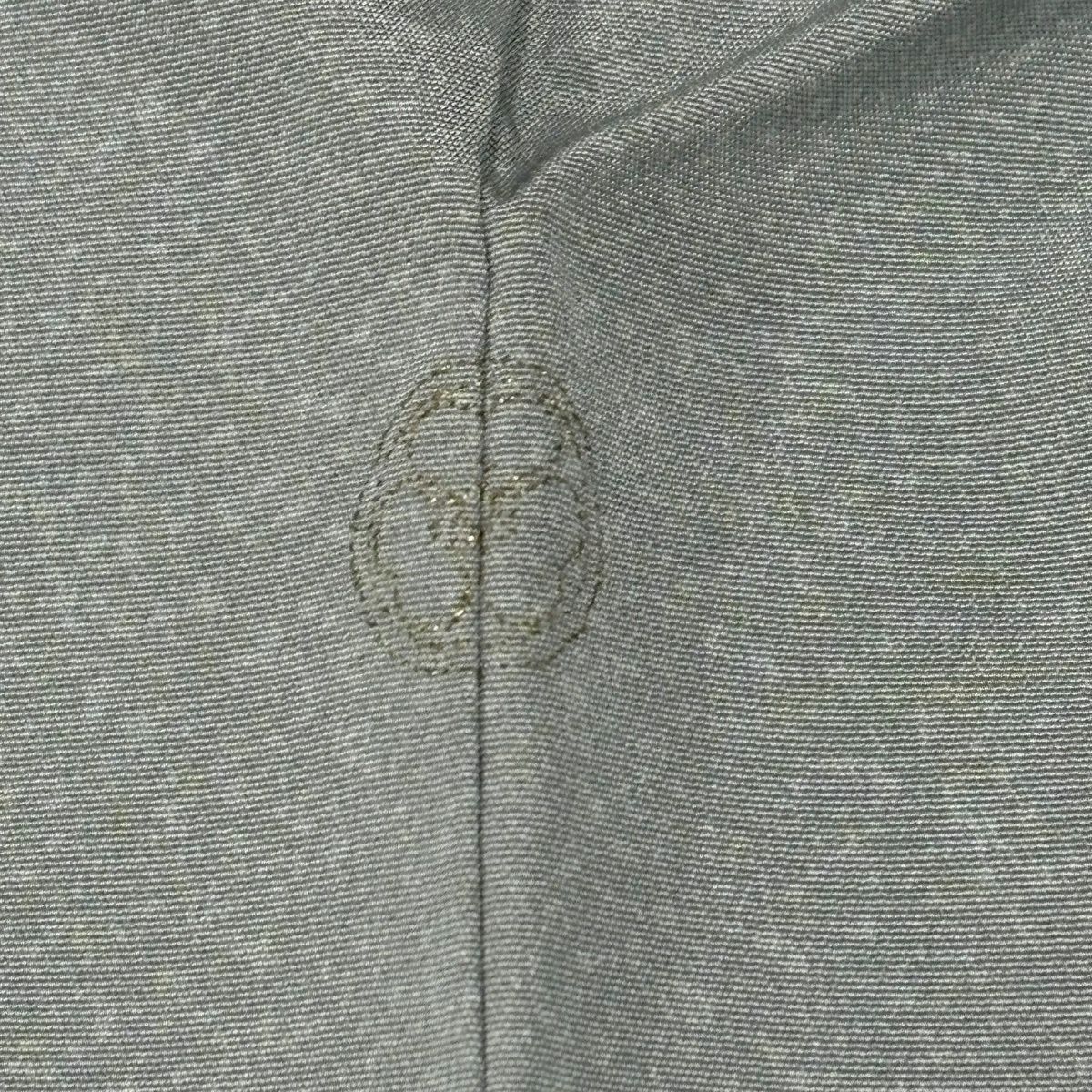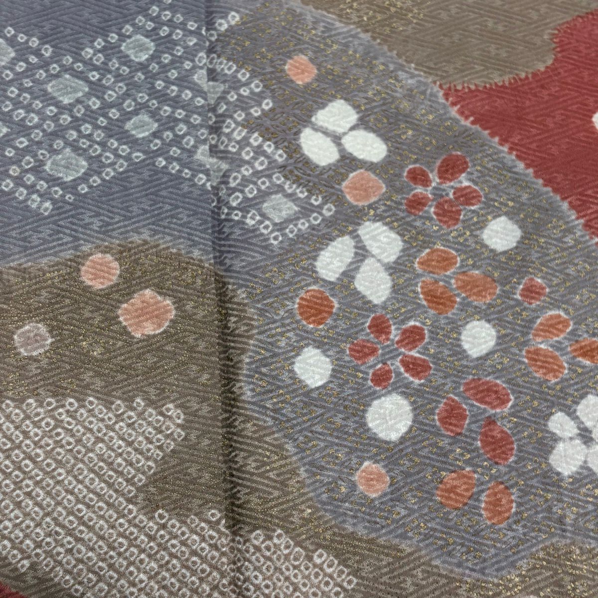 50%OFF 付下げ 身丈160cm 裄丈64cm M 袷 落款あり 霞 幾何学模様 絞り 金彩 灰緑 正絹 秀品 K50