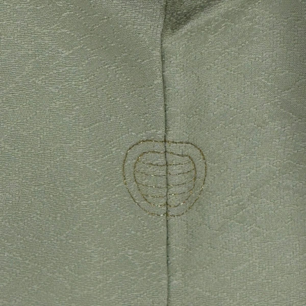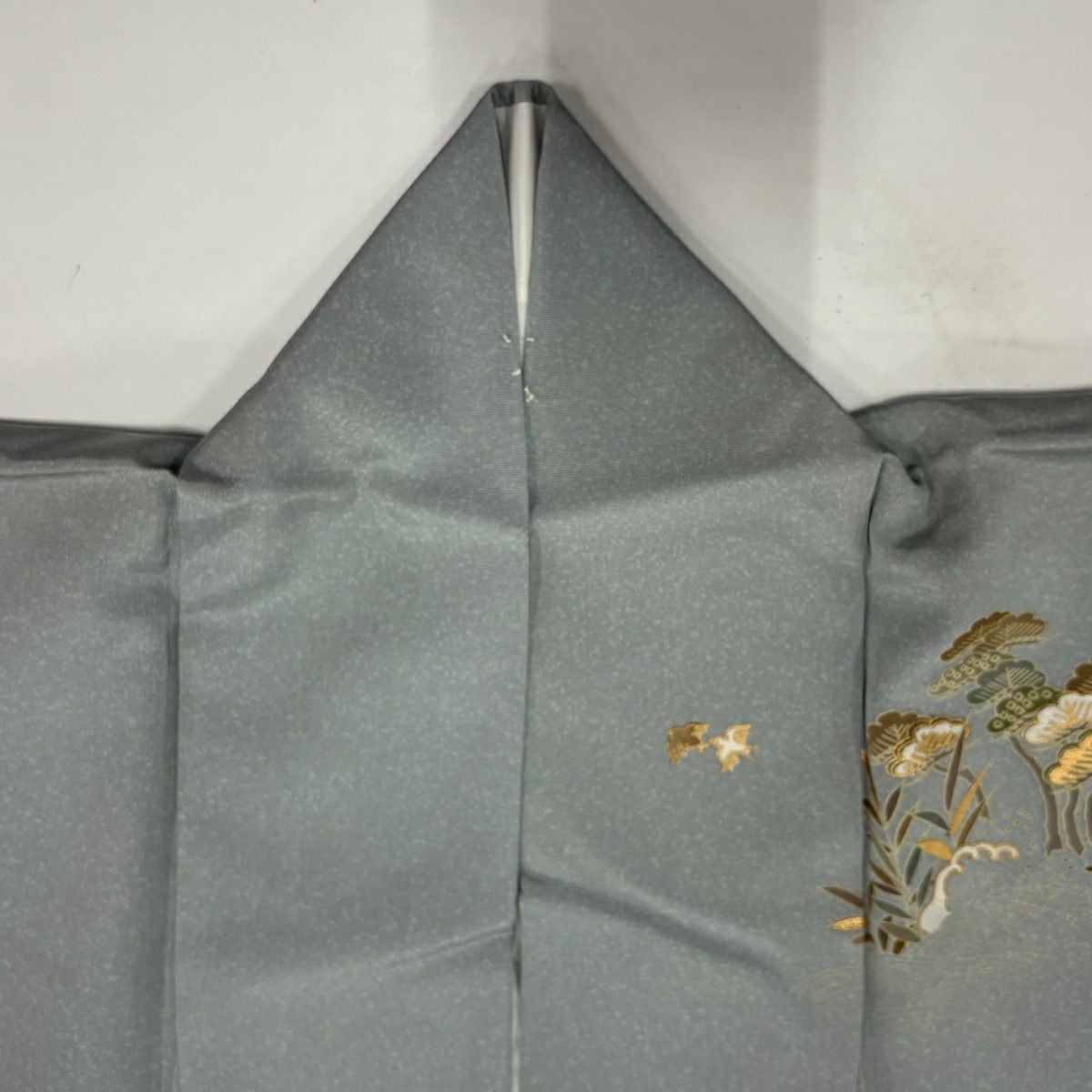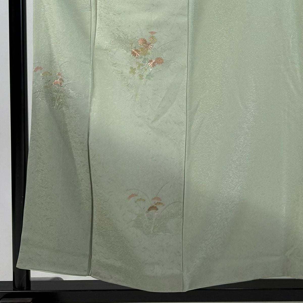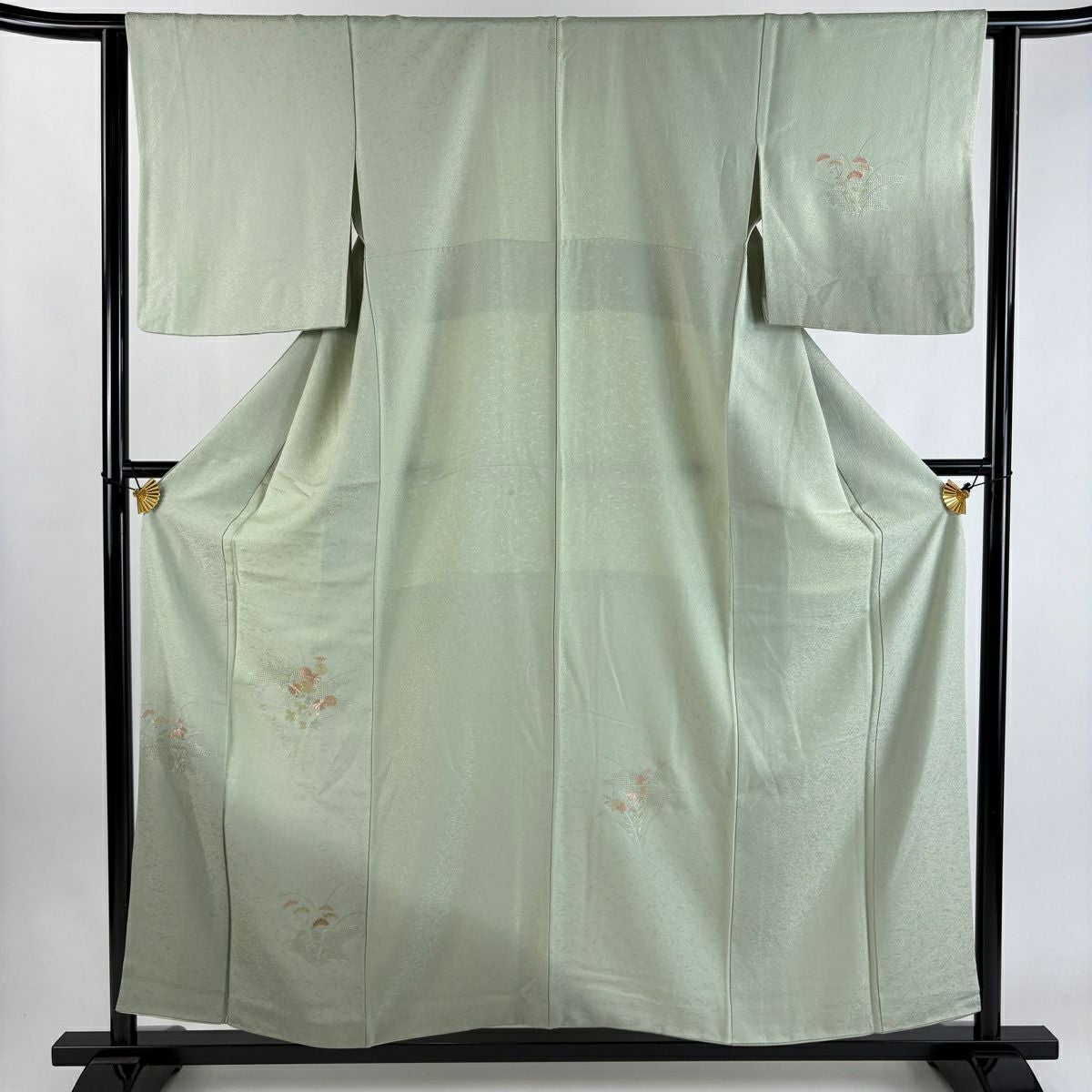 50%OFF 訪問着 身丈163cm 裄丈66cm M 袷 紬地 落款あり 草花 短冊 箔 刺繍 灰緑 正絹 秀品 K50