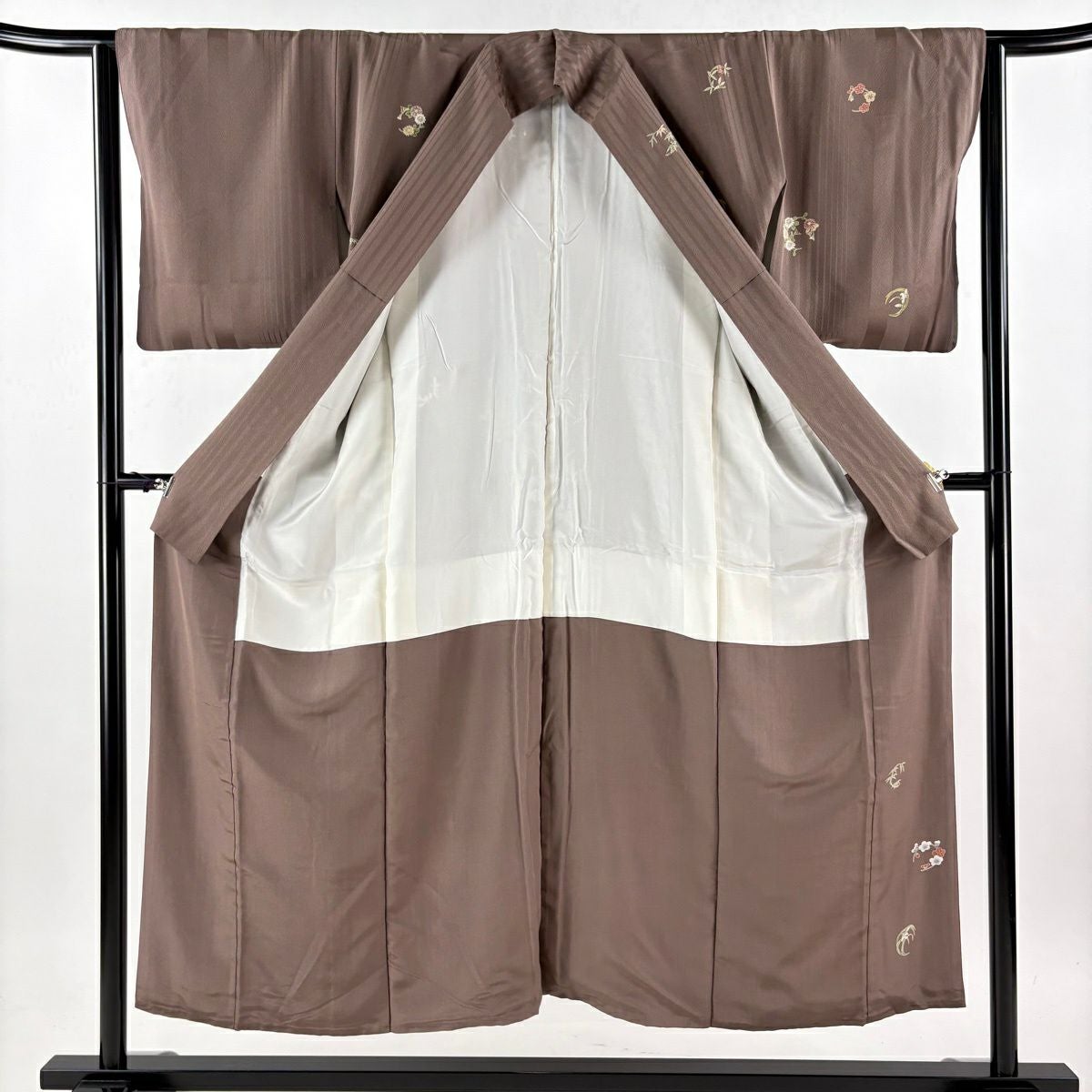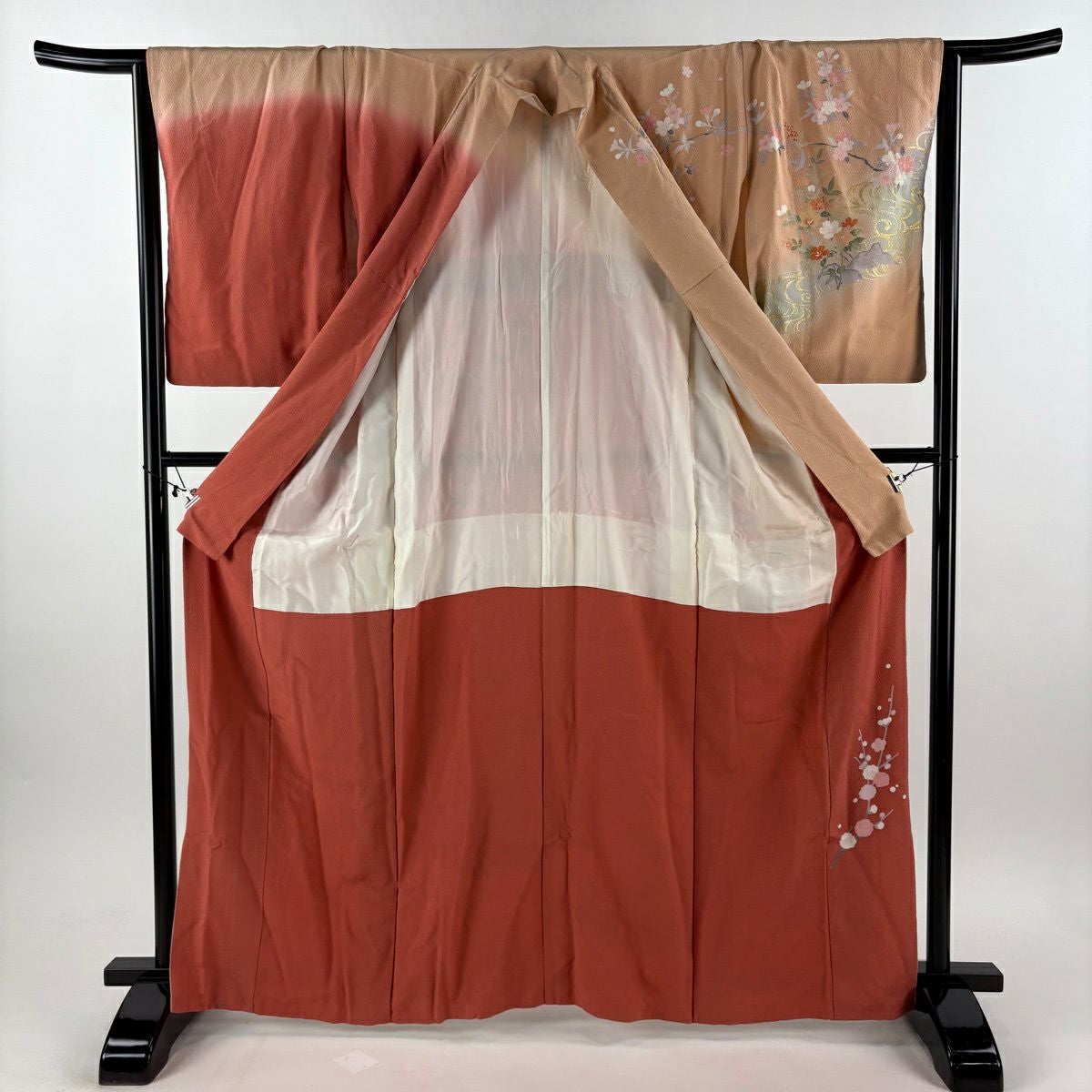 50%OFF 【美品】 訪問着 身丈151cm 裄丈64.5cm M 袷 枝花 染め分け ぼかし 茶色 正絹 秀品 K50