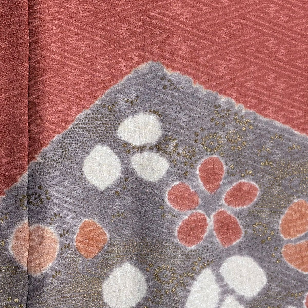 50%OFF 【美品】 訪問着 身丈152.5cm 裄丈62.5cm S 袷 落款あり 枝花 ぼかし 薄小豆 正絹 秀品 K50