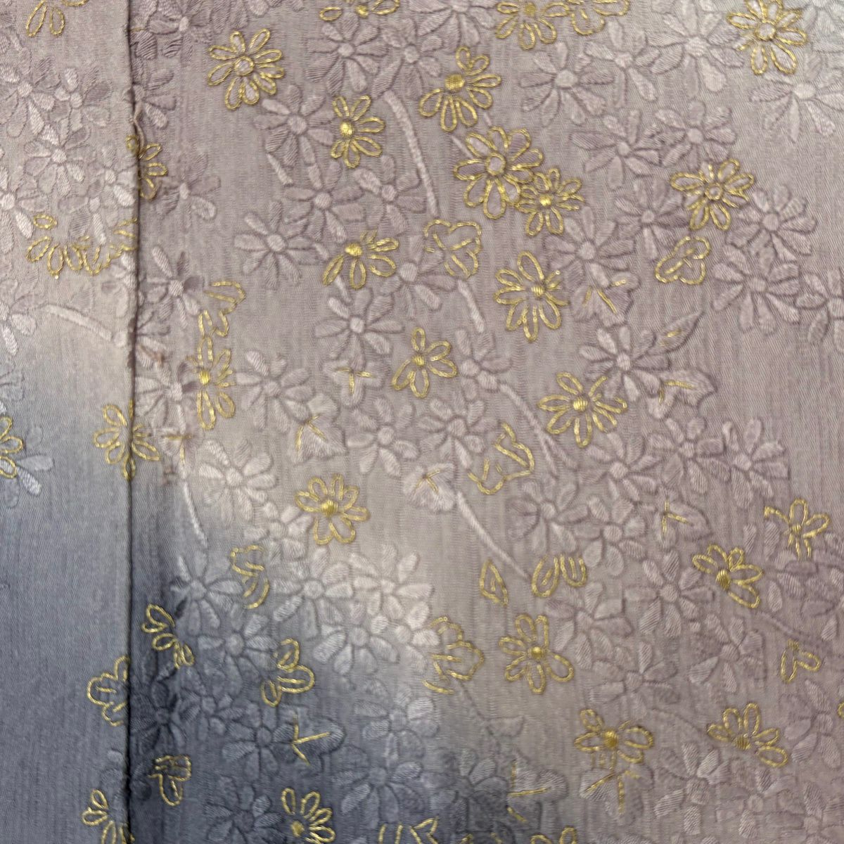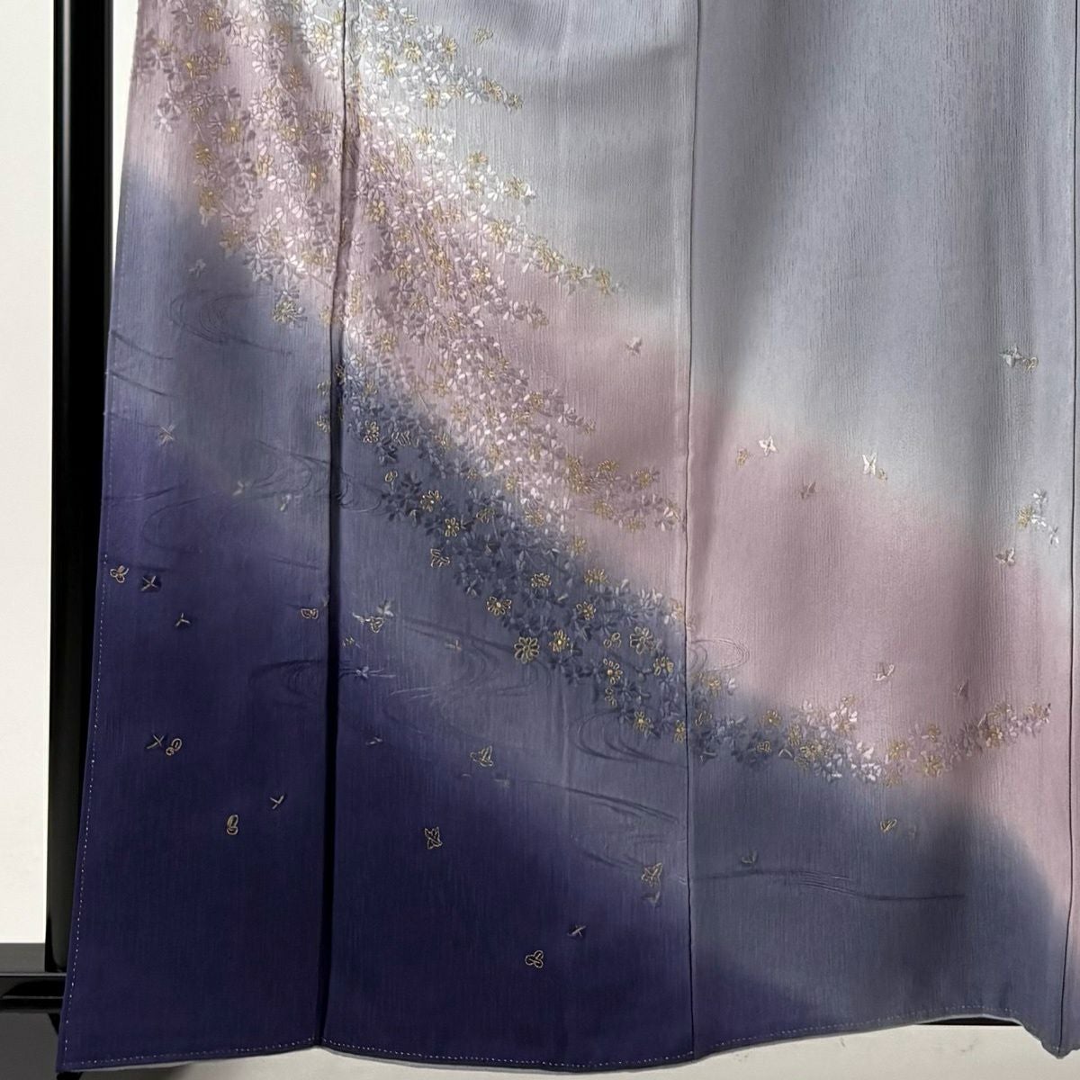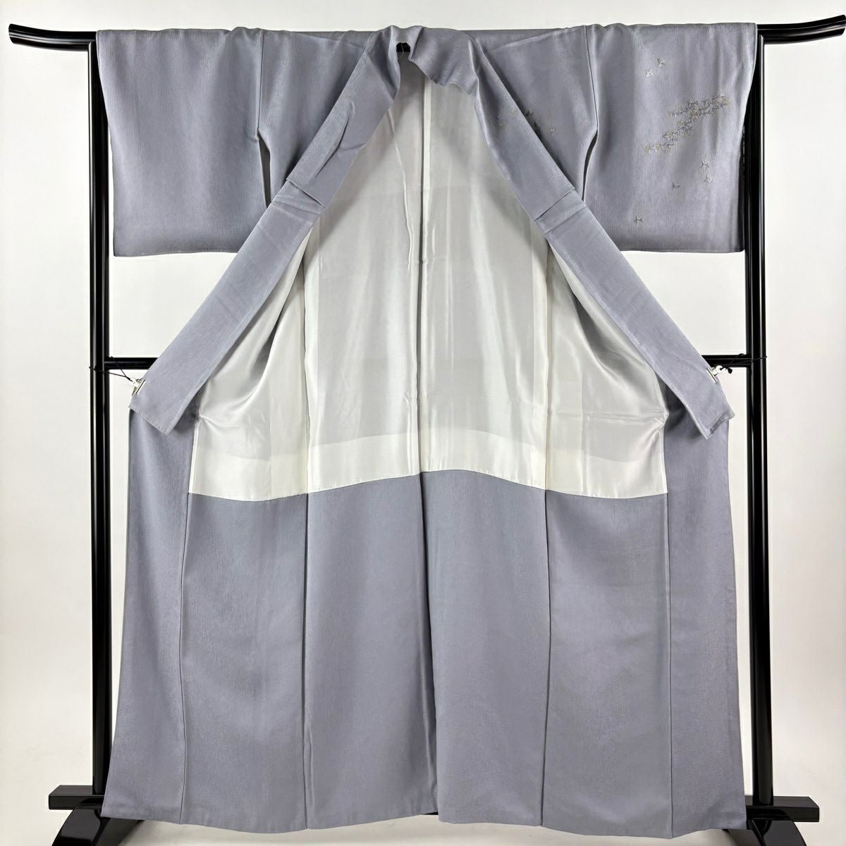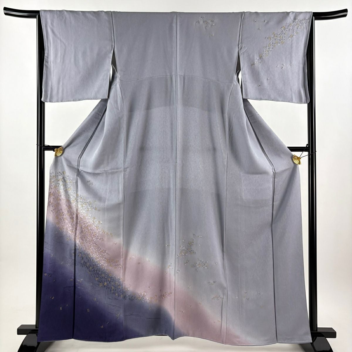 50%OFF 【美品】 訪問着 身丈155cm 裄丈64cm M 袷 破れ色紙 霞 刺繍 ぼかし 灰紫 正絹 秀品 K50