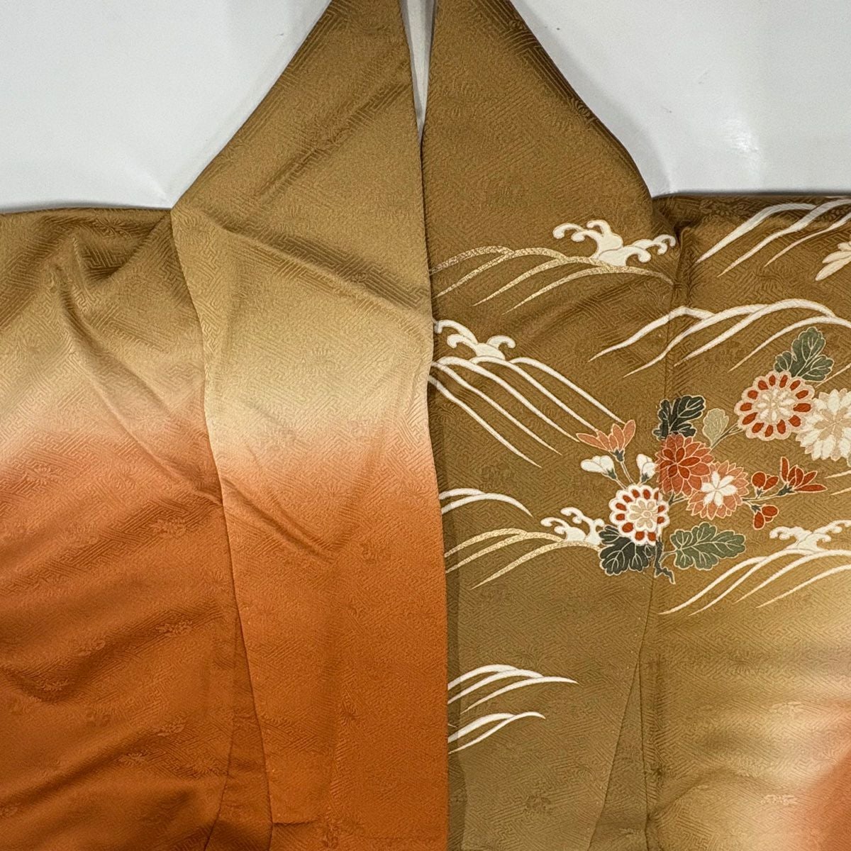 【最終値引き】 76%OFF 訪問着 身丈165cm 裄丈66cm M 袷 菊 波頭 金糸 金彩 黄土色 正絹 秀品 K70
