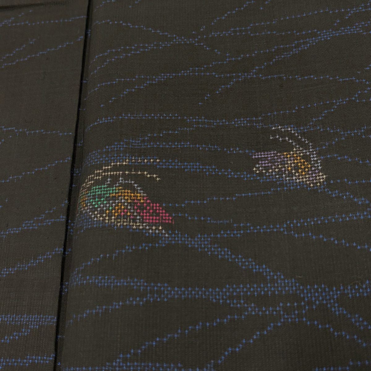 【最終値引き】 70%OFF 小紋 身丈154.5cm 裄丈65.5cm M 袷 菱 縞 絞り 金彩 黒灰 正絹 秀品 K70