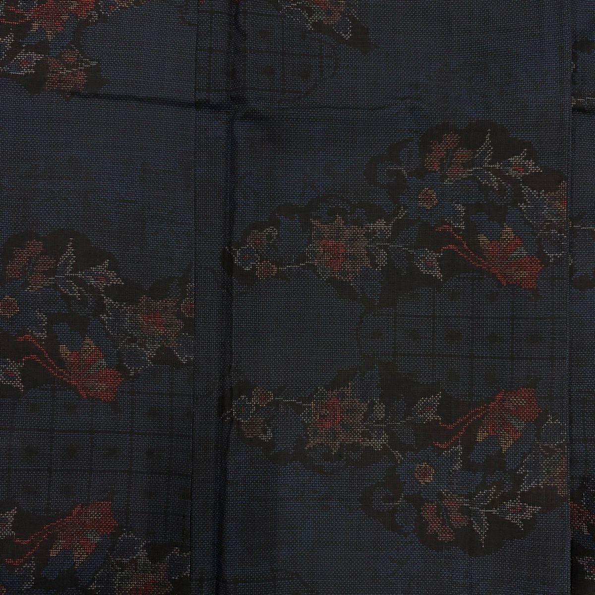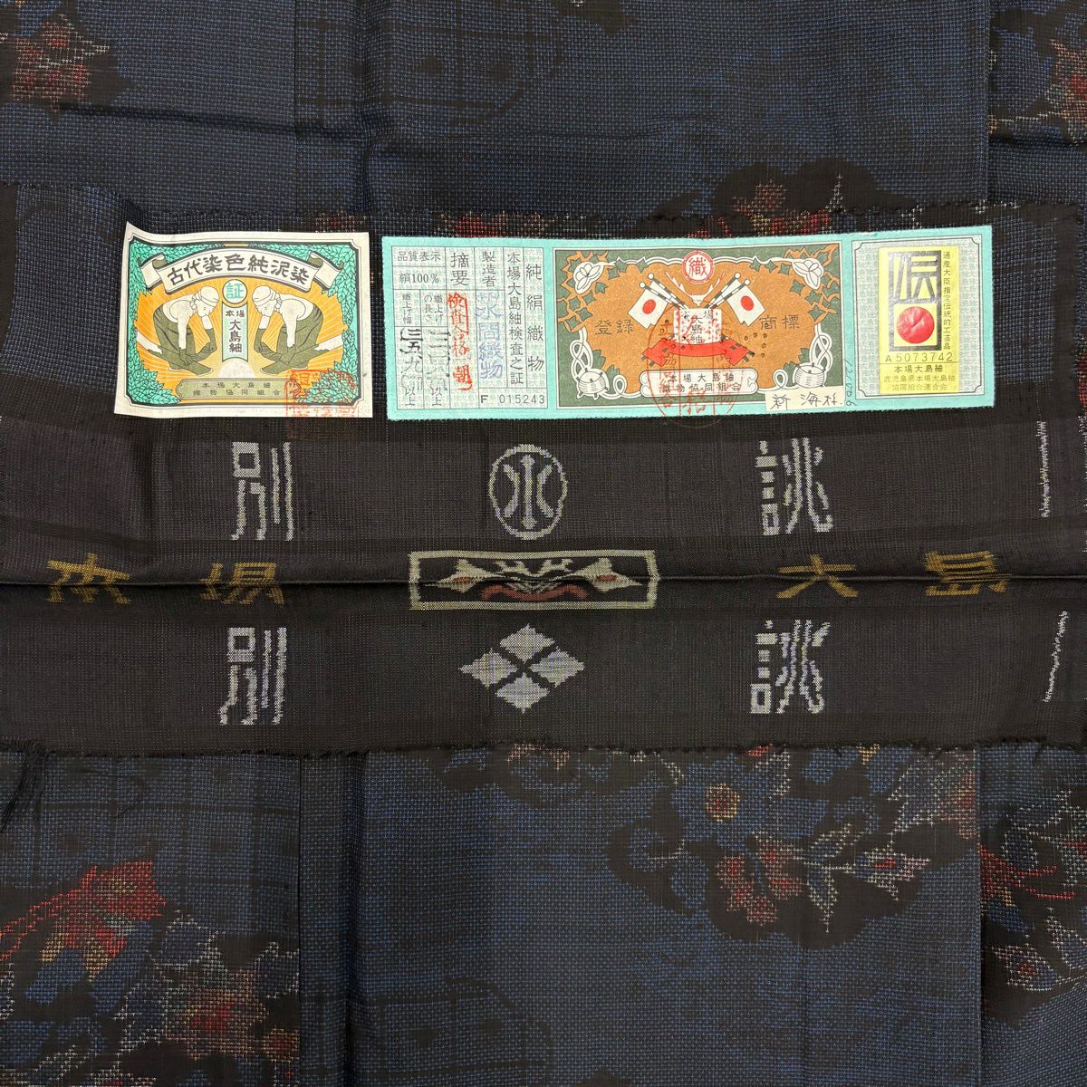 30%OFF 【美品】 大島紬 身丈160cm 裄丈62cm S 袷 純泥染 証紙あり 雲文 花蝶 青黒 正絹 秀品 K30