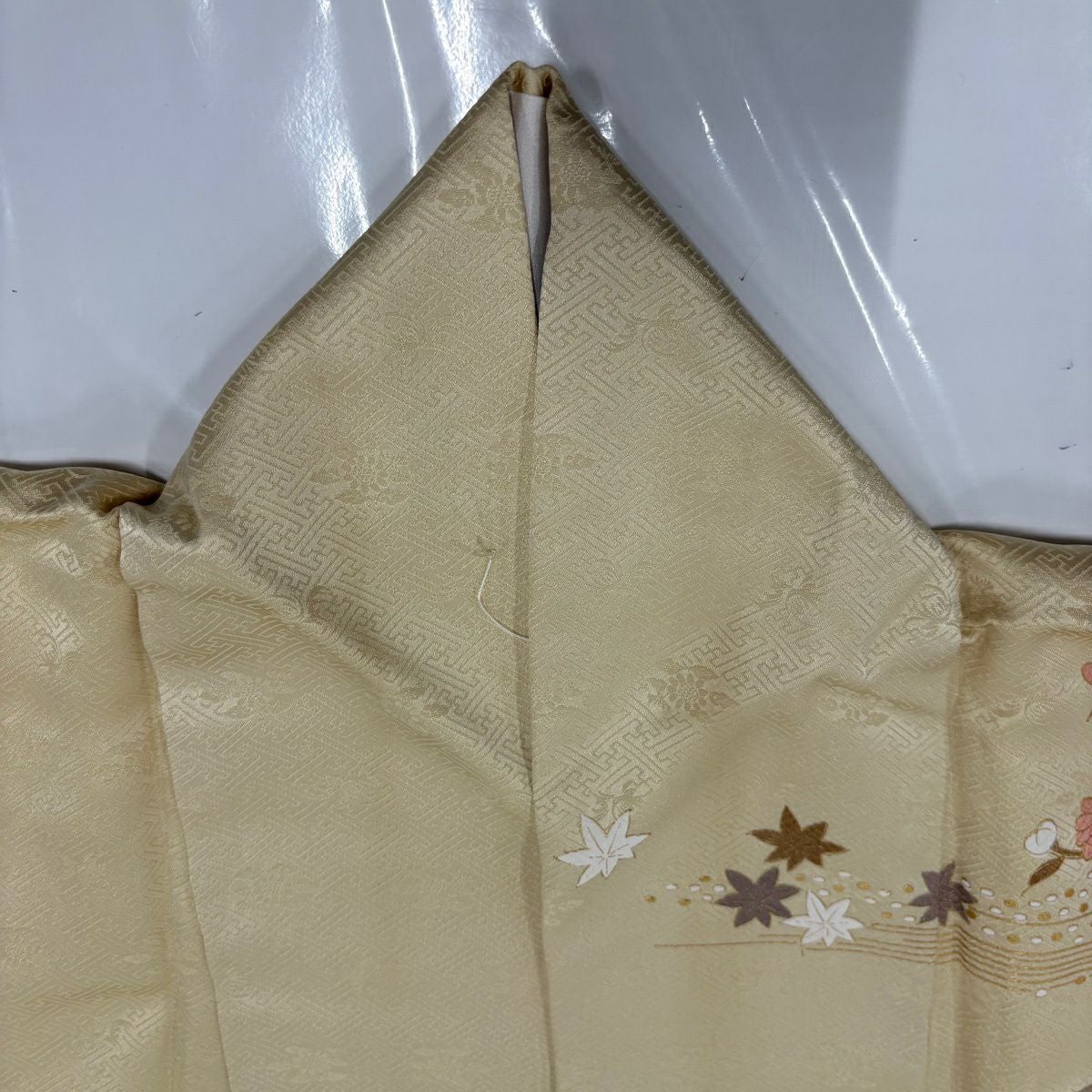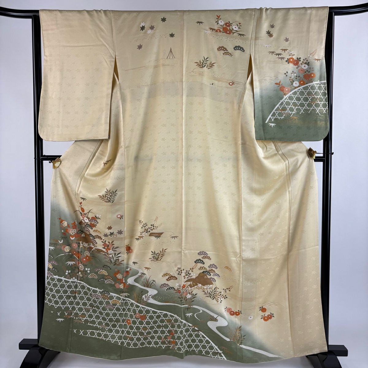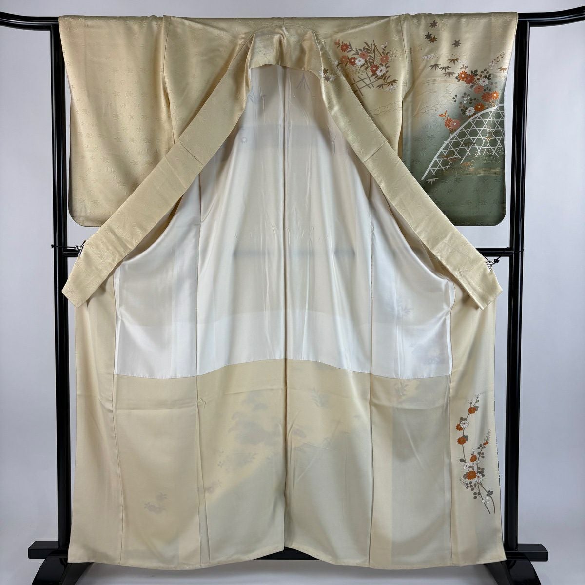 【在庫一掃】 色留袖 身丈162.5cm 裄丈66cm M 袷 御所車 松竹梅 金糸 金彩 ベージュ 正絹 秀品 一つ紋