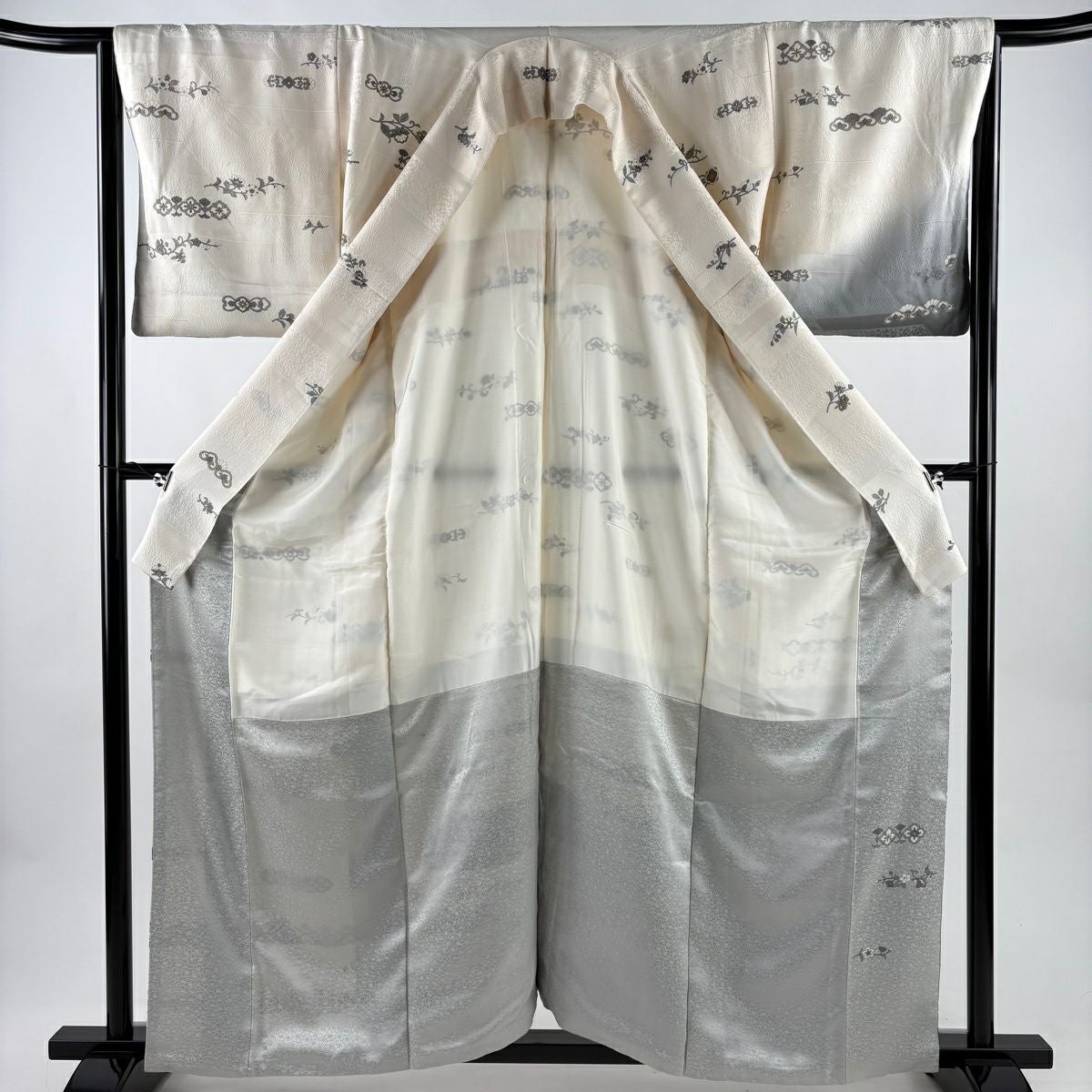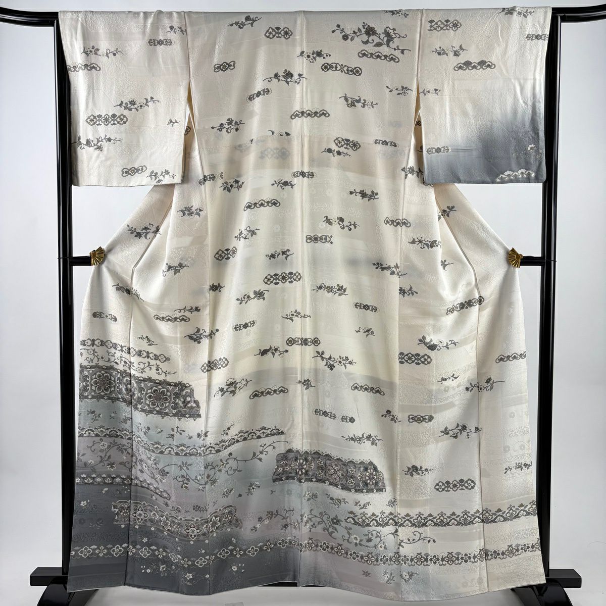 30%OFF 付下げ 身丈158.5cm 裄丈65cm M 袷 華文 向かい鳥 染め分け ぼかし クリーム 正絹 秀品 K30
