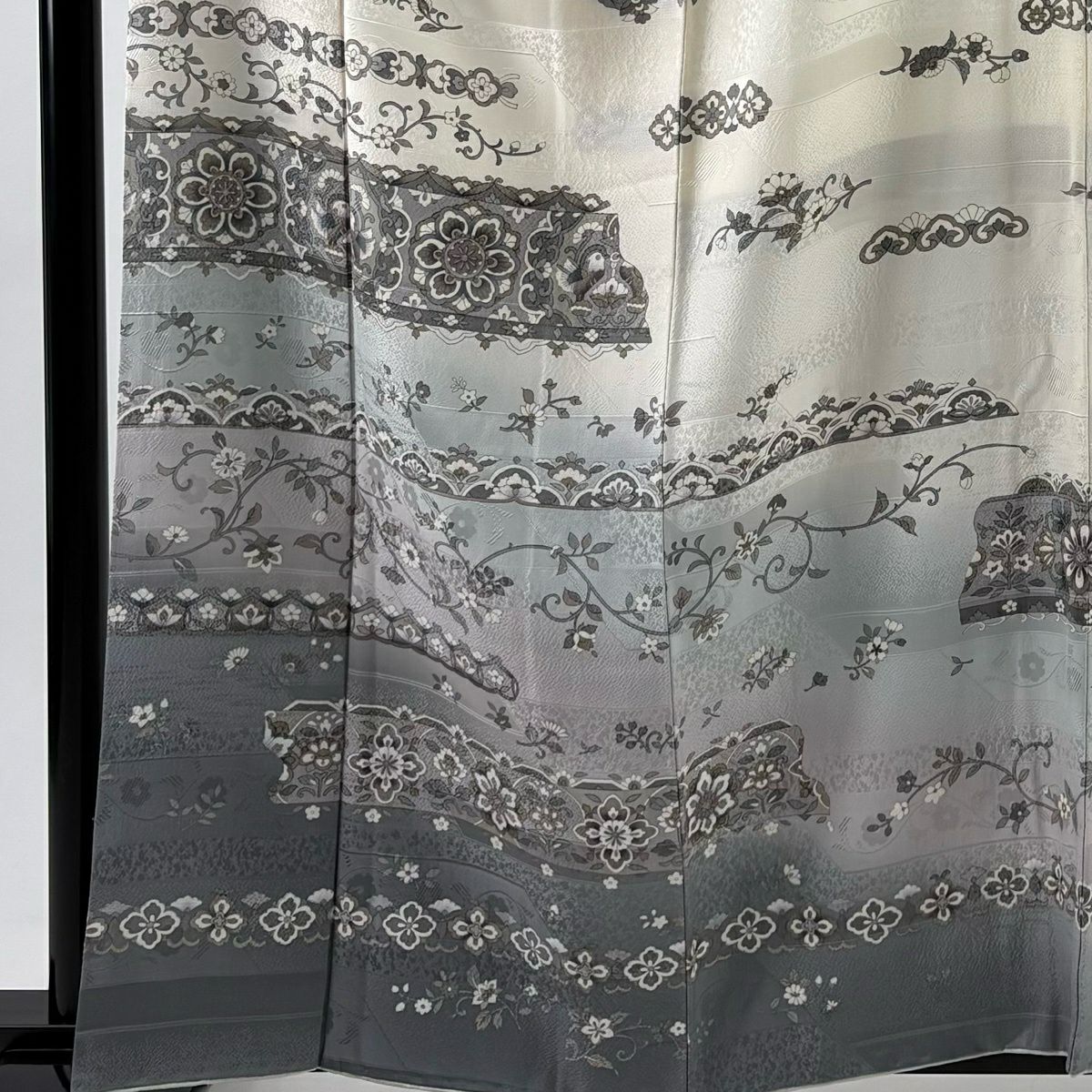 【最終値引き】 77%OFF 【美品】 小紋 身丈161.5cm 裄丈64cm M 袷 霞 灰色 正絹 秀品 一つ紋 K70