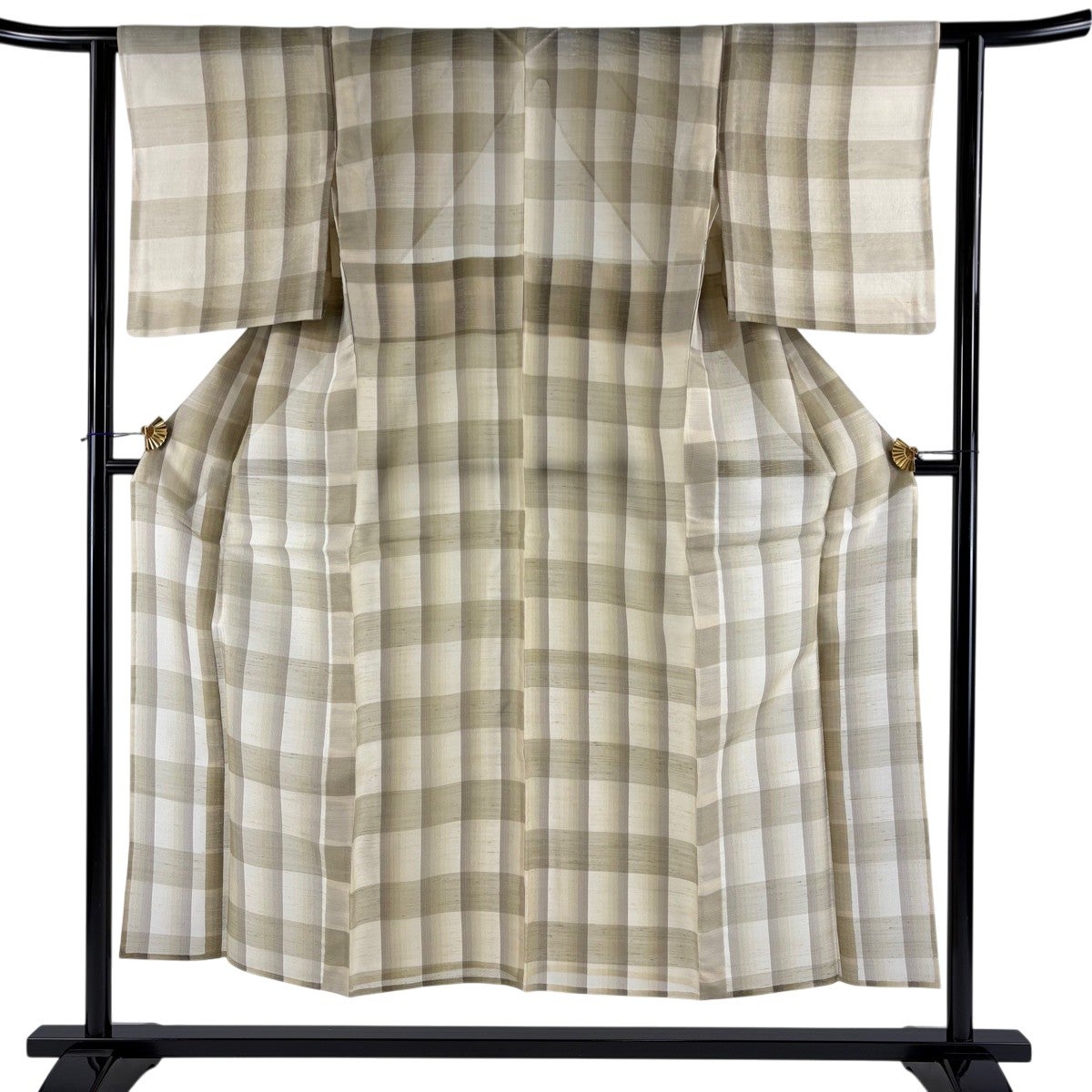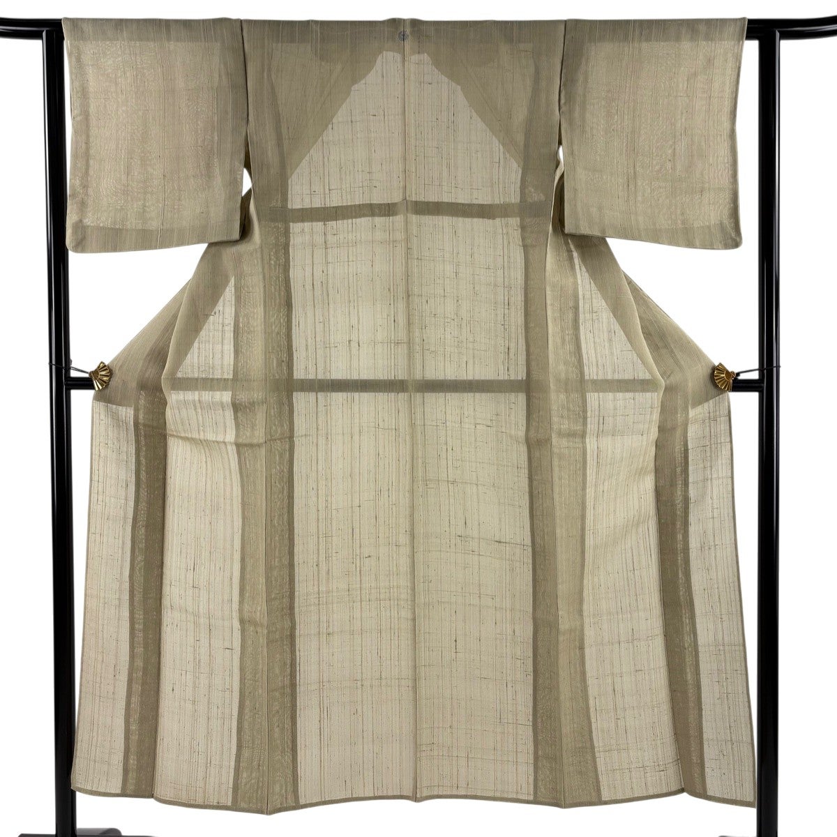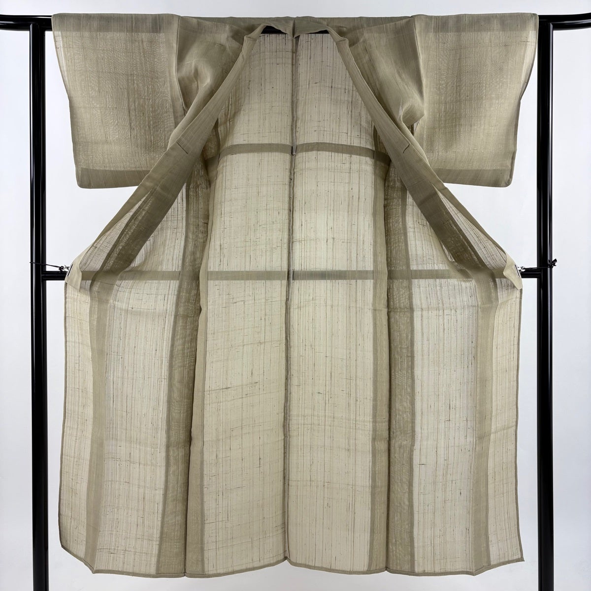30%OFF 【美品】 紬 身丈150cm 裄丈62cm S 薄物 夏紬 バチ衿 灰緑 正絹 秀品 一つ紋 K30