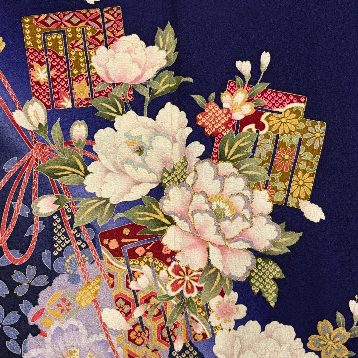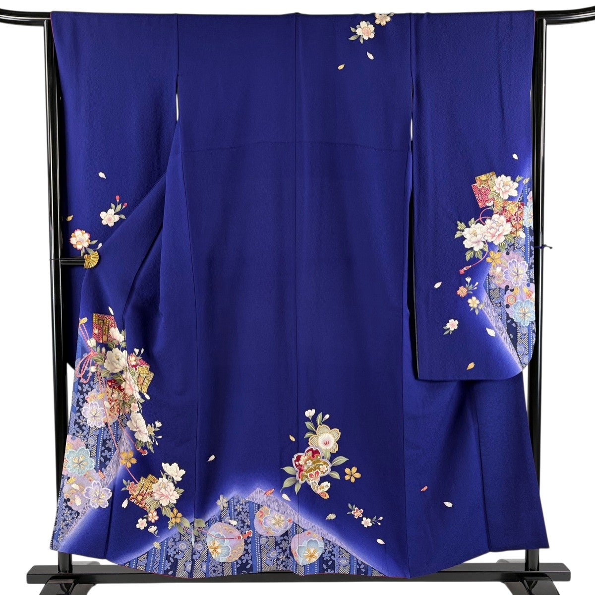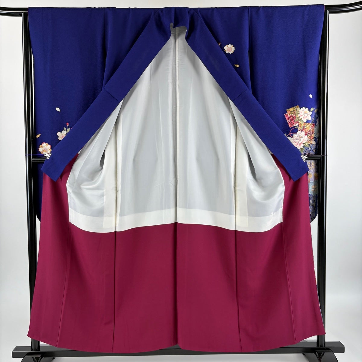 30%OFF 振袖 身丈155cm 裄丈64cm M 袷 やまと 源氏香 牡丹 箔 ぼかし 青紫 正絹 秀品 K30
