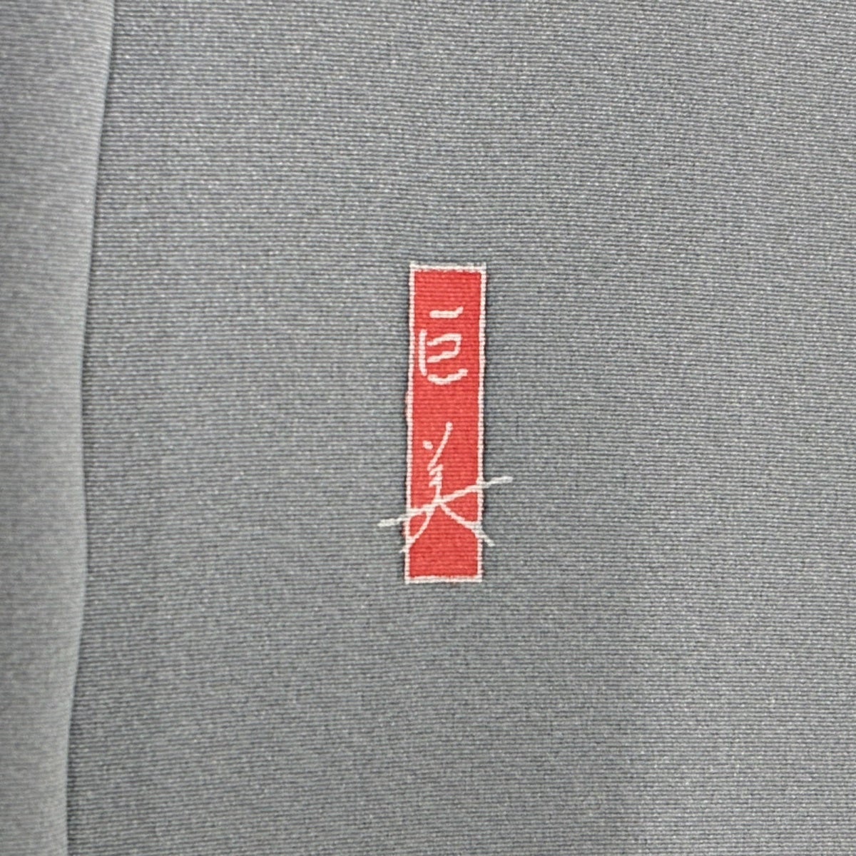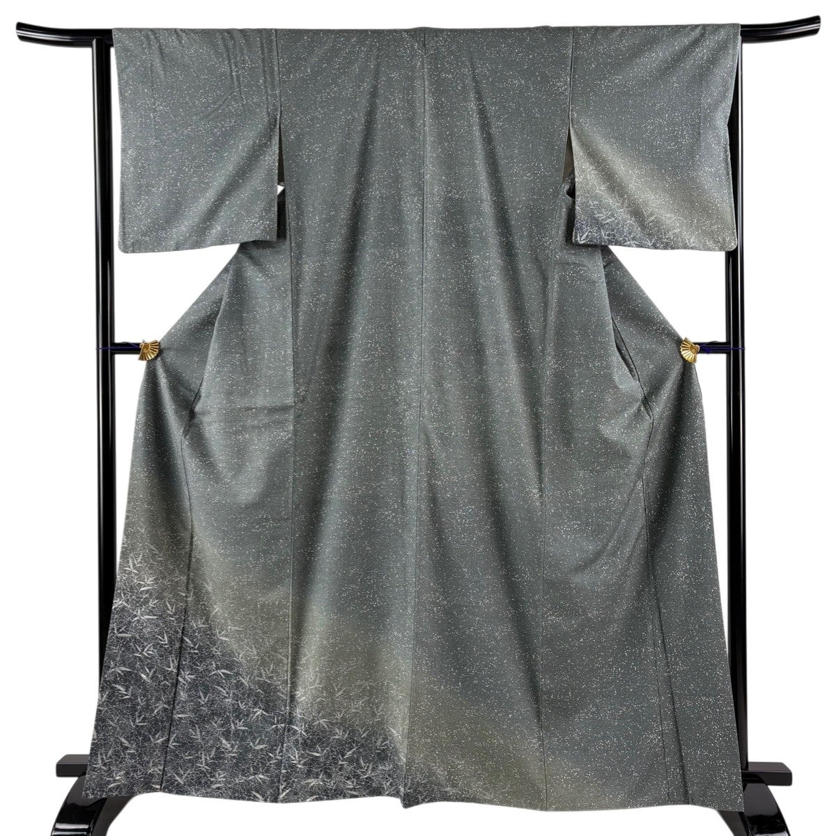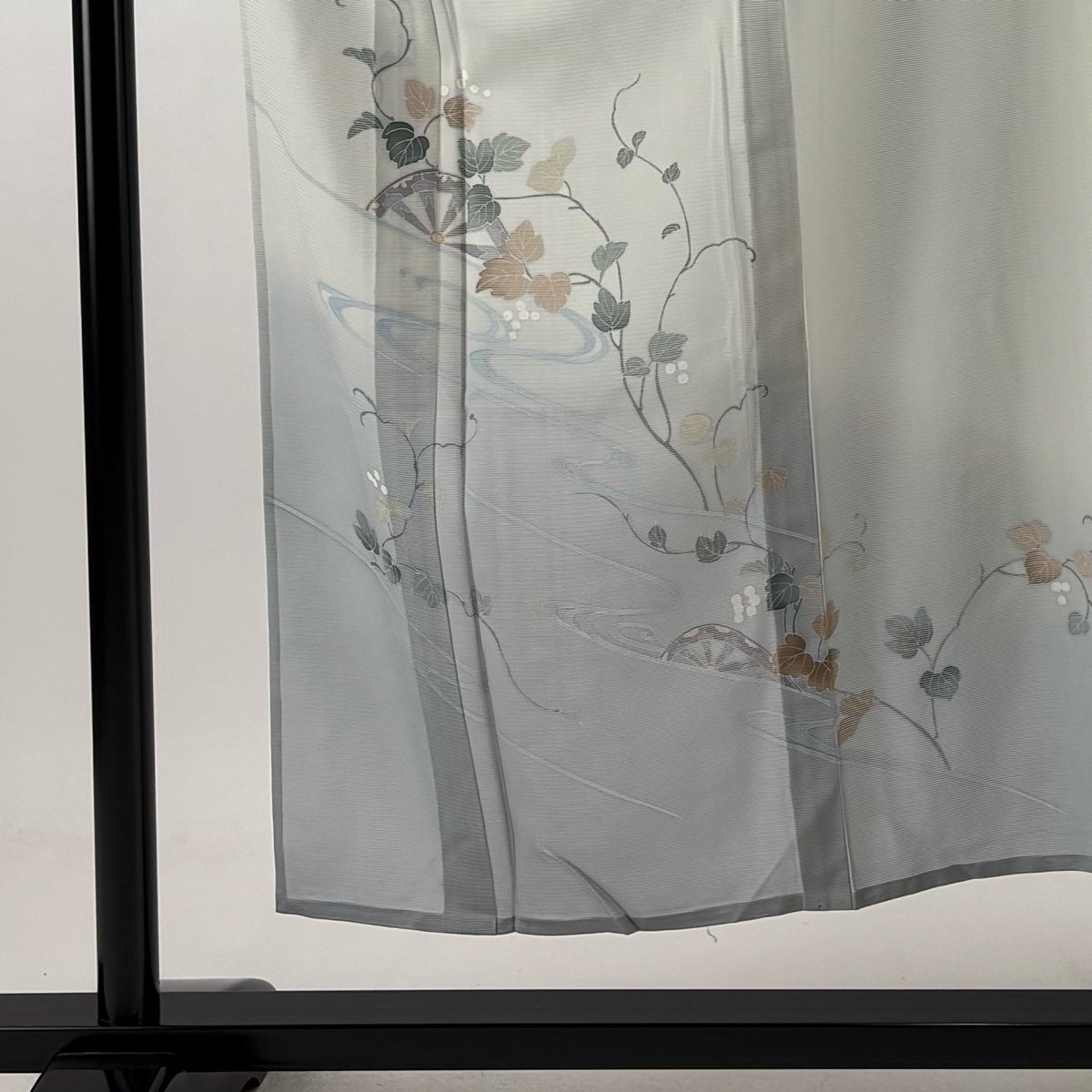 30%OFF 訪問着 身丈155.5cm 裄丈63.5cm S 袷 落款あり 扇 草花 ぼかし 灰色 正絹 秀品 K30