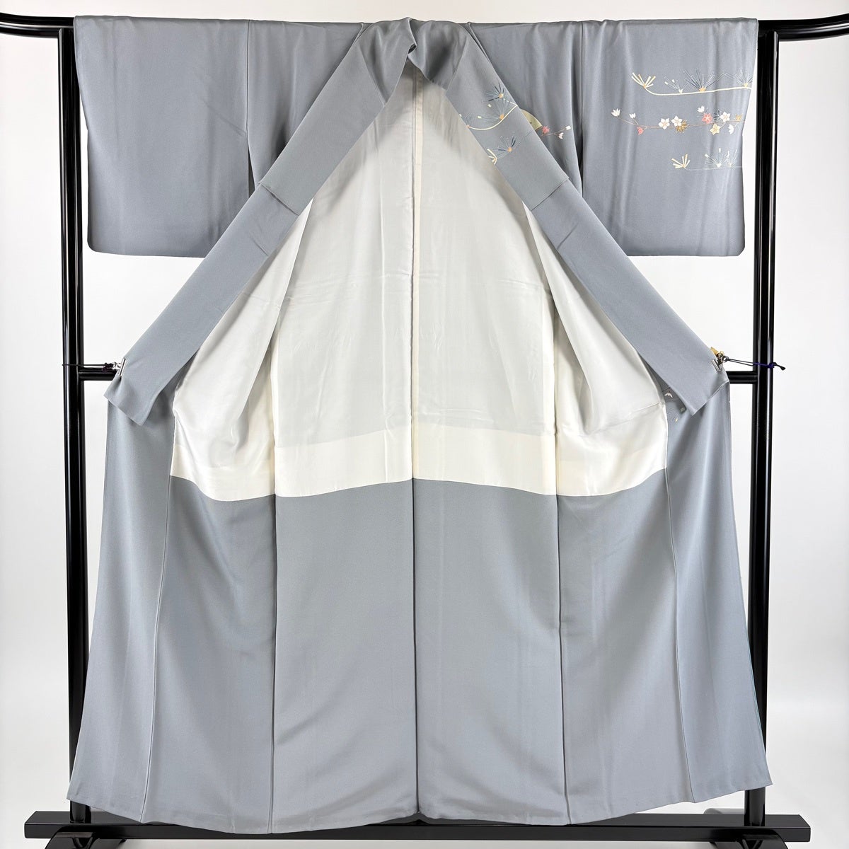 30%OFF 訪問着 身丈159.5cm 裄丈63cm S 袷 草花 青海波 金彩 ぼかし 灰色 正絹 秀品 K30
