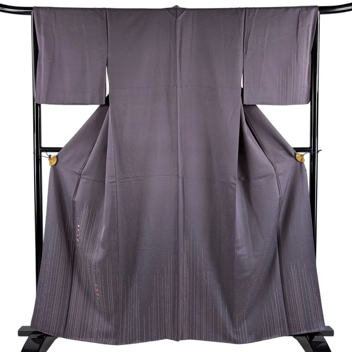 30%OFF 訪問着 身丈157cm 裄丈65.5cm M 袷 霞 若松 金糸 金彩 灰紫 正絹 秀品 一つ紋 K30
