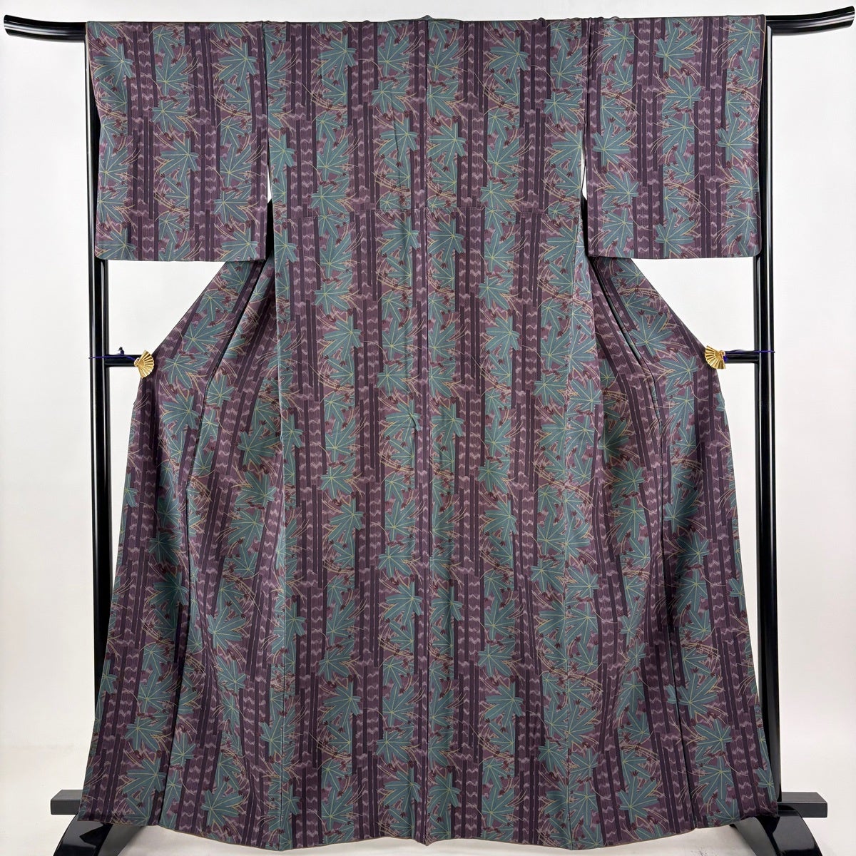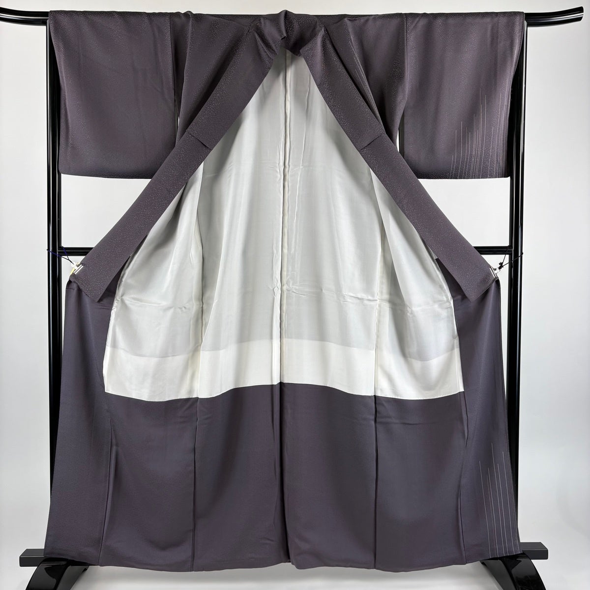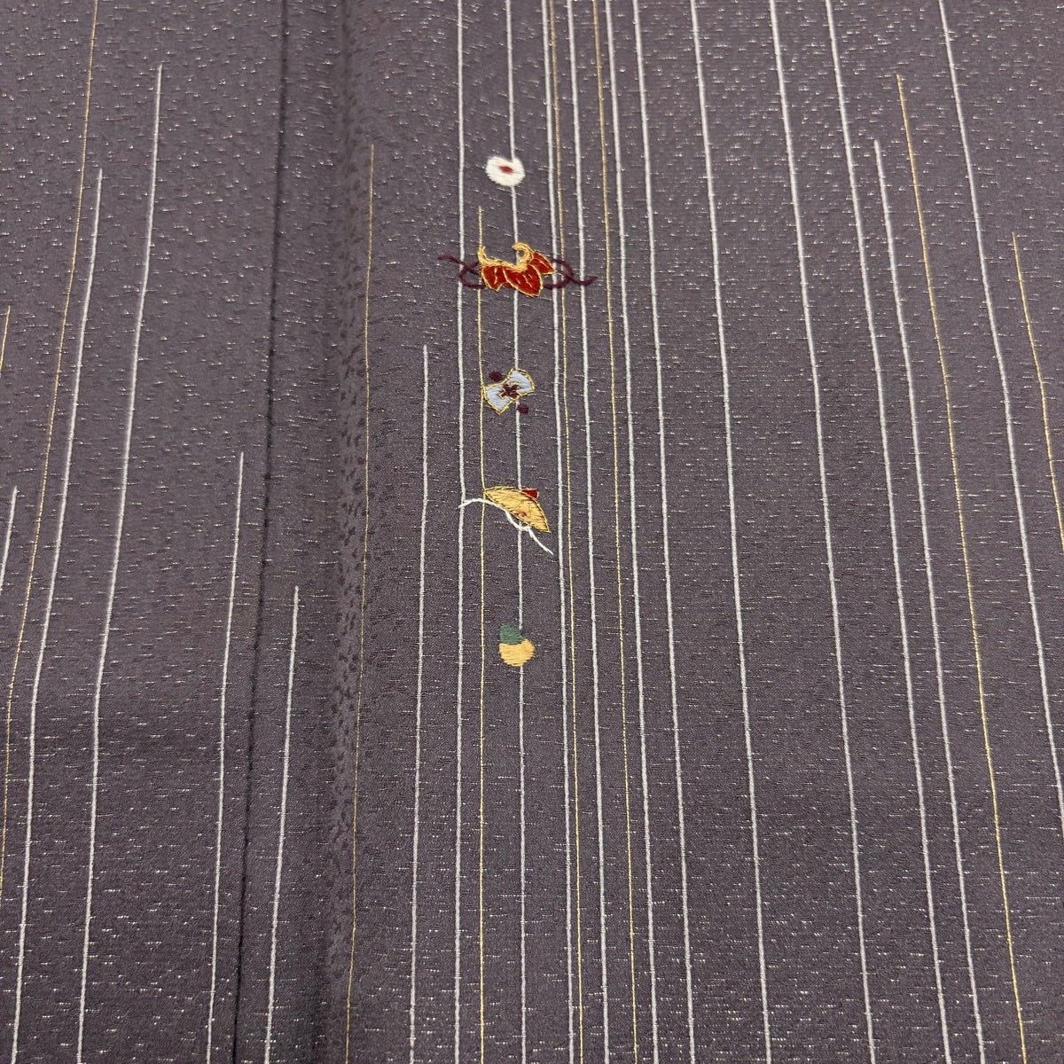 30%OFF 付下げ 身丈160.5cm 裄丈66cm M 袷 縞 宝尽くし 銀通し 刺繍 濃紫 正絹 秀品 K30