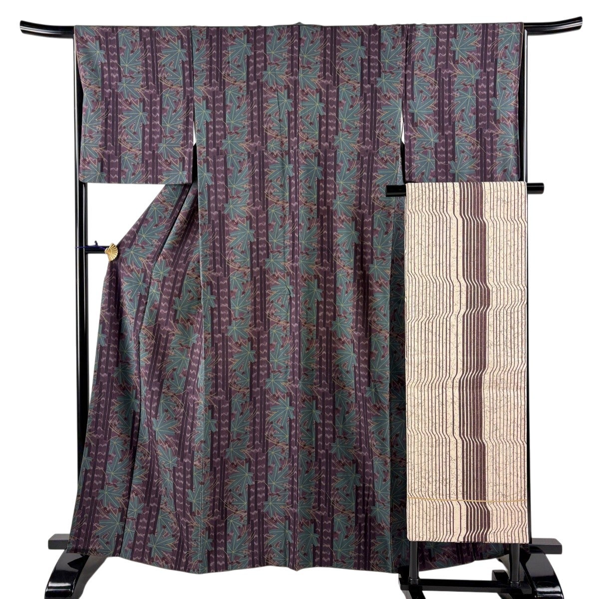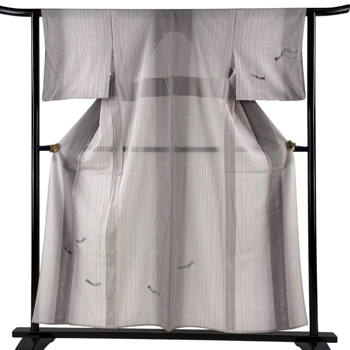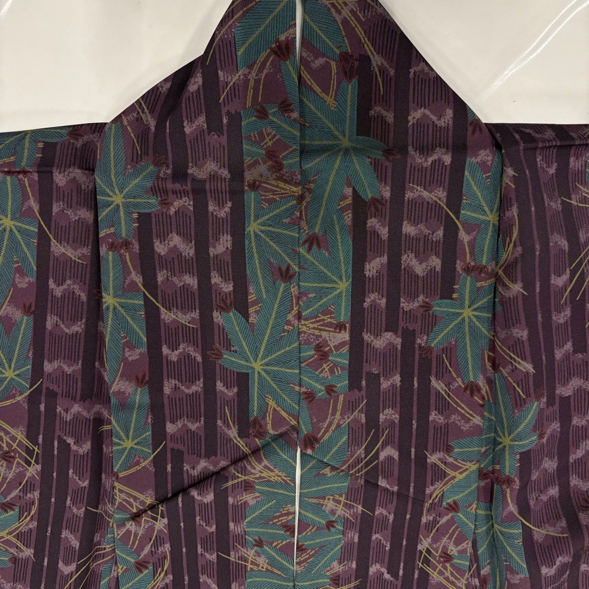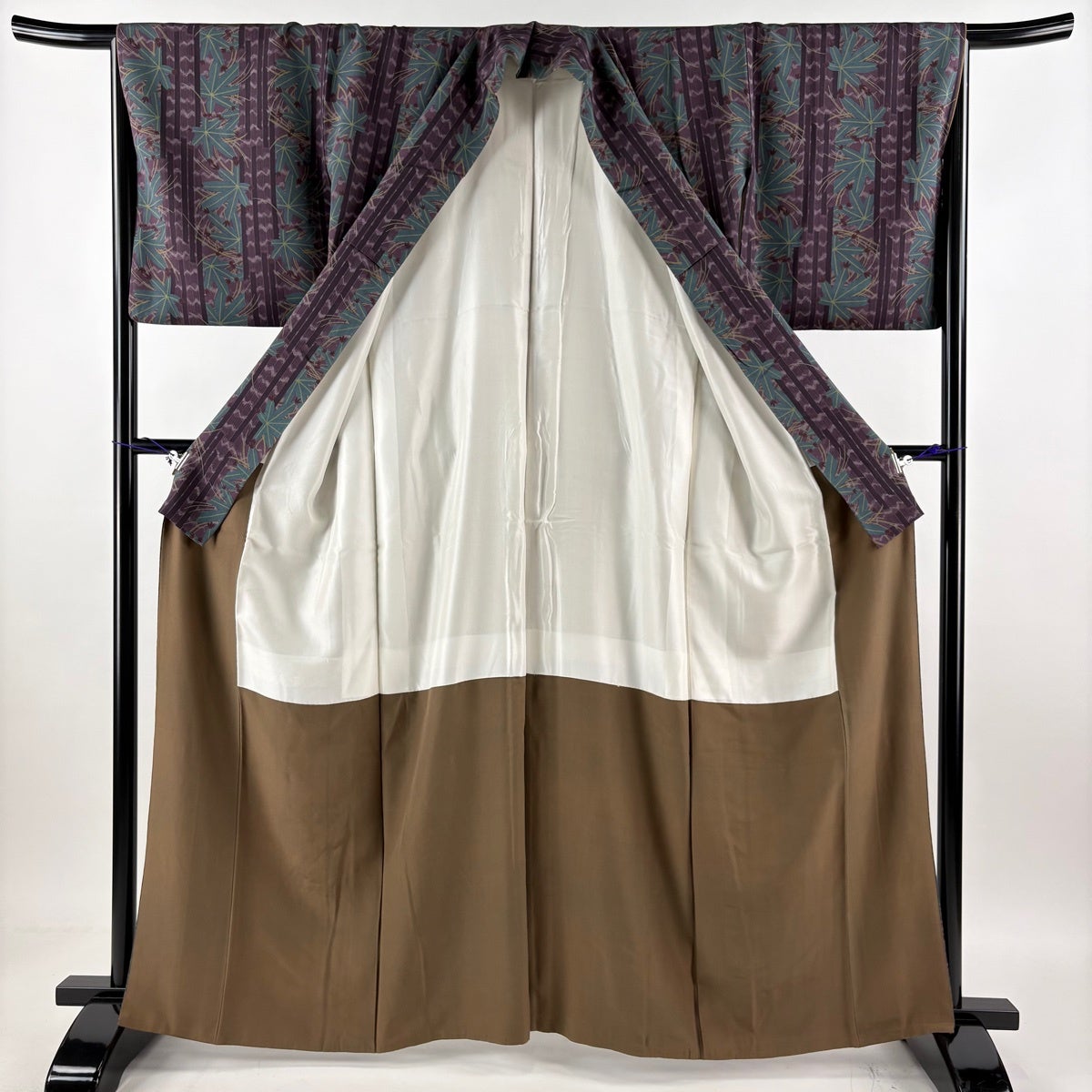 30%OFF 付下げ 身丈160.5cm 裄丈66cm M 袷 縞 宝尽くし 銀通し 刺繍 濃紫 正絹 秀品 K30