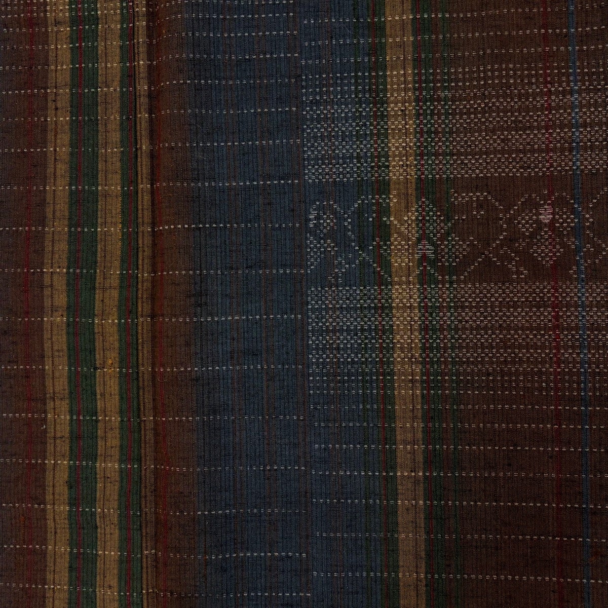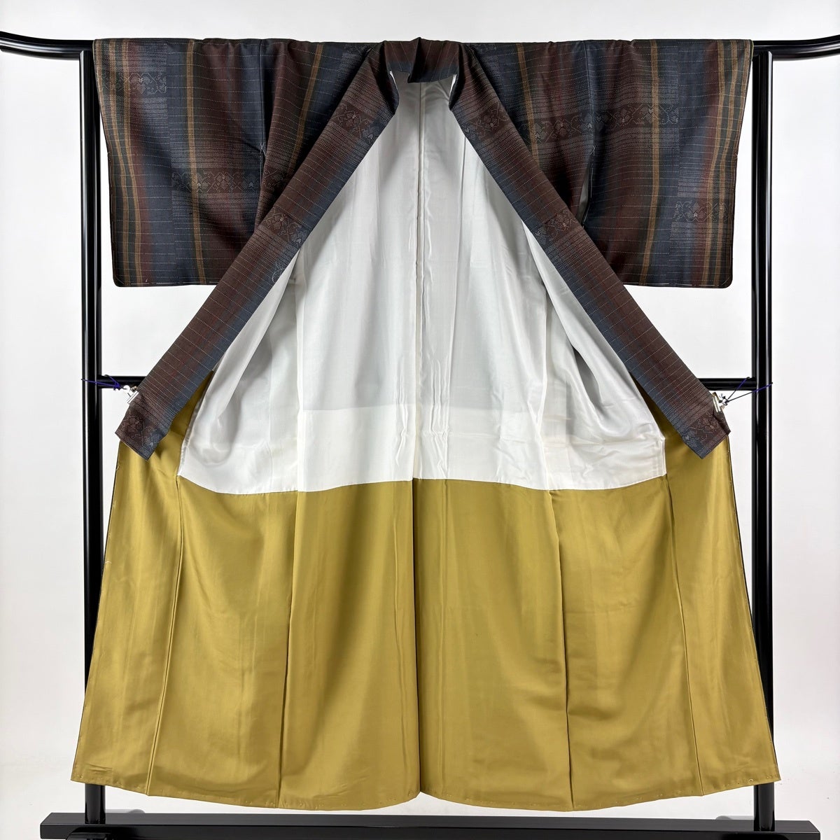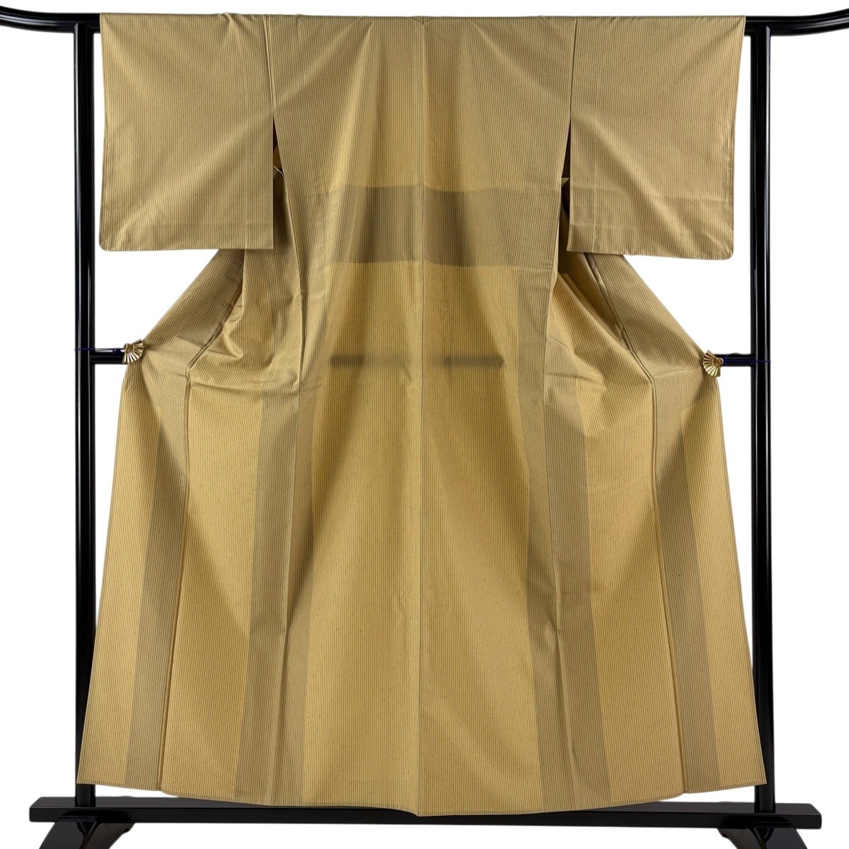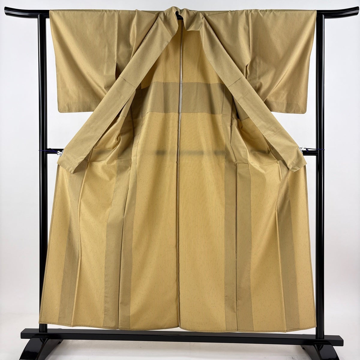 30%OFF 【美品】 紬 身丈156cm 裄丈62cm S 単衣 柿渋紬 証紙あり 縞 黄土色 正絹 秀品 K30