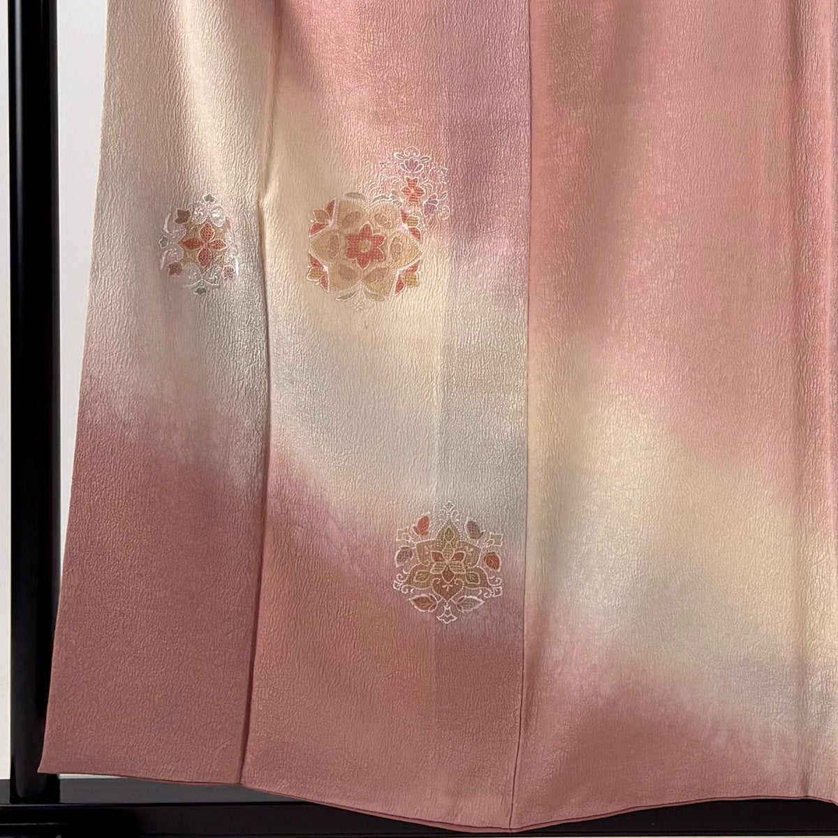 30%OFF 訪問着 身丈153.5cm 裄丈62.5cm S 袷 間垣 菊 金彩 ぼかし ピンク 正絹 秀品 K30
