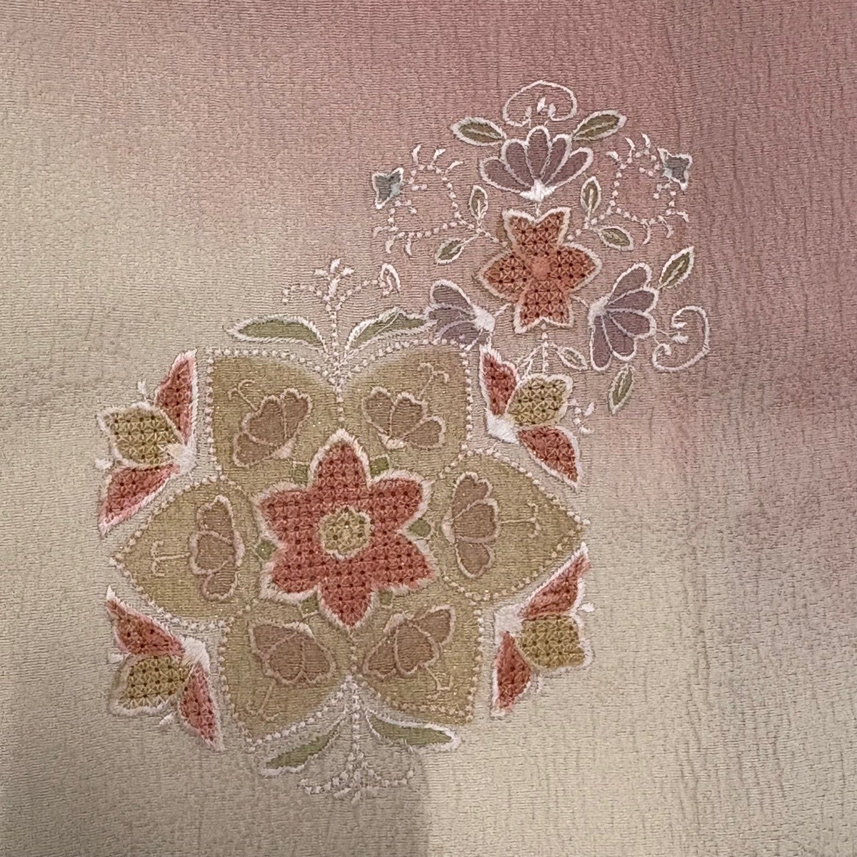 30%OFF 付下げ 身丈156.5cm 裄丈63cm S 袷 華文 草花 刺繍 金彩 ピンク 正絹 秀品 K30