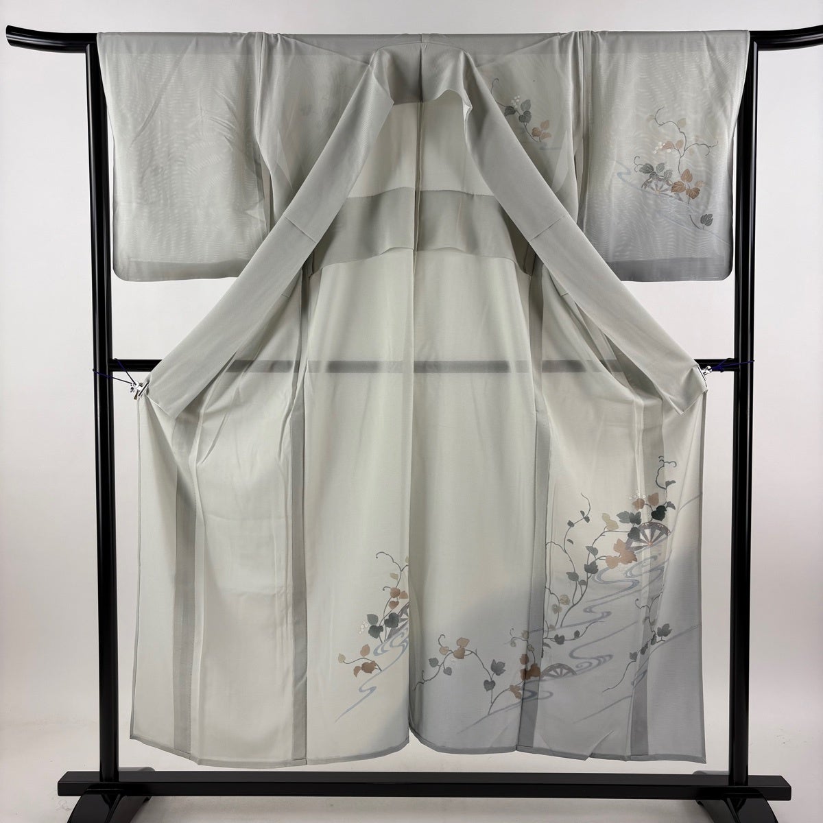 30%OFF 付下げ 身丈153cm 裄丈64.5cm M 薄物 絽 片輪車 葡萄 ぼかし 灰緑 正絹 秀品 K30