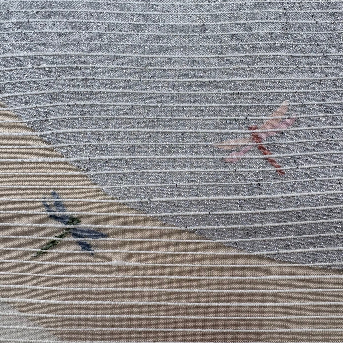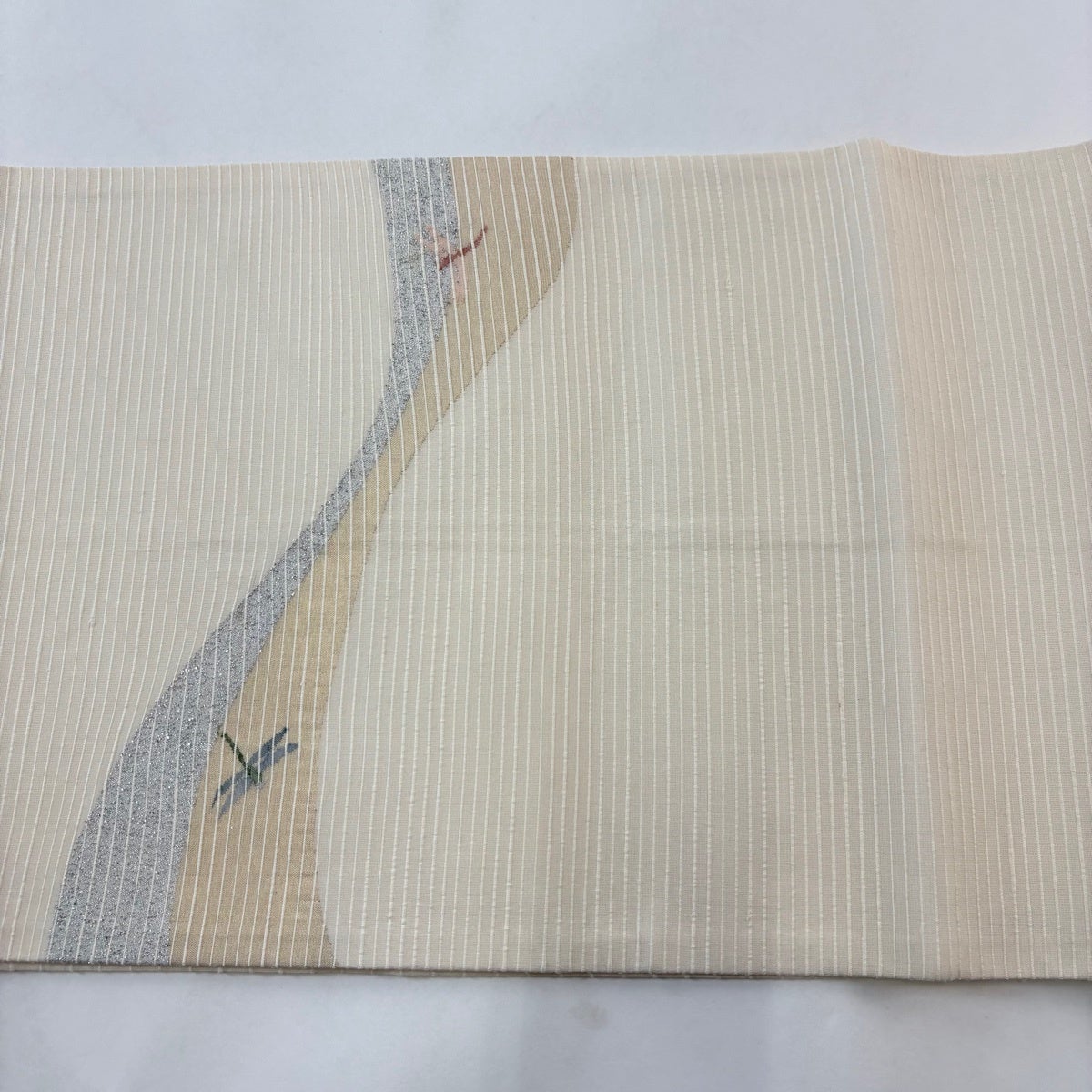 30%OFF 【美品】 袋帯 秀品 落款あり やまと こむさでもーど 唐草 段縞 ベージュ 六通 正絹 K30