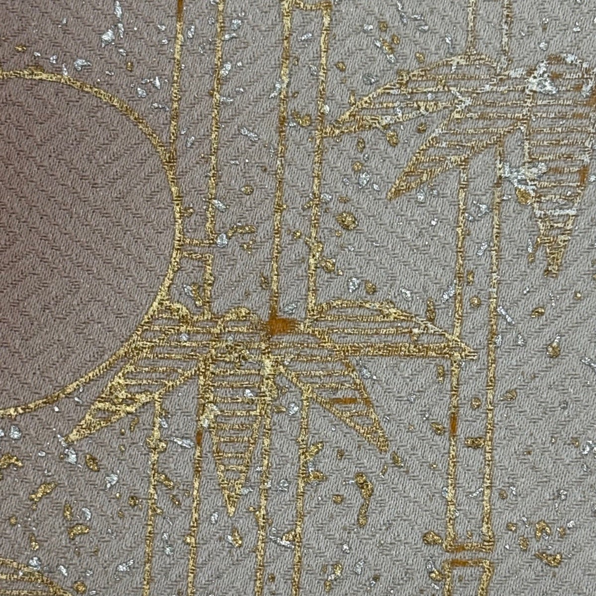 30%OFF 【美品】 袋帯 秀品 落款あり 関西仕立て 花丸文 有職文様 金彩 箔 灰紫 お太鼓柄 正絹 K30