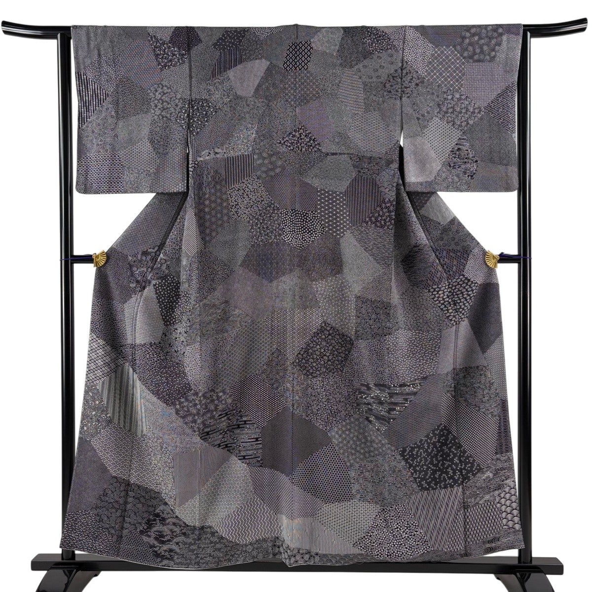 30%OFF 江戸小紋 身丈158cm 裄丈63.5cm S 袷 落款あり 角通し 黒灰 正絹 秀品 一つ紋 K30