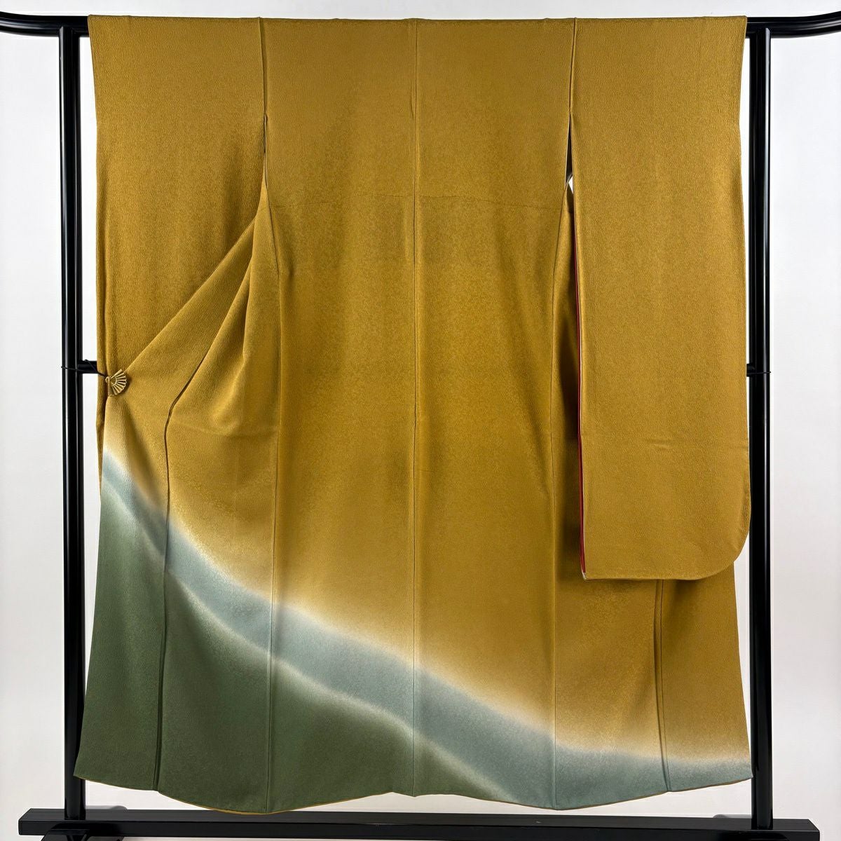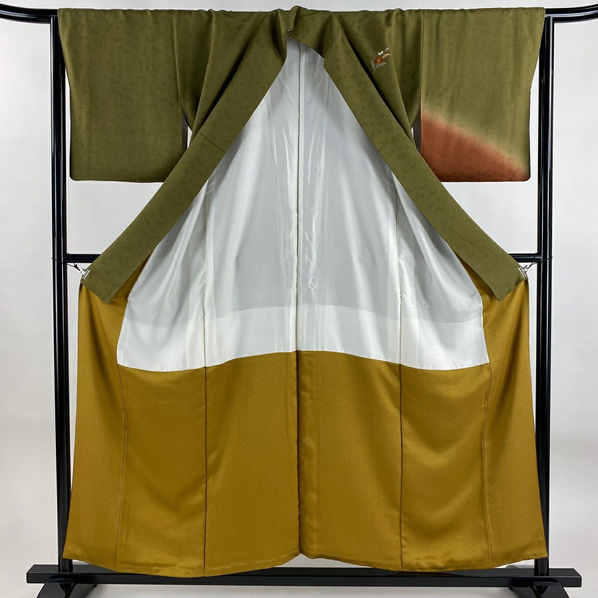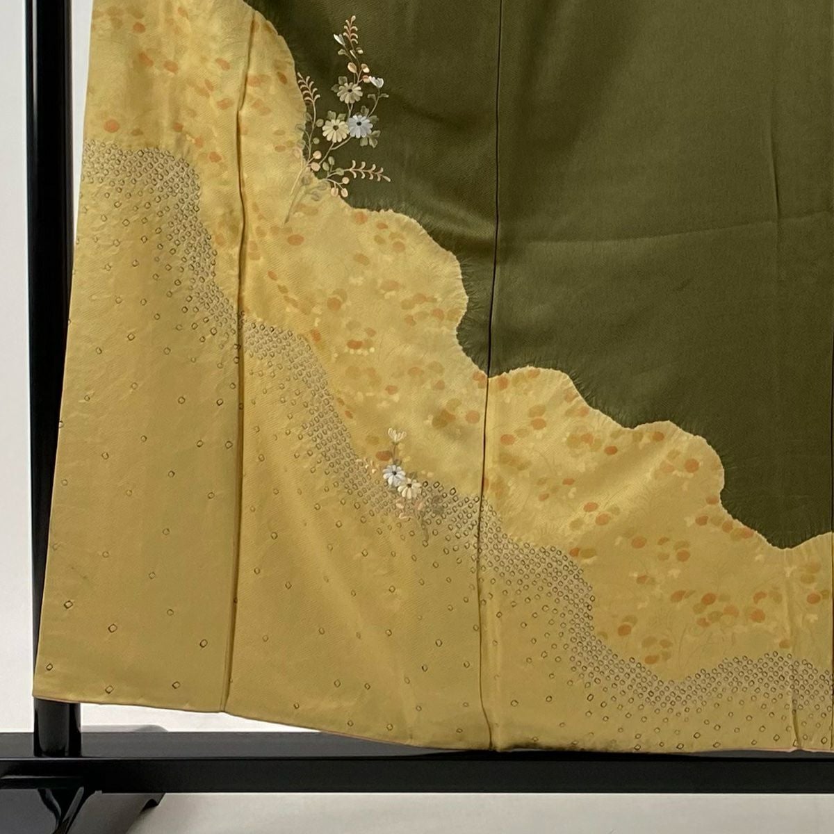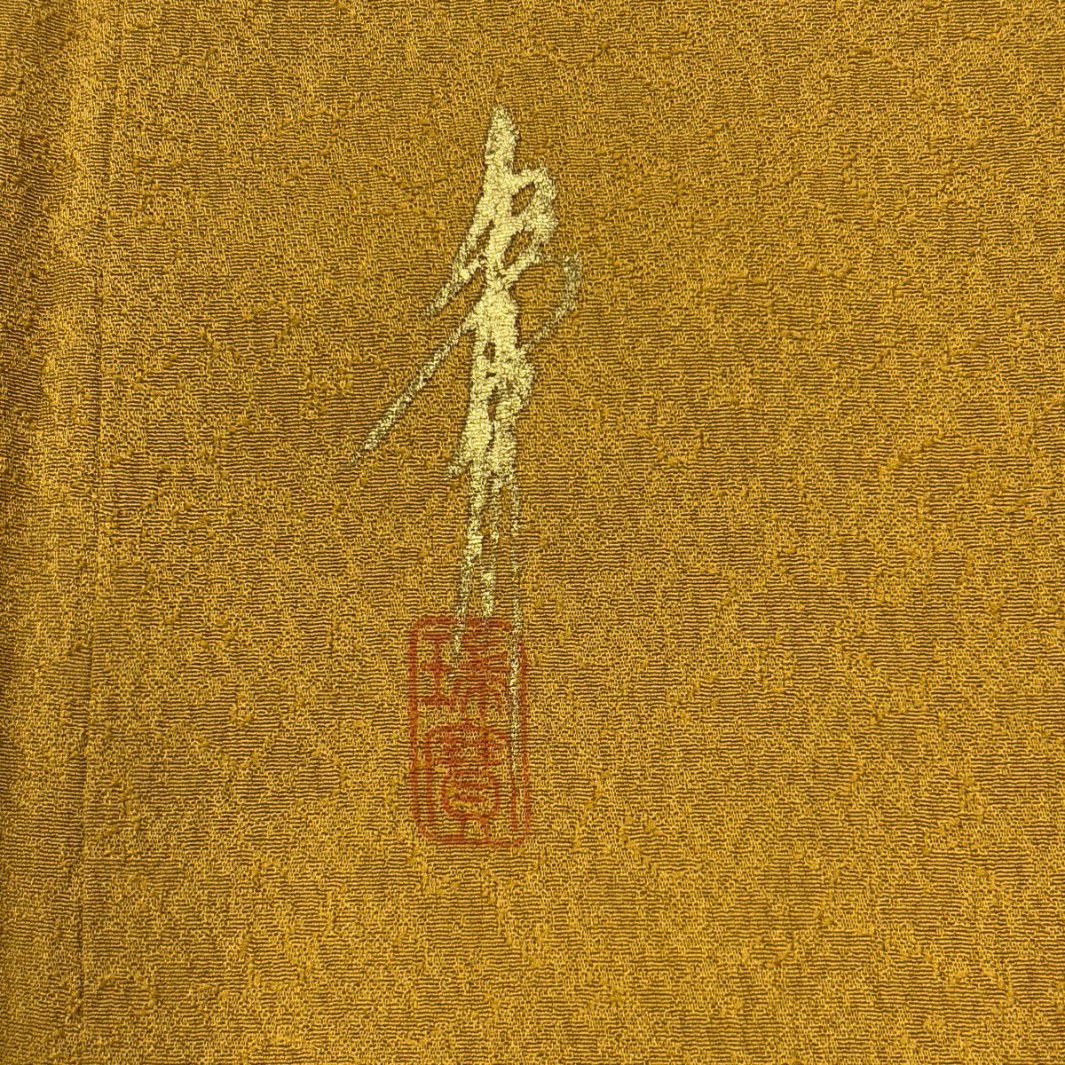 【美品】 振袖 身丈152cm 裄丈62.5cm S 袷 落款あり 地紋 裾ぼかし 山吹茶色 正絹 秀品