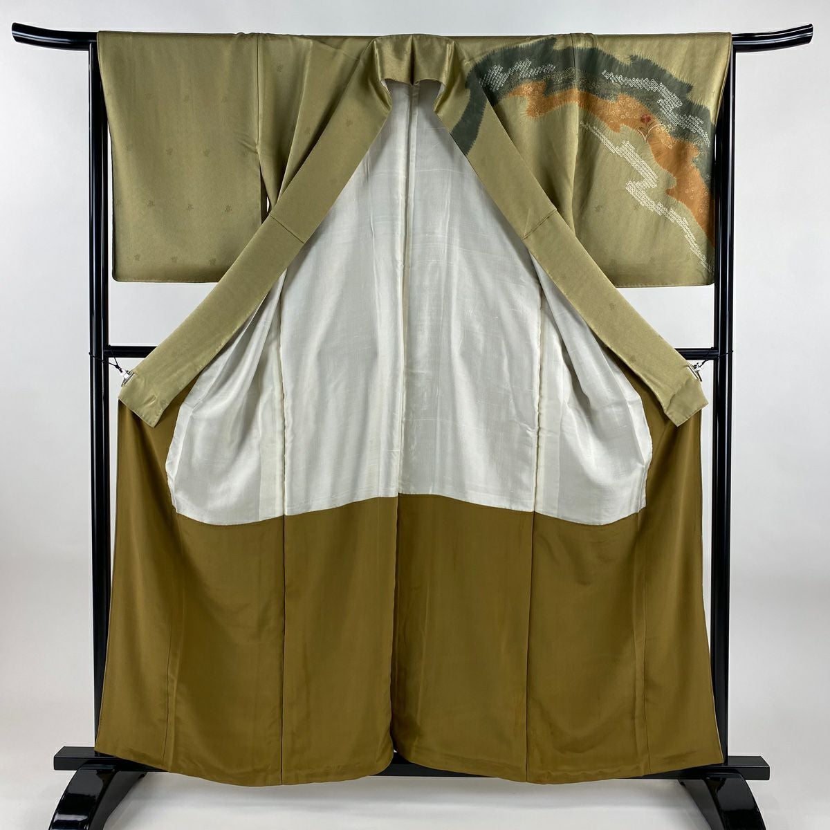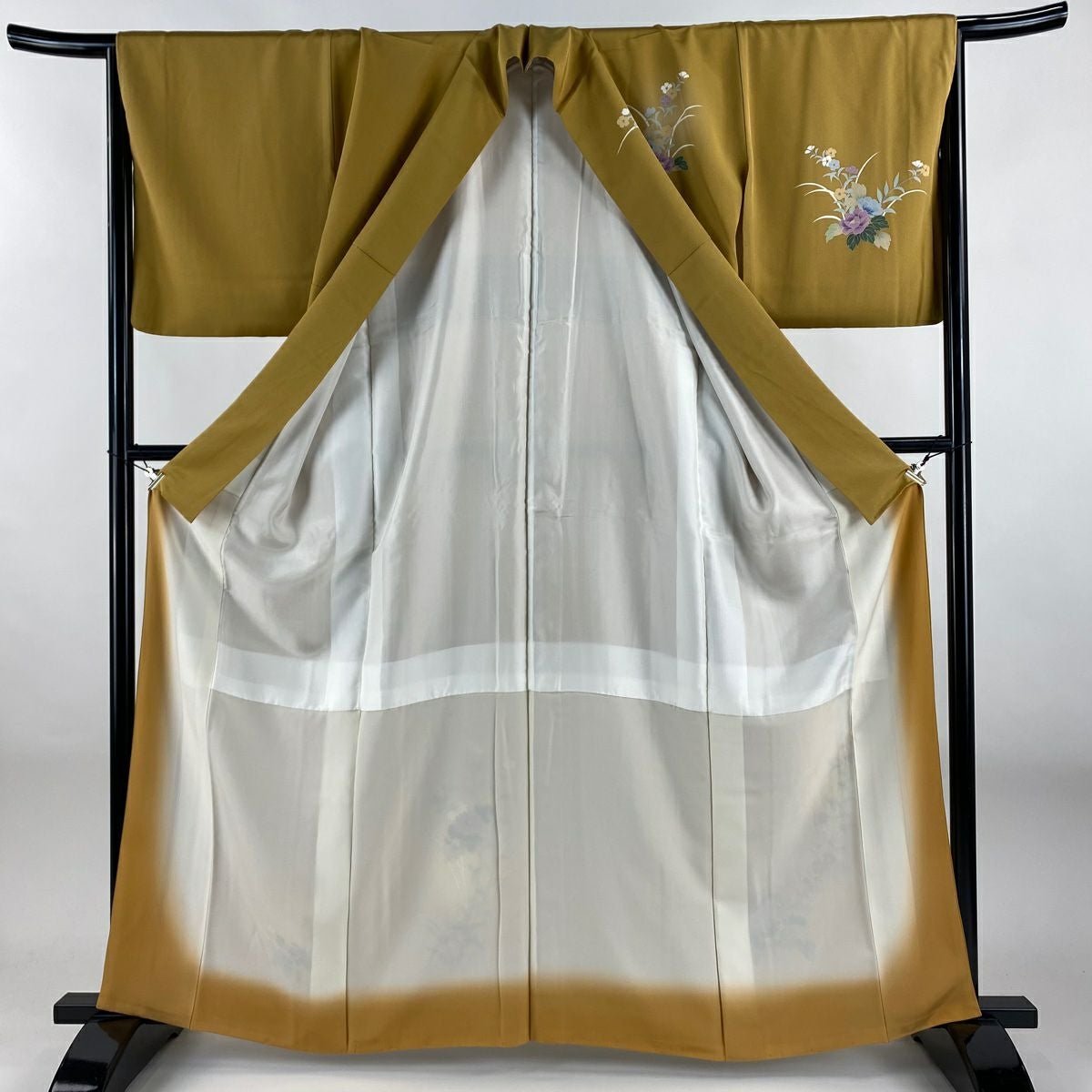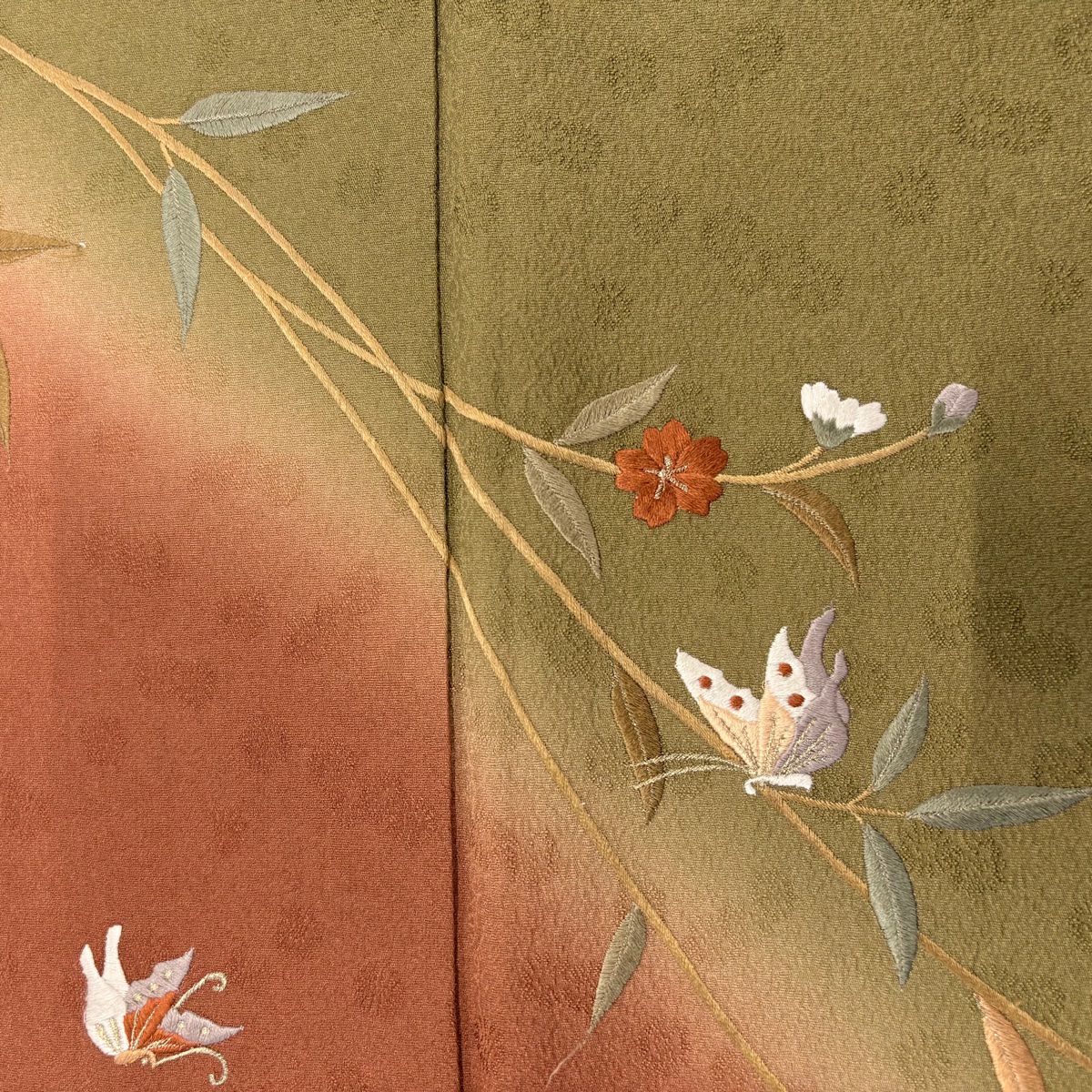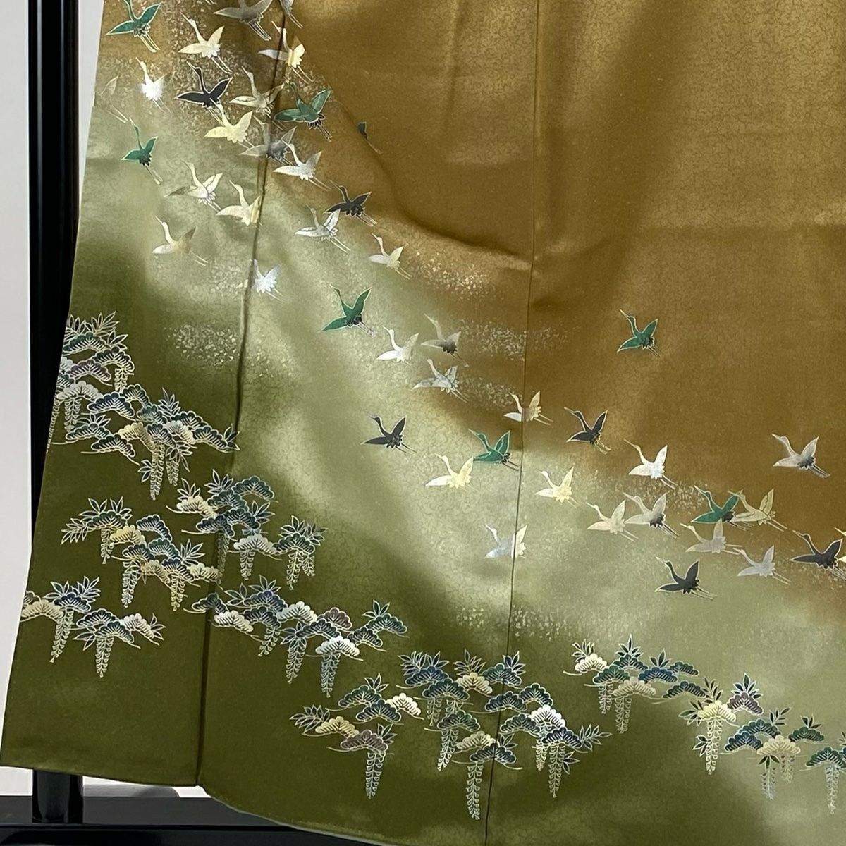 【美品】 振袖 身丈152cm 裄丈62.5cm S 袷 落款あり 地紋 裾ぼかし 山吹茶色 正絹 秀品