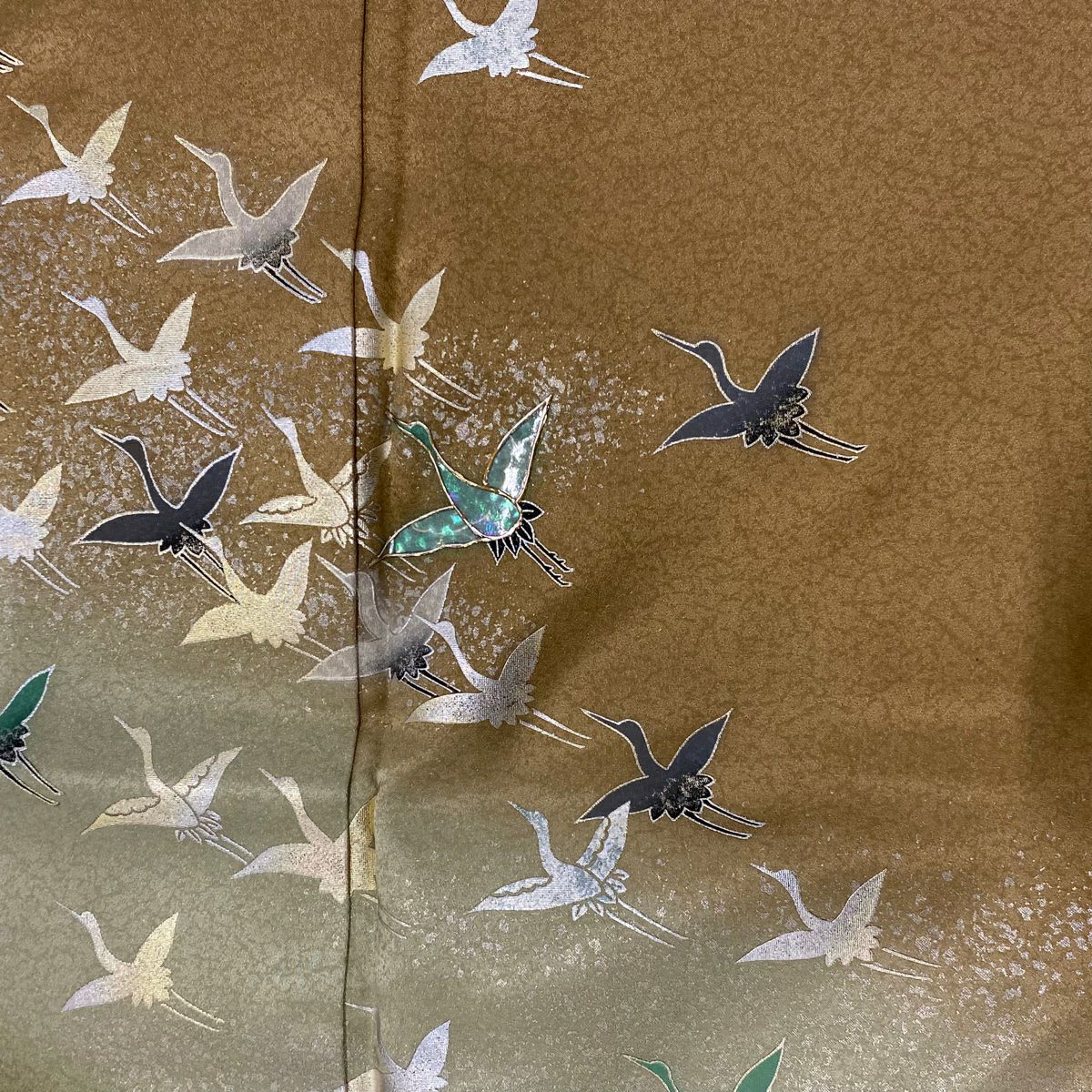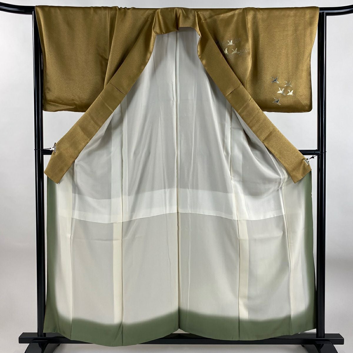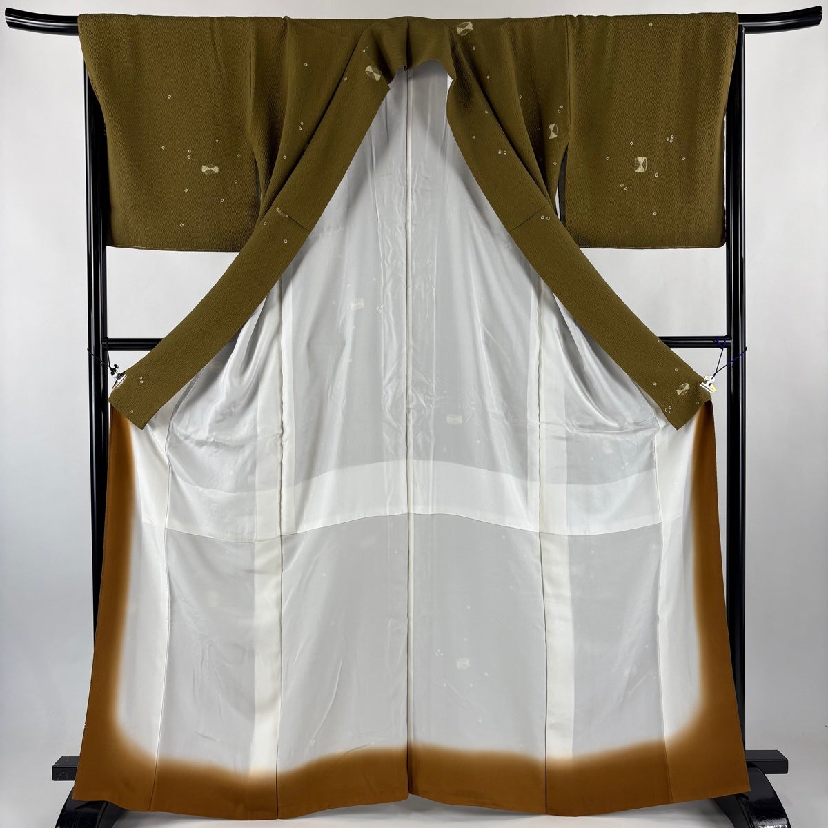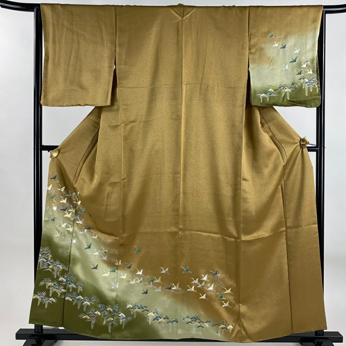 【美品】 振袖 身丈152cm 裄丈62.5cm S 袷 落款あり 地紋 裾ぼかし 山吹茶色 正絹 秀品