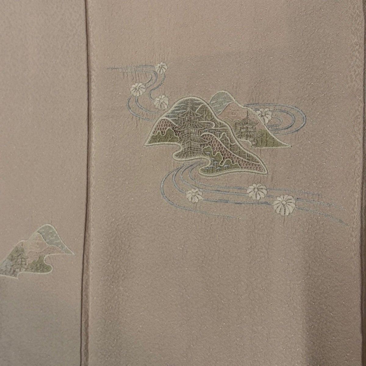 【美品】 付下げ 身丈158cm 裄丈64.5cm M 袷 建物 流水 刺繍 ぼかし 薄小豆 正絹 秀品