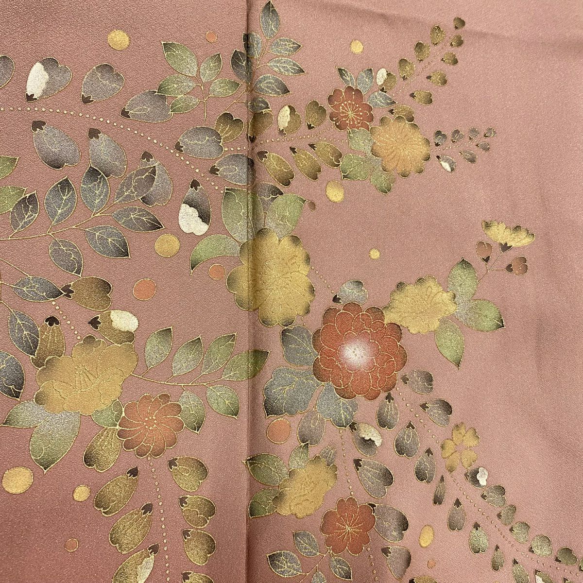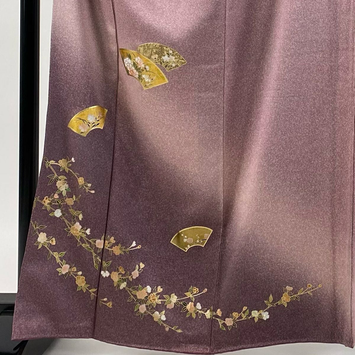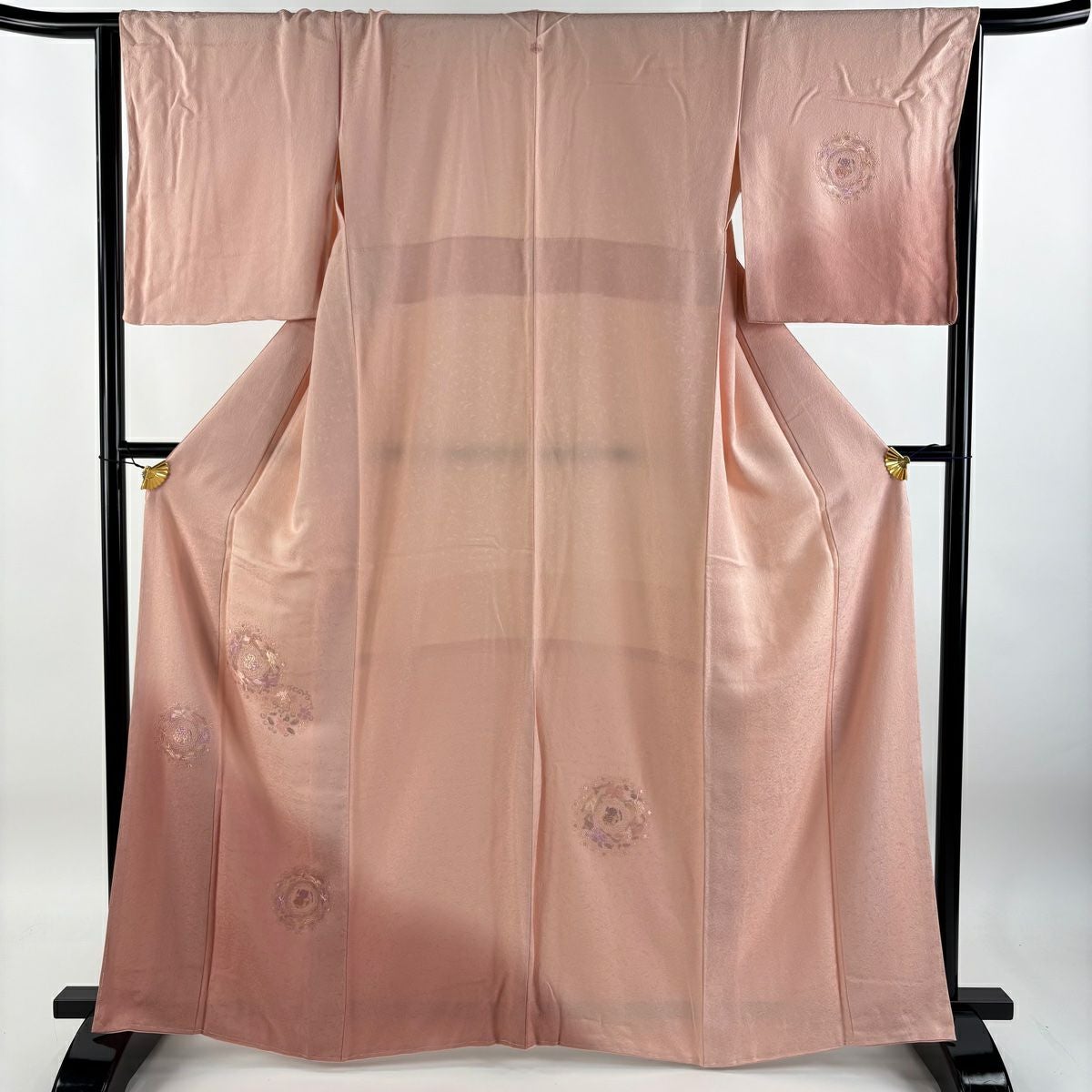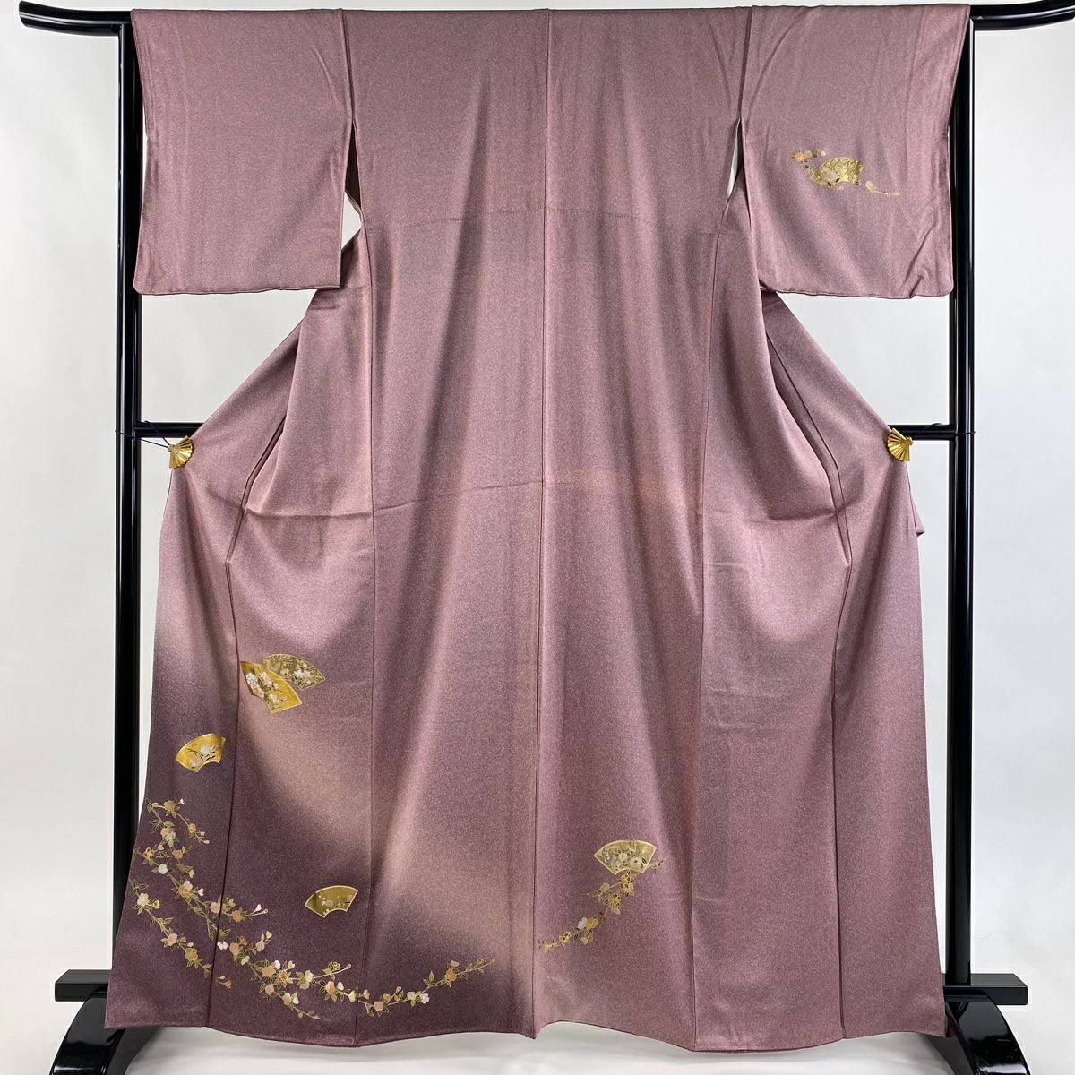 【在庫一掃】 訪問着 身丈166cm 裄丈65.5cm M 袷 扇面 草花 金彩 ピンク 正絹 秀品