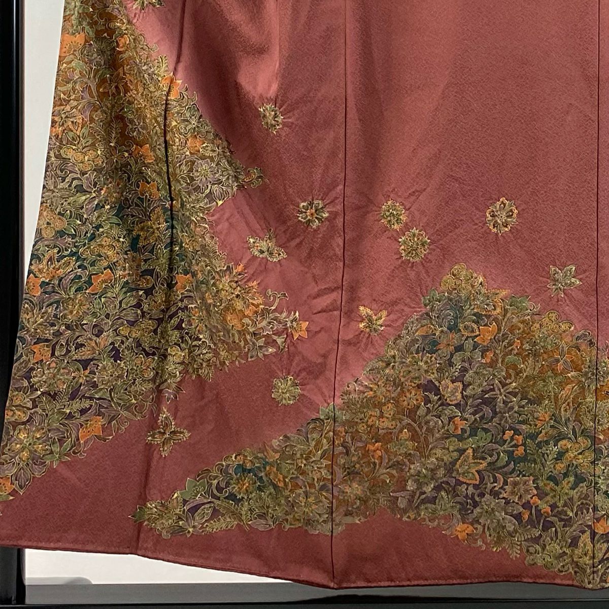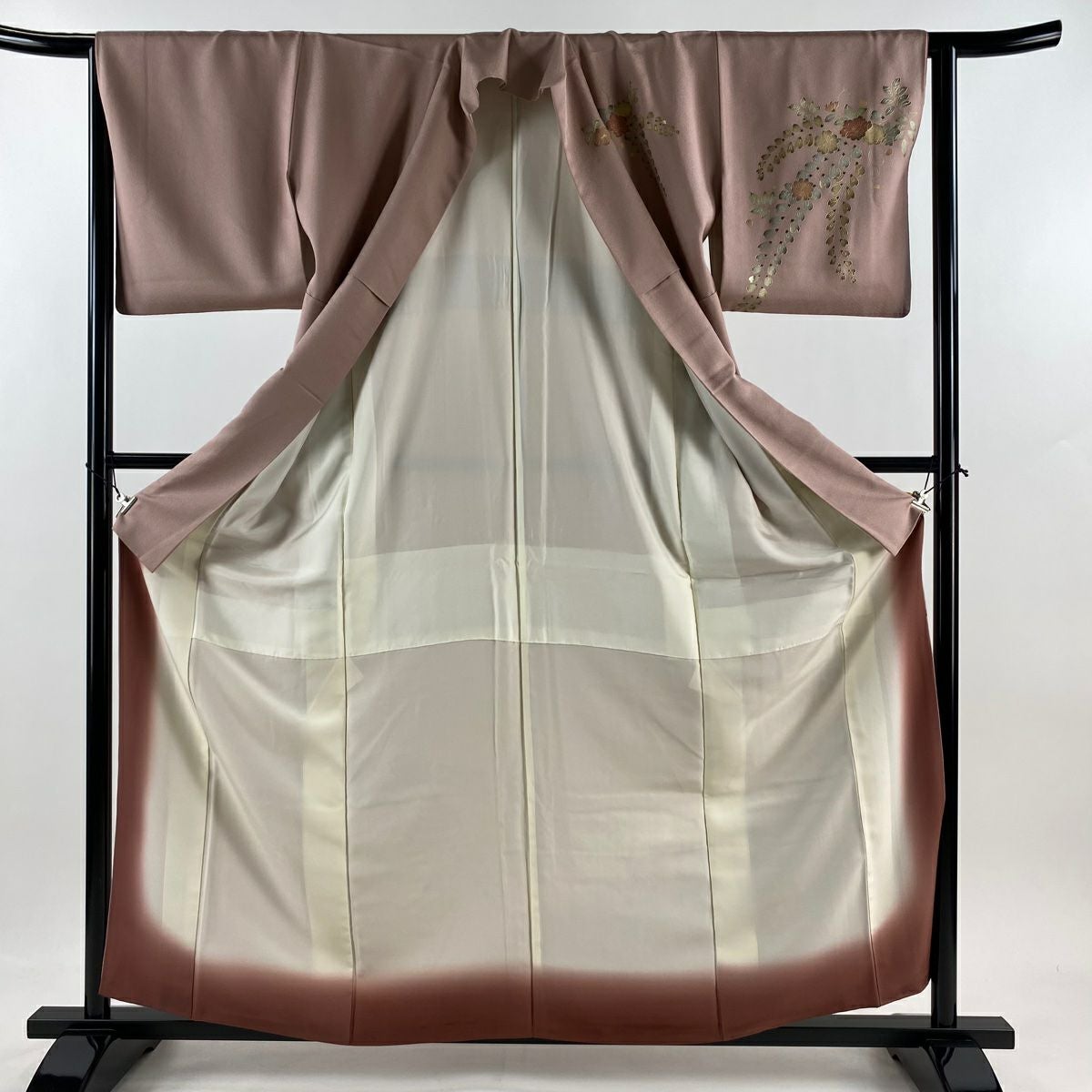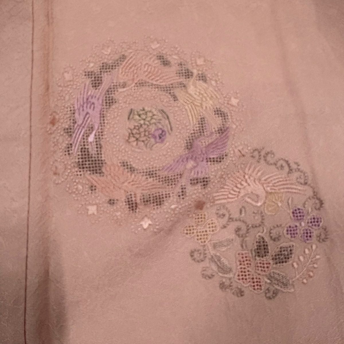 付下げ 身丈163.5cm 裄丈67cm M 袷 華文 鳥 刺繍 ぼかし ピンク 正絹 秀品 一つ紋
