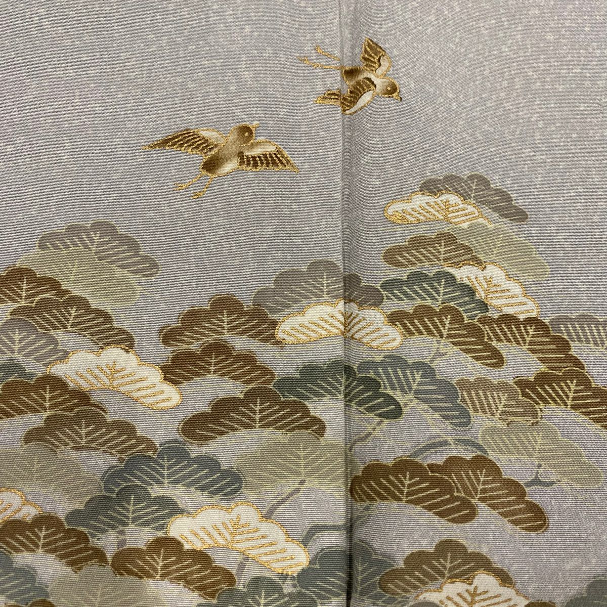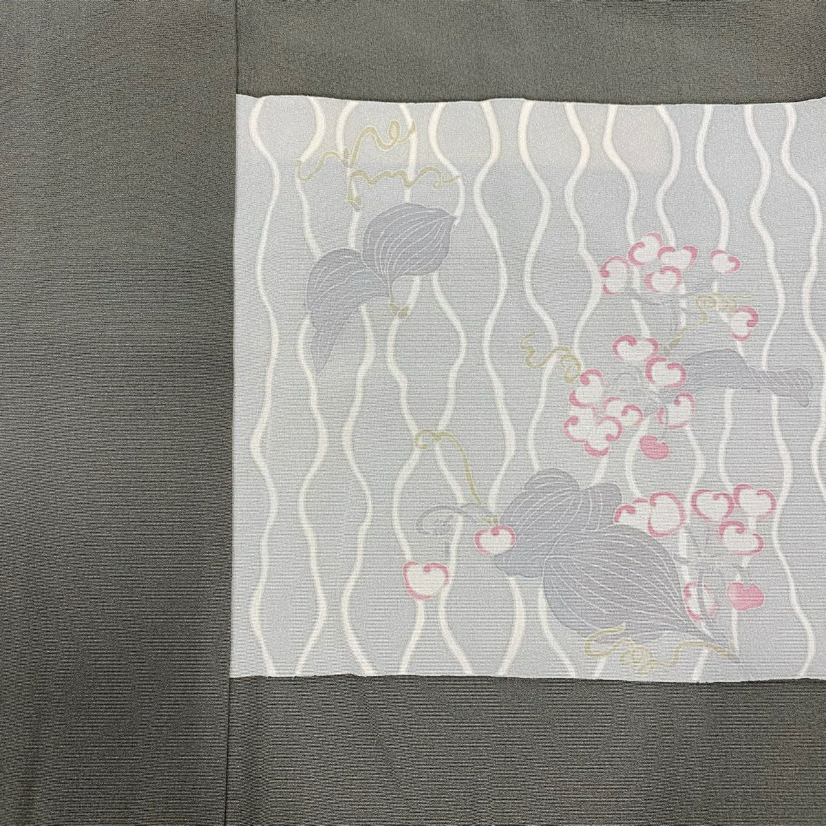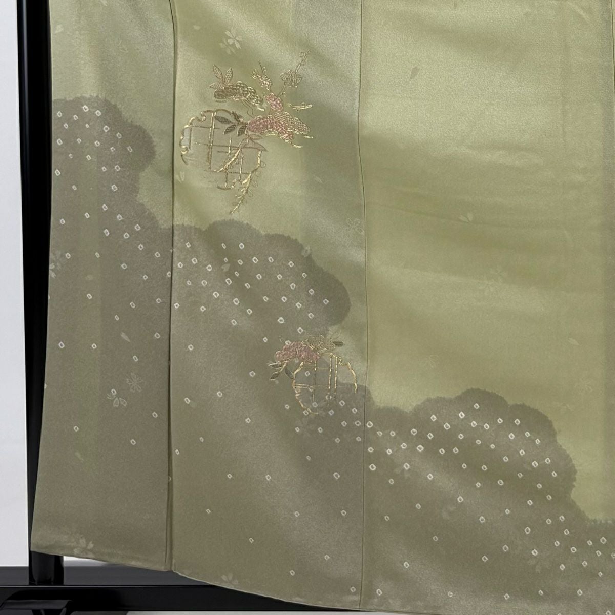 【在庫一掃】 付下げ 身丈164.5cm 裄丈67cm M 袷 松 花 金彩 灰緑 正絹 秀品 一つ紋