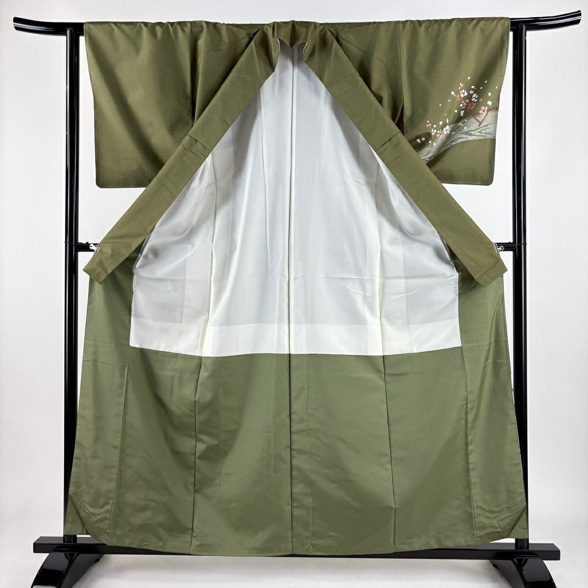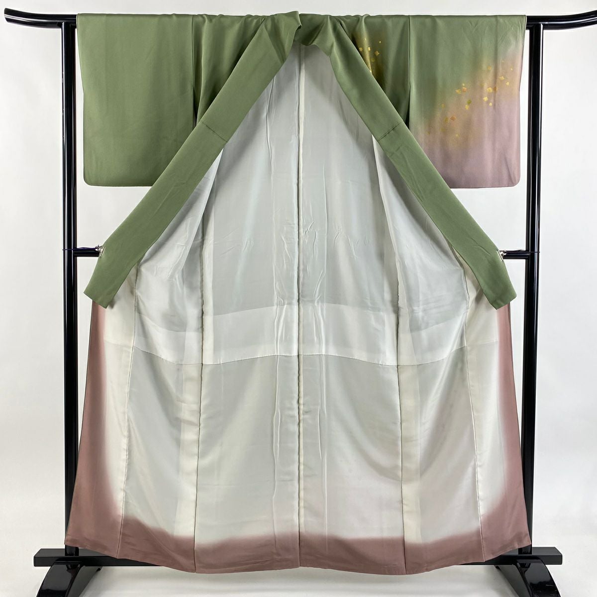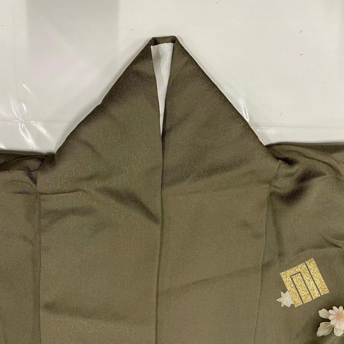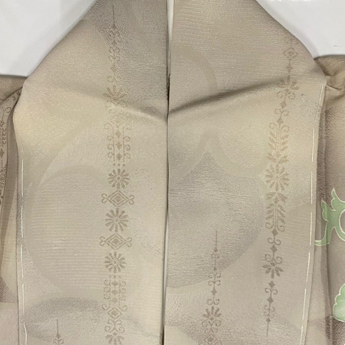 【在庫一掃】 付下げ 身丈164.5cm 裄丈67cm M 袷 松 花 金彩 灰緑 正絹 秀品 一つ紋