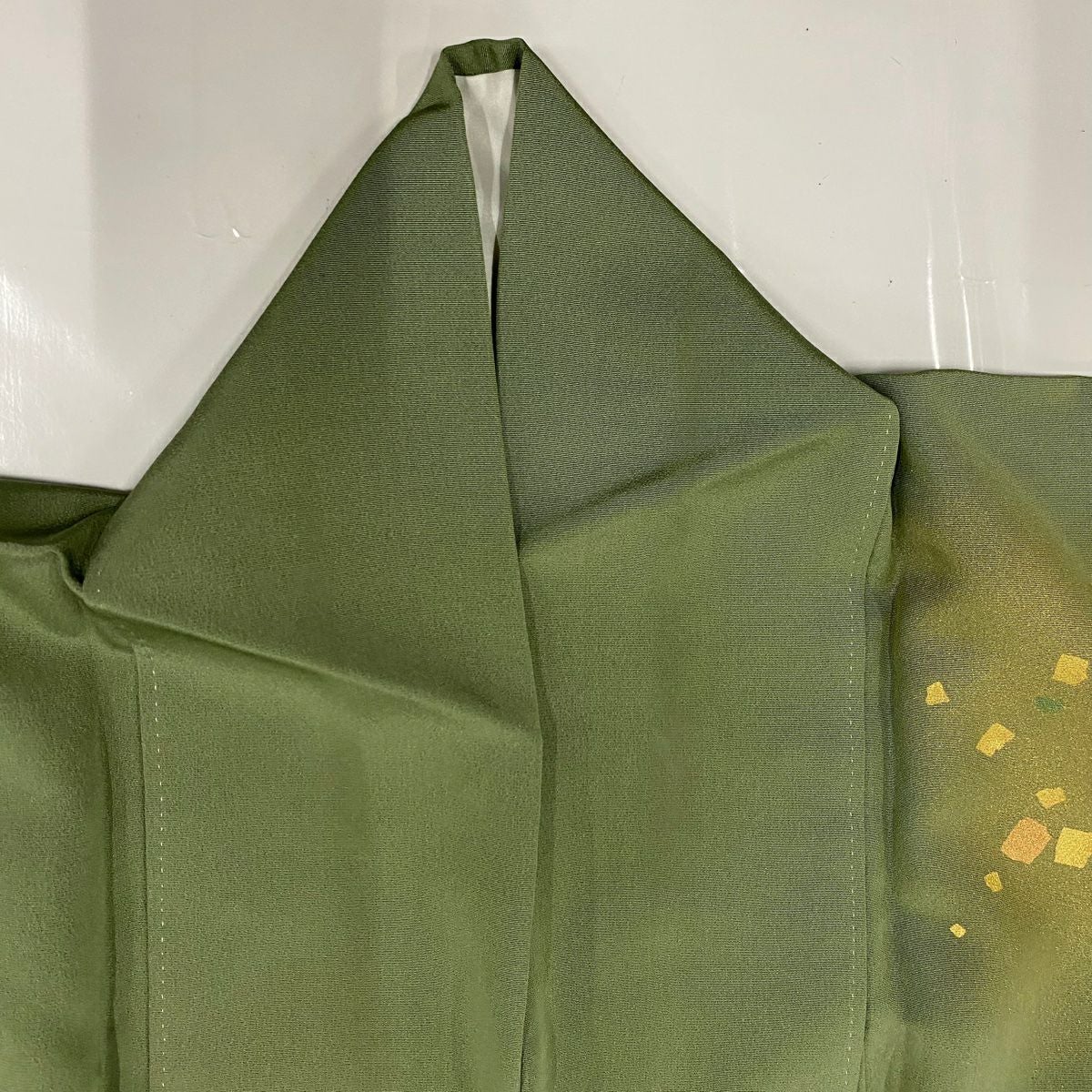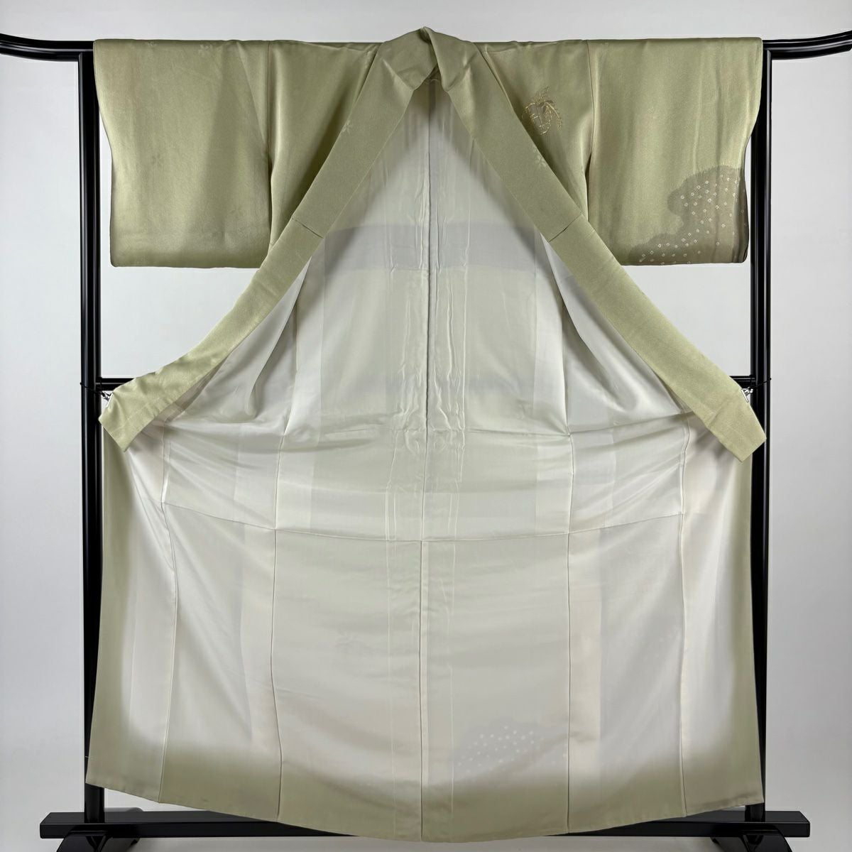 【在庫一掃】 付下げ 身丈161cm 裄丈63.5cm S 袷 雪輪 松 金銀糸 よもぎ色 正絹 秀品