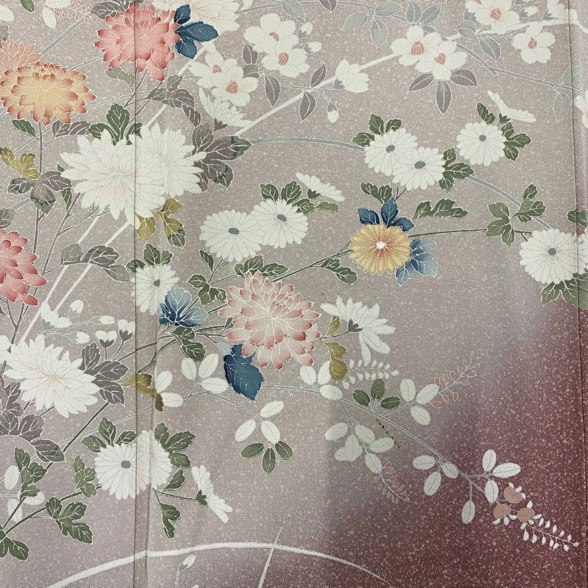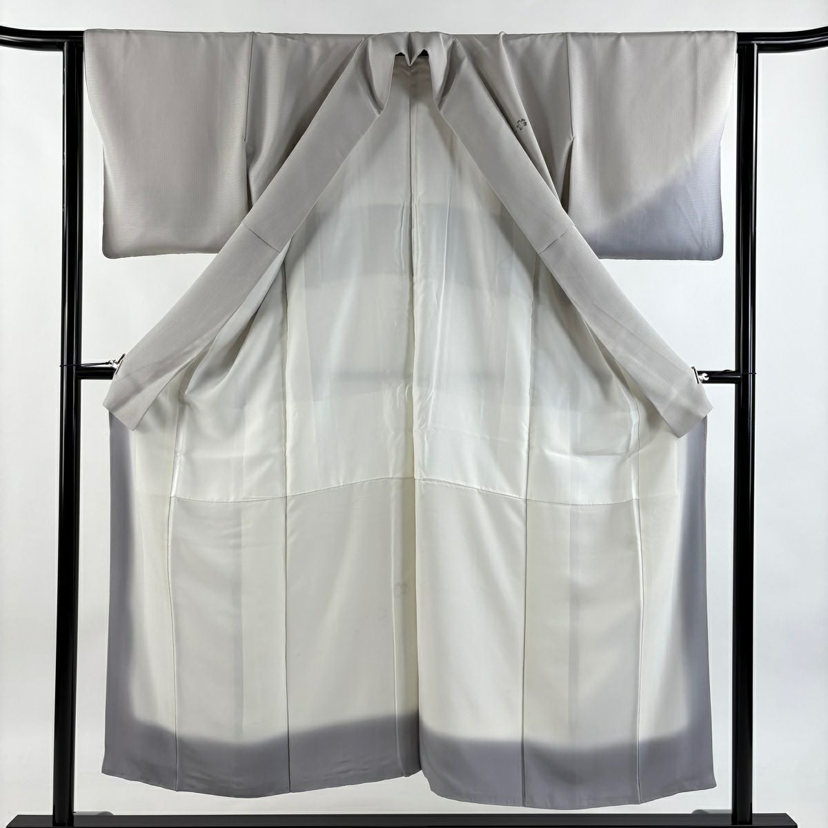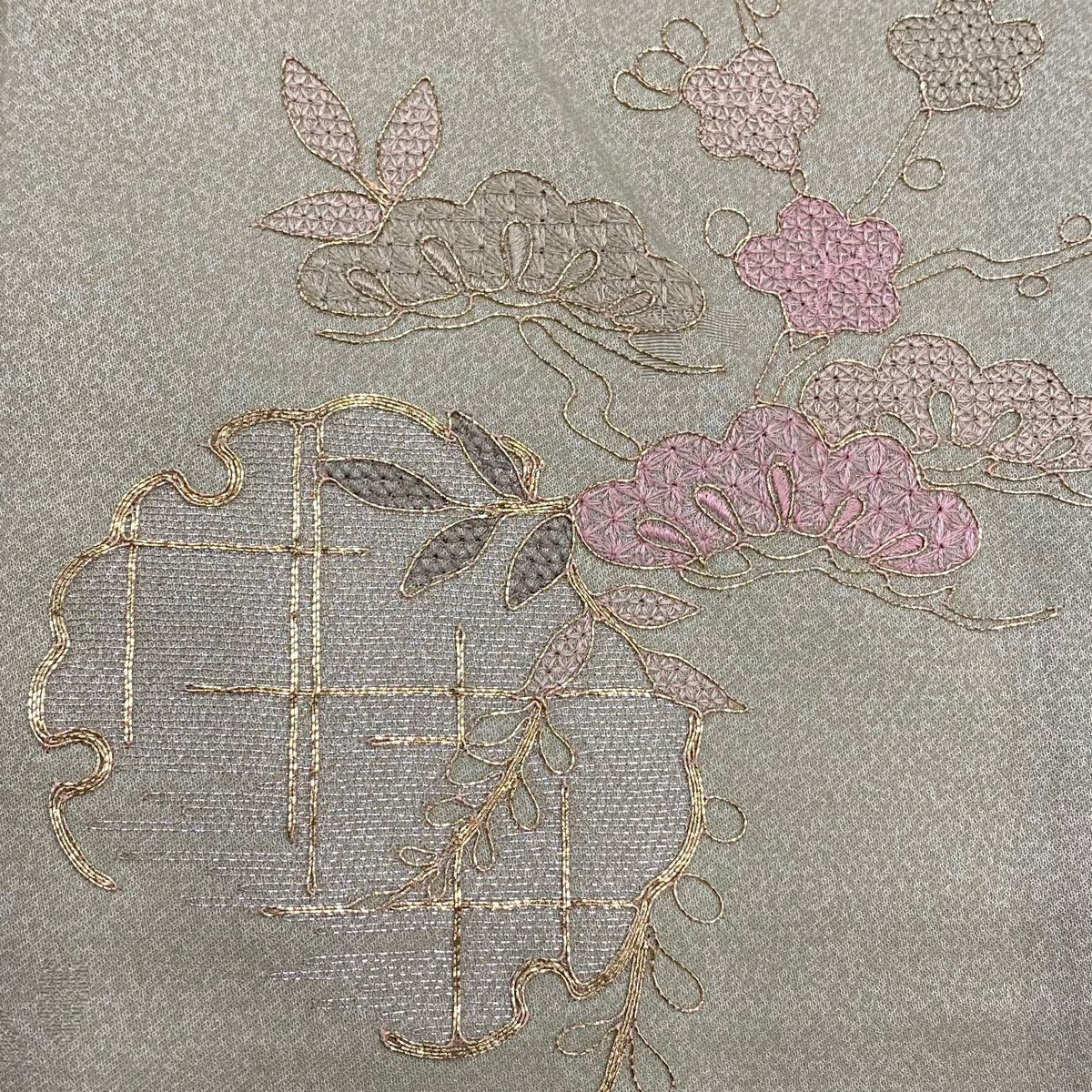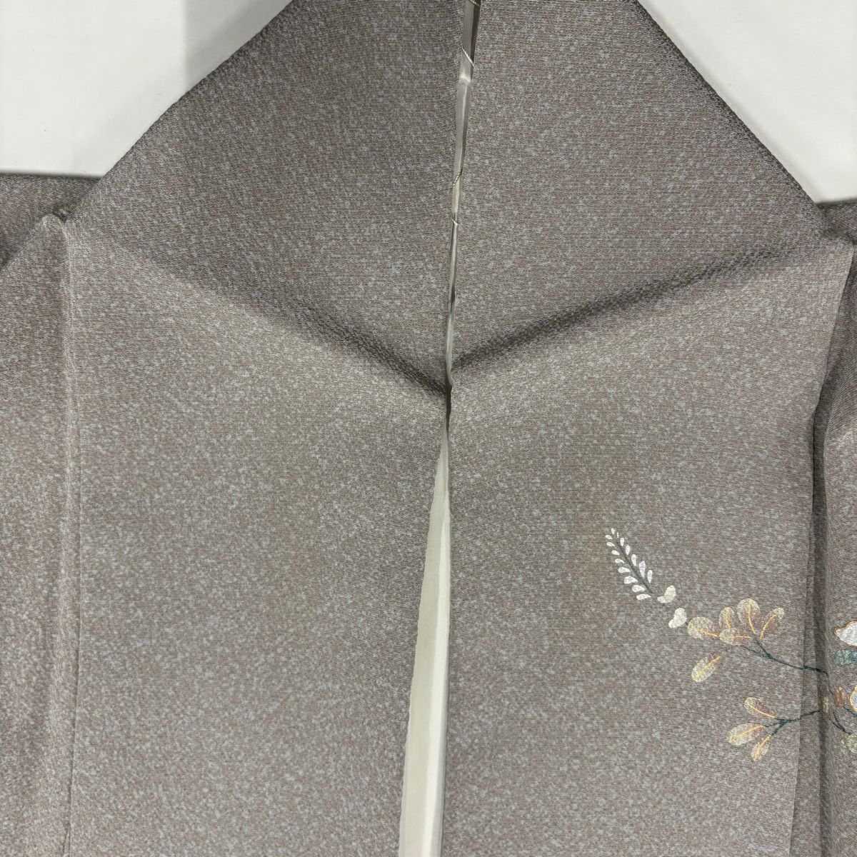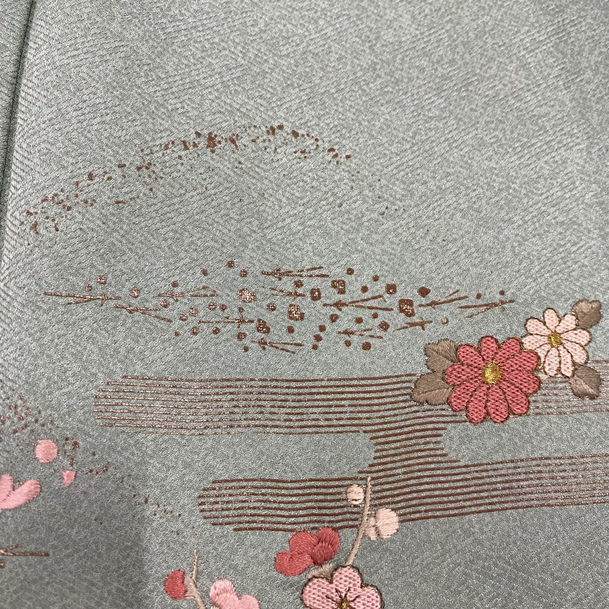 付下げ 身丈162.5cm 裄丈63.5cm S 袷 紬地 草花 梅 刺繍 ぼかし 灰色 正絹 秀品 一つ紋