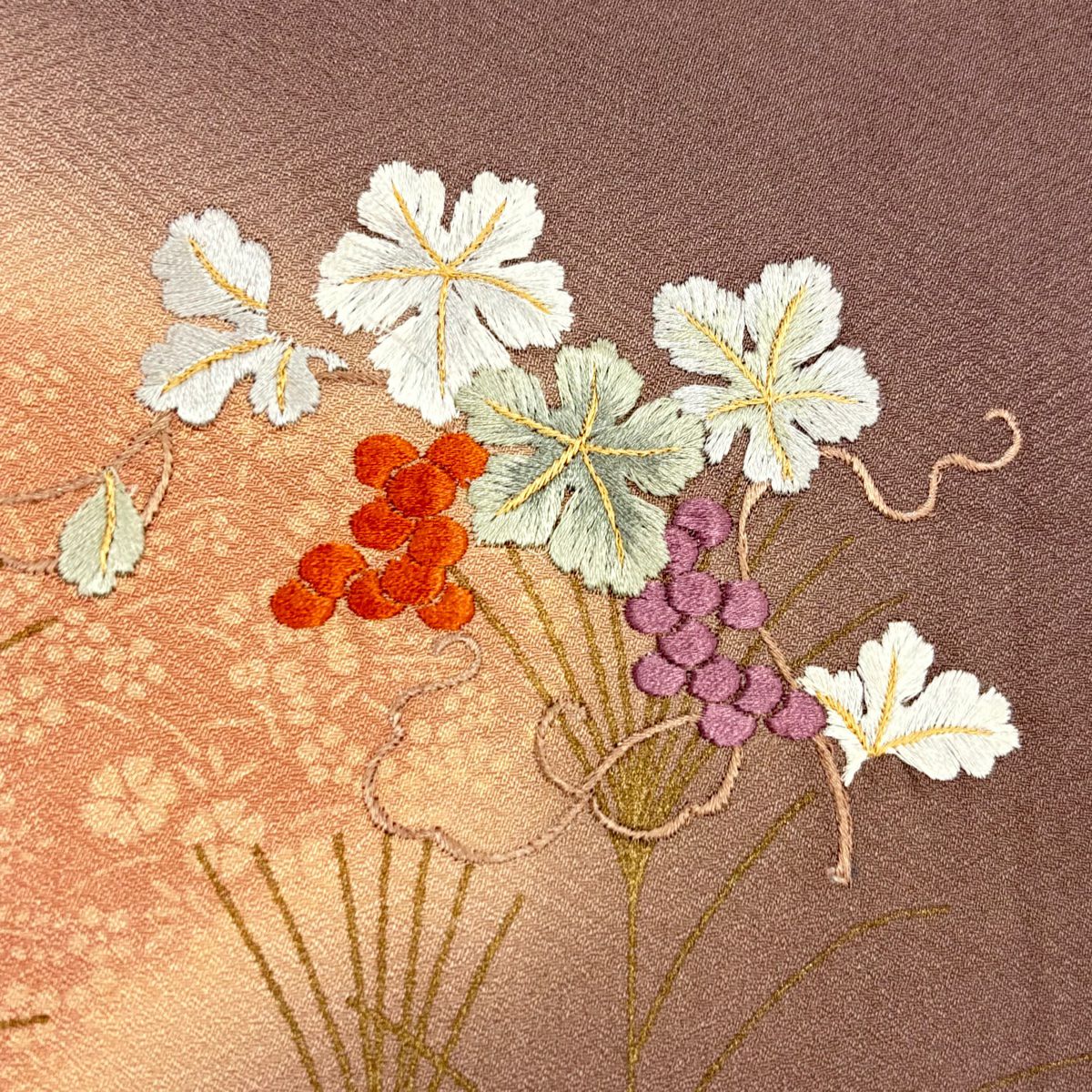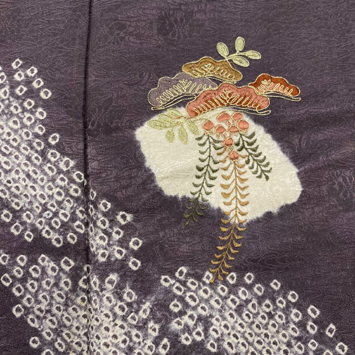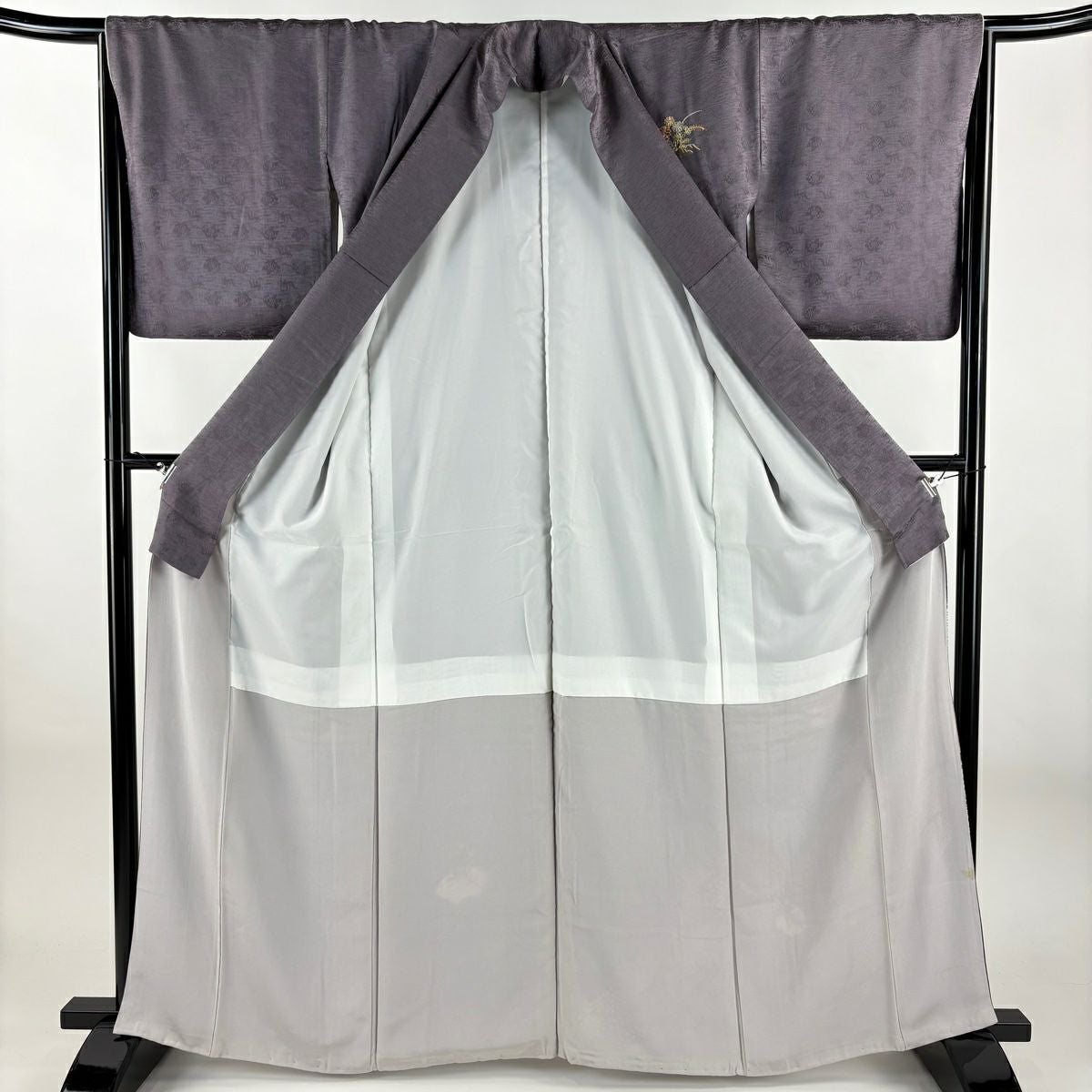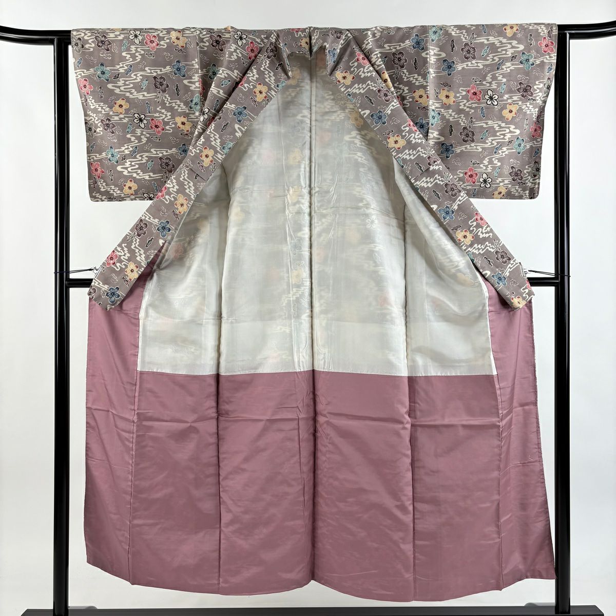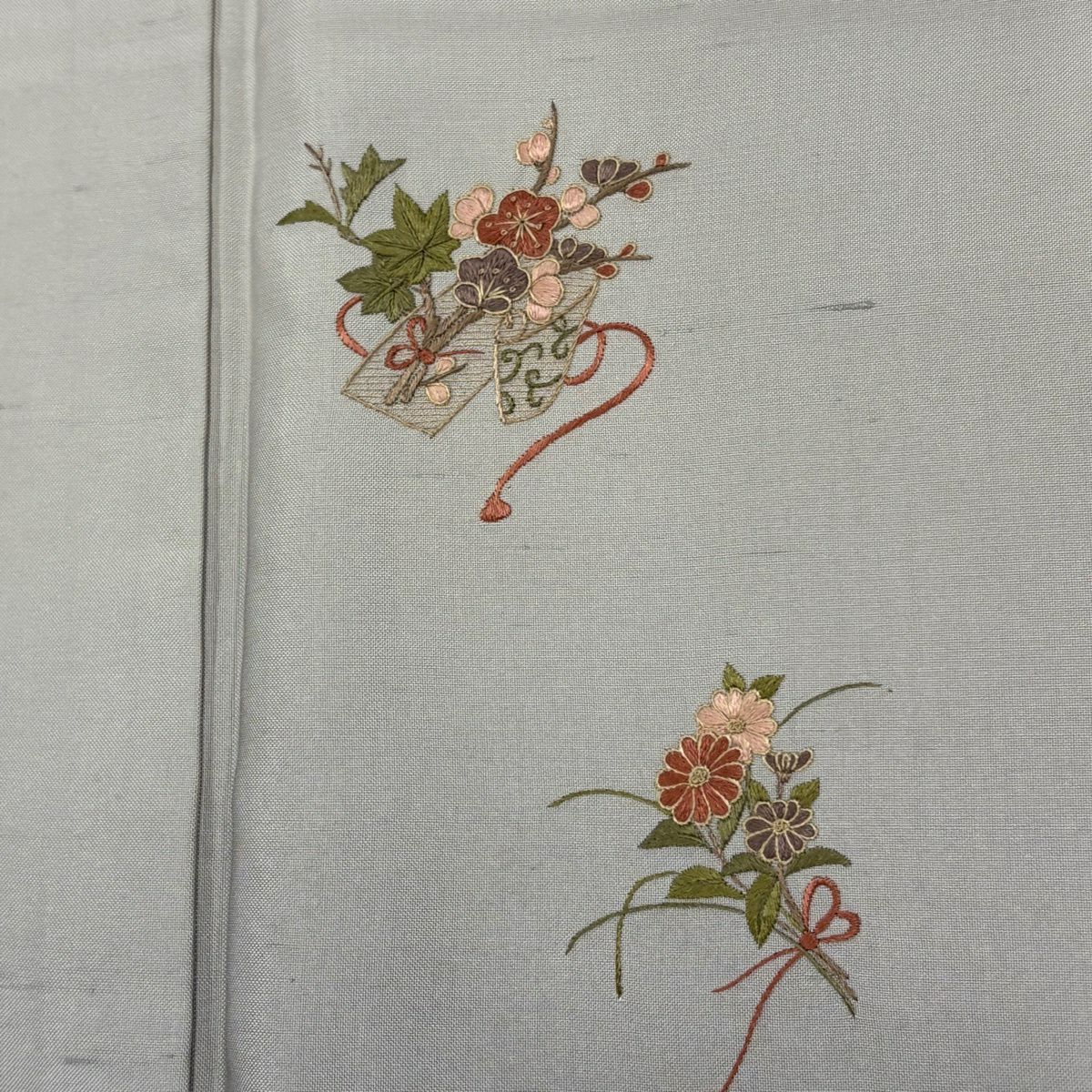 付下げ 身丈162.5cm 裄丈63.5cm S 袷 紬地 草花 梅 刺繍 ぼかし 灰色 正絹 秀品 一つ紋